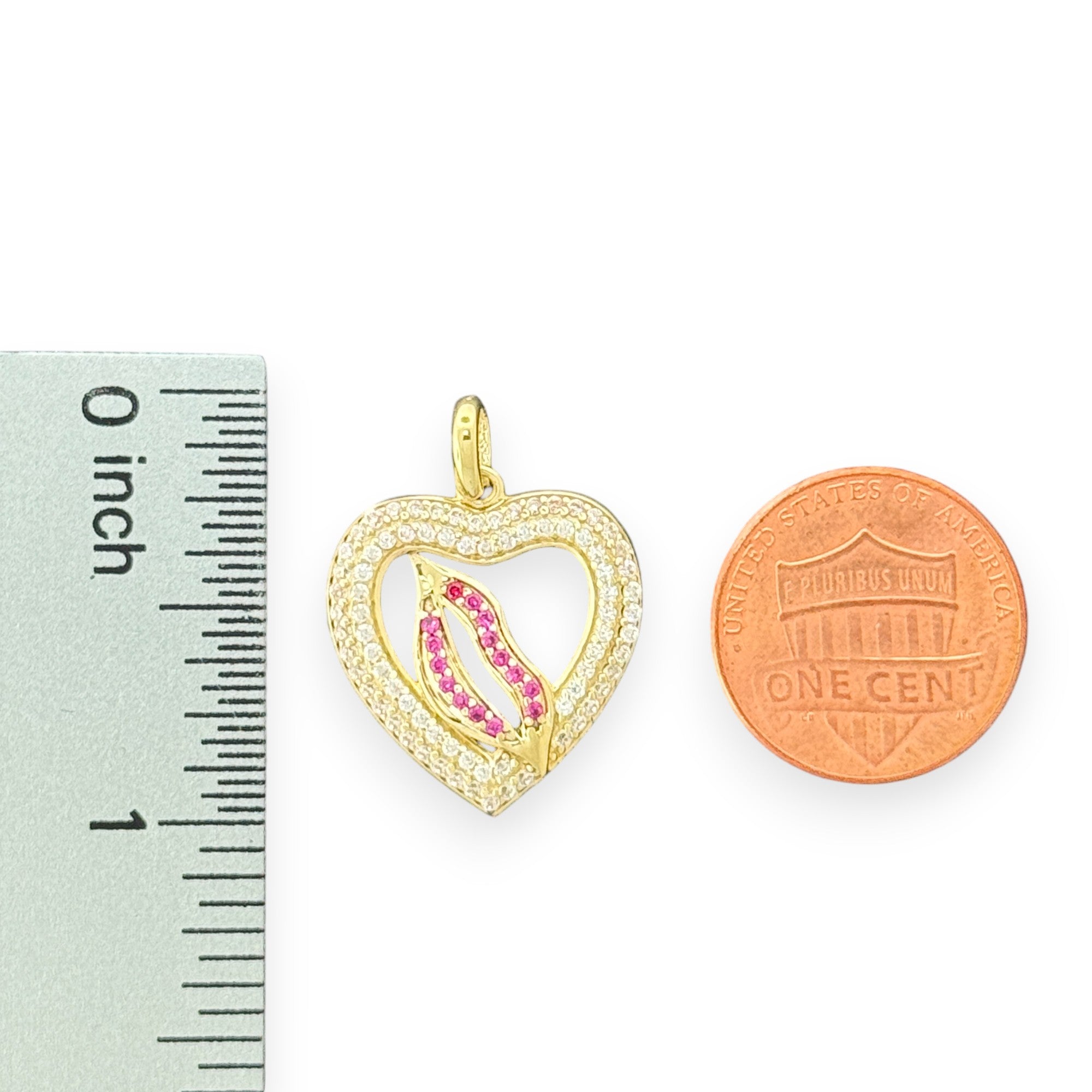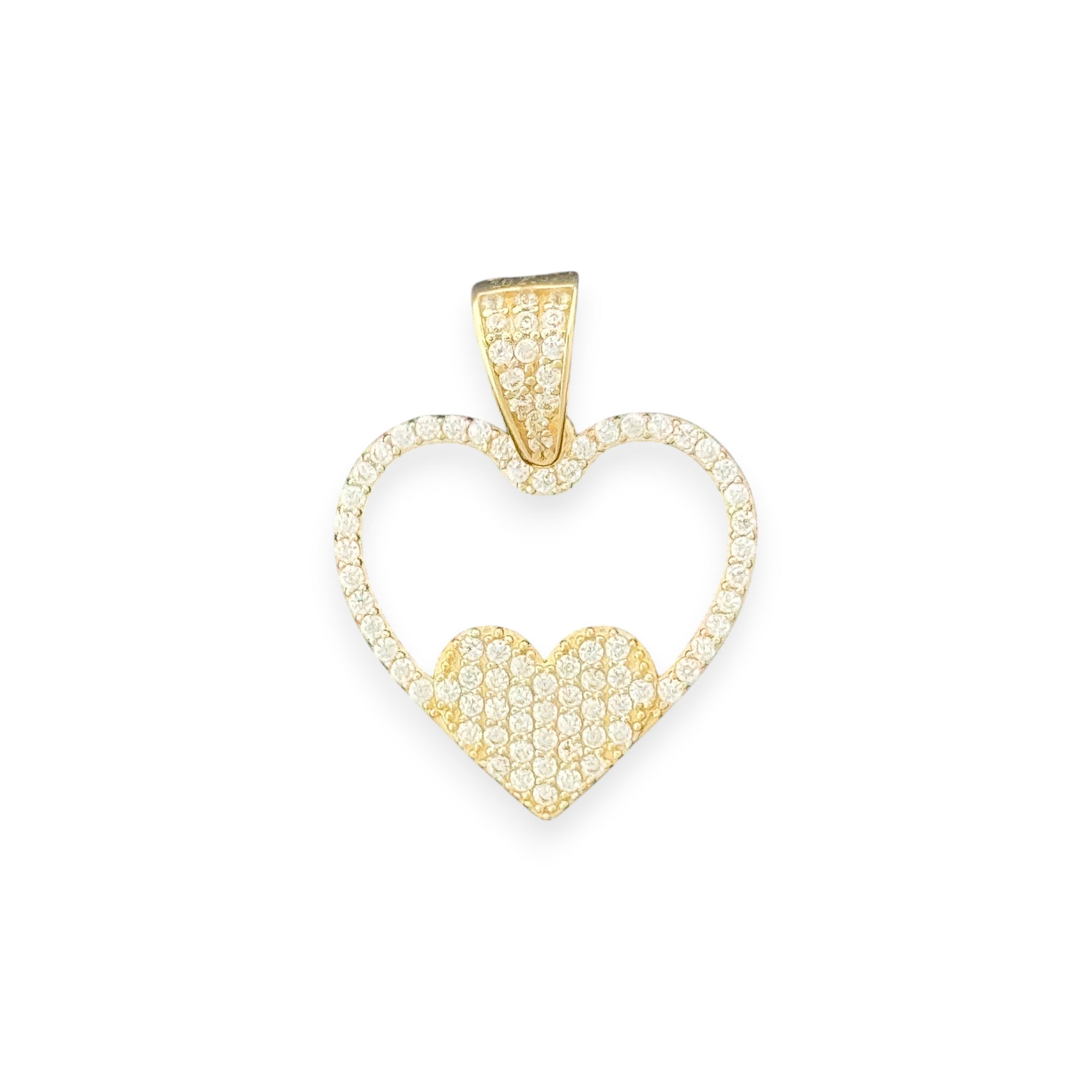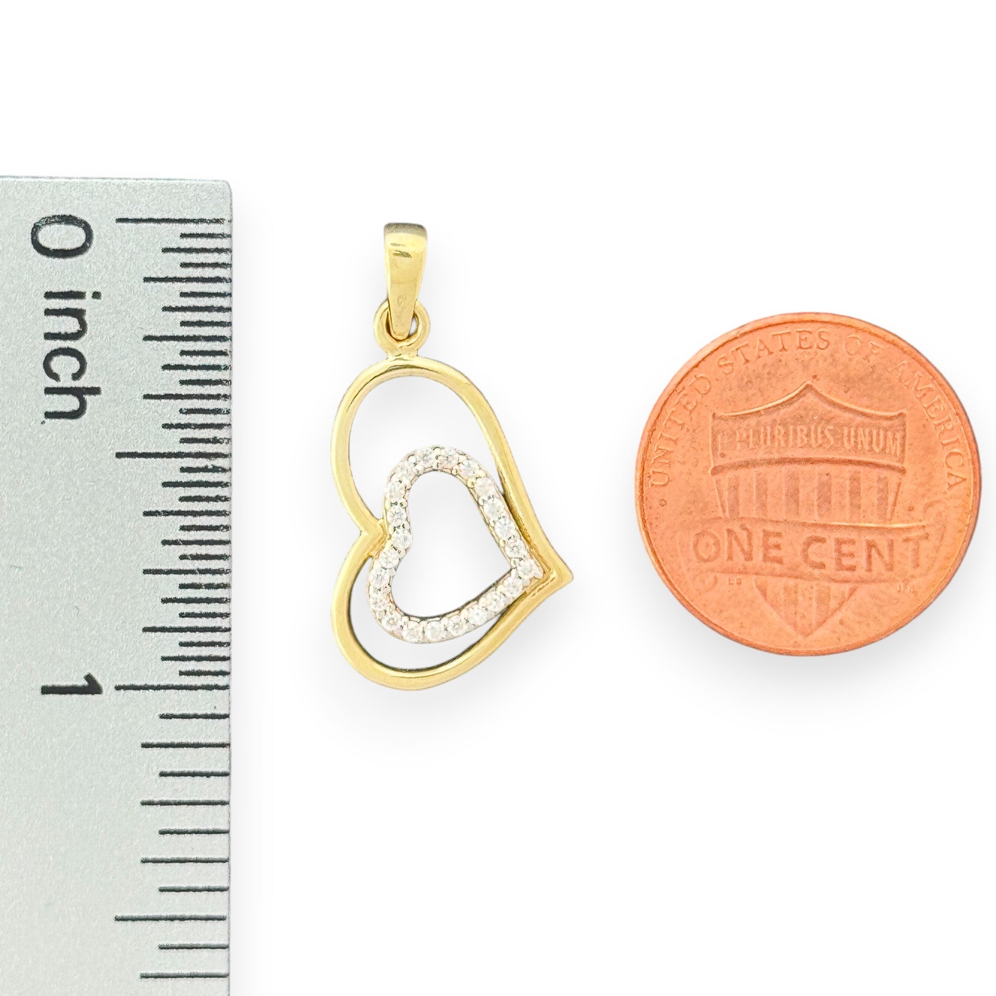 10KT Gold Heart Pendant with Pave-Set CZ Accents, 1.58 Grm Login to see pricing