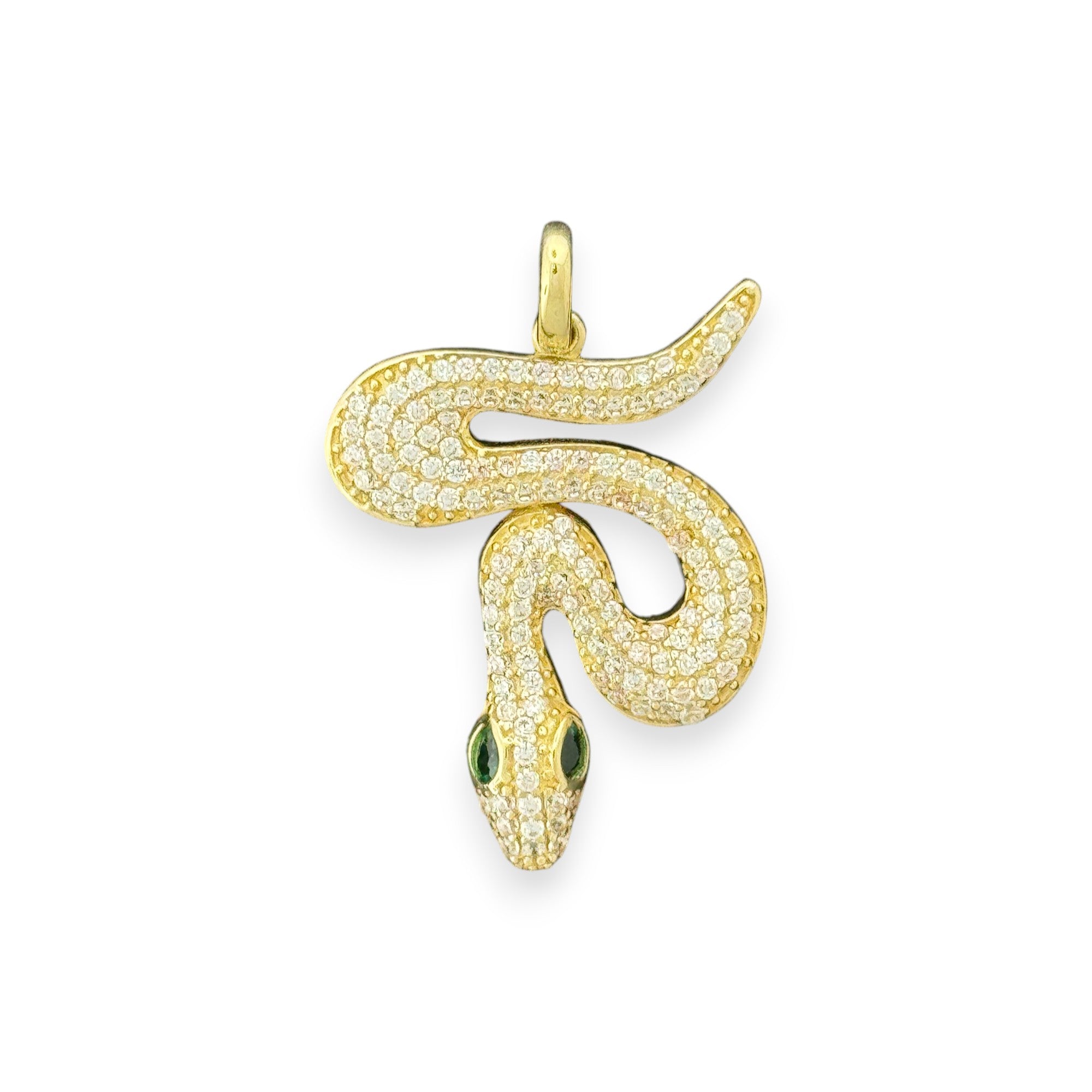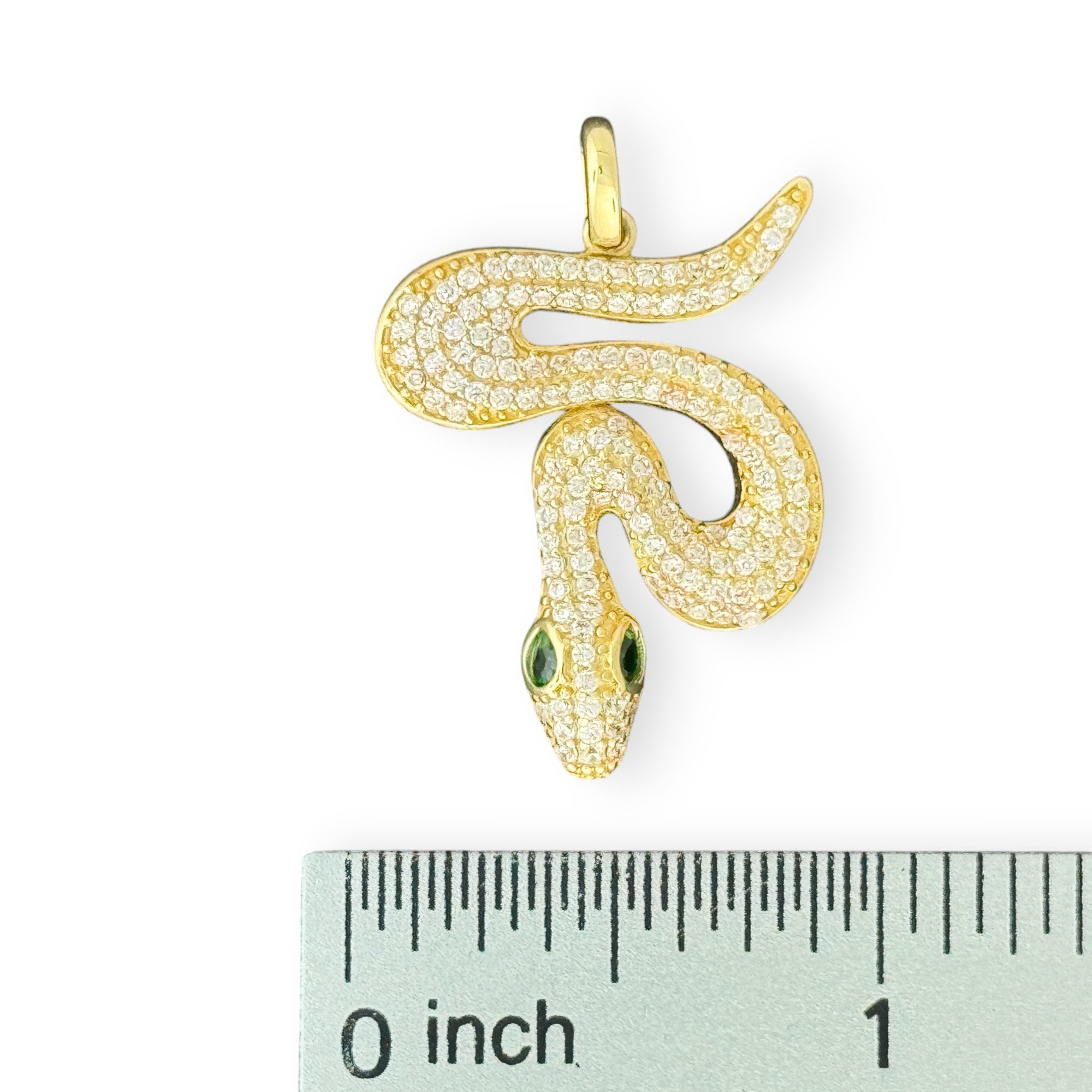 10KT Gold Snake Pendant with Green CZ Eyes, 3.68 Grm Login to see pricing