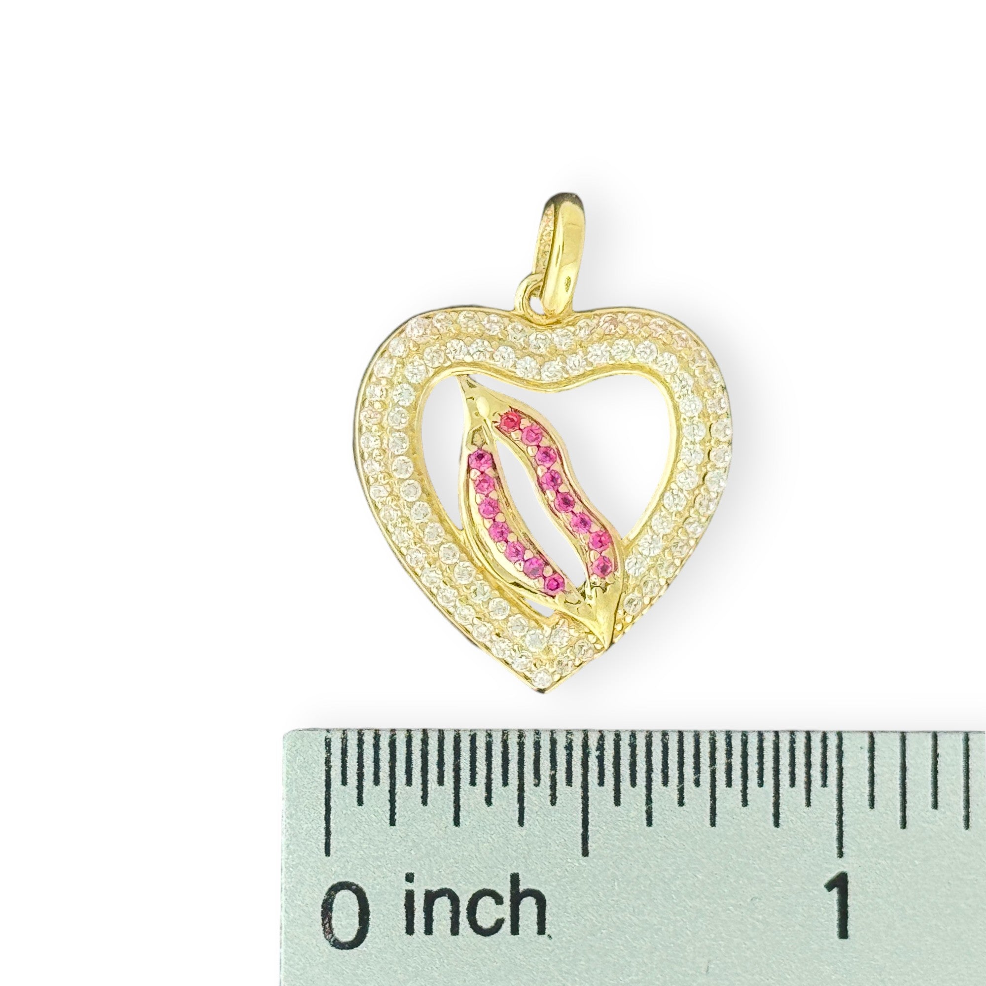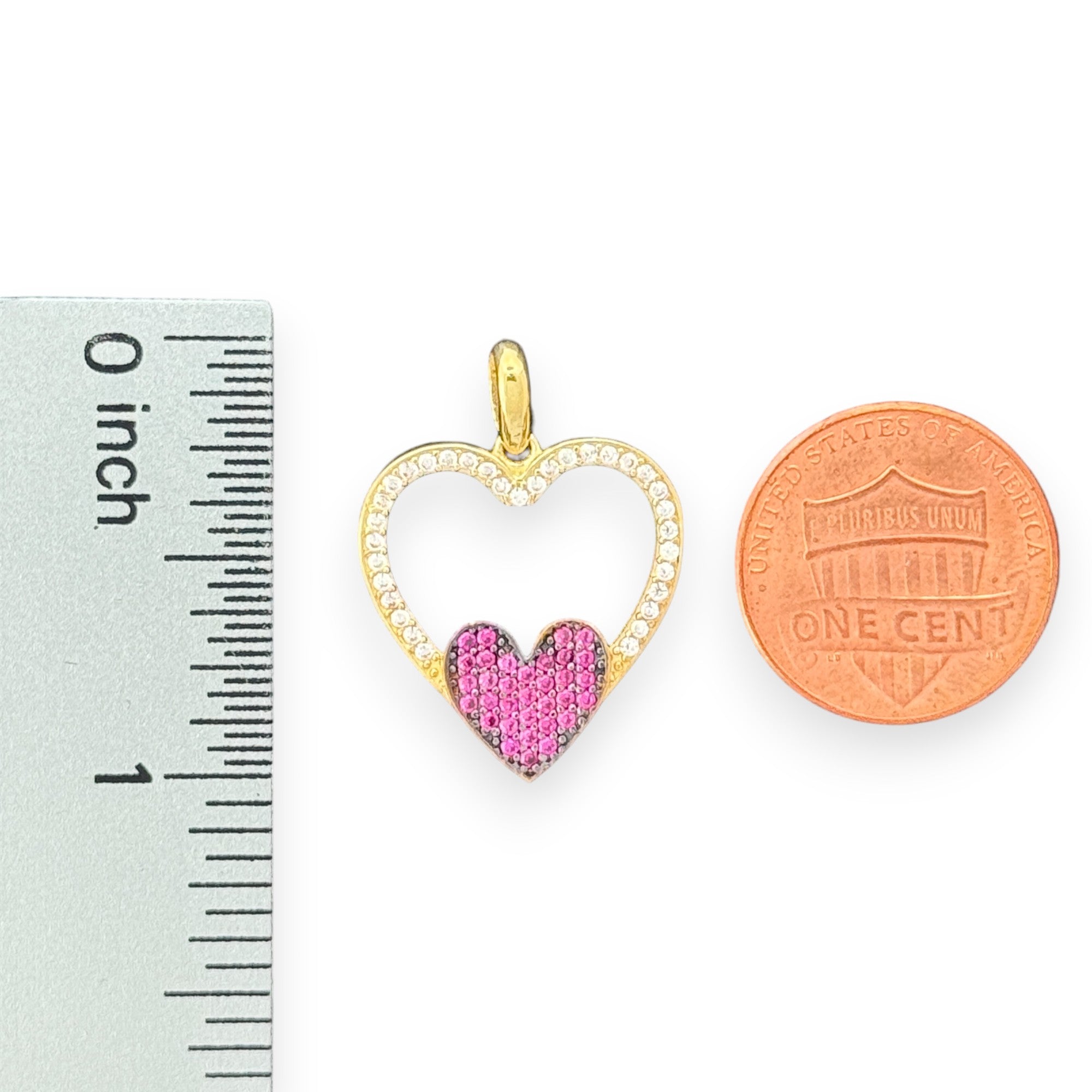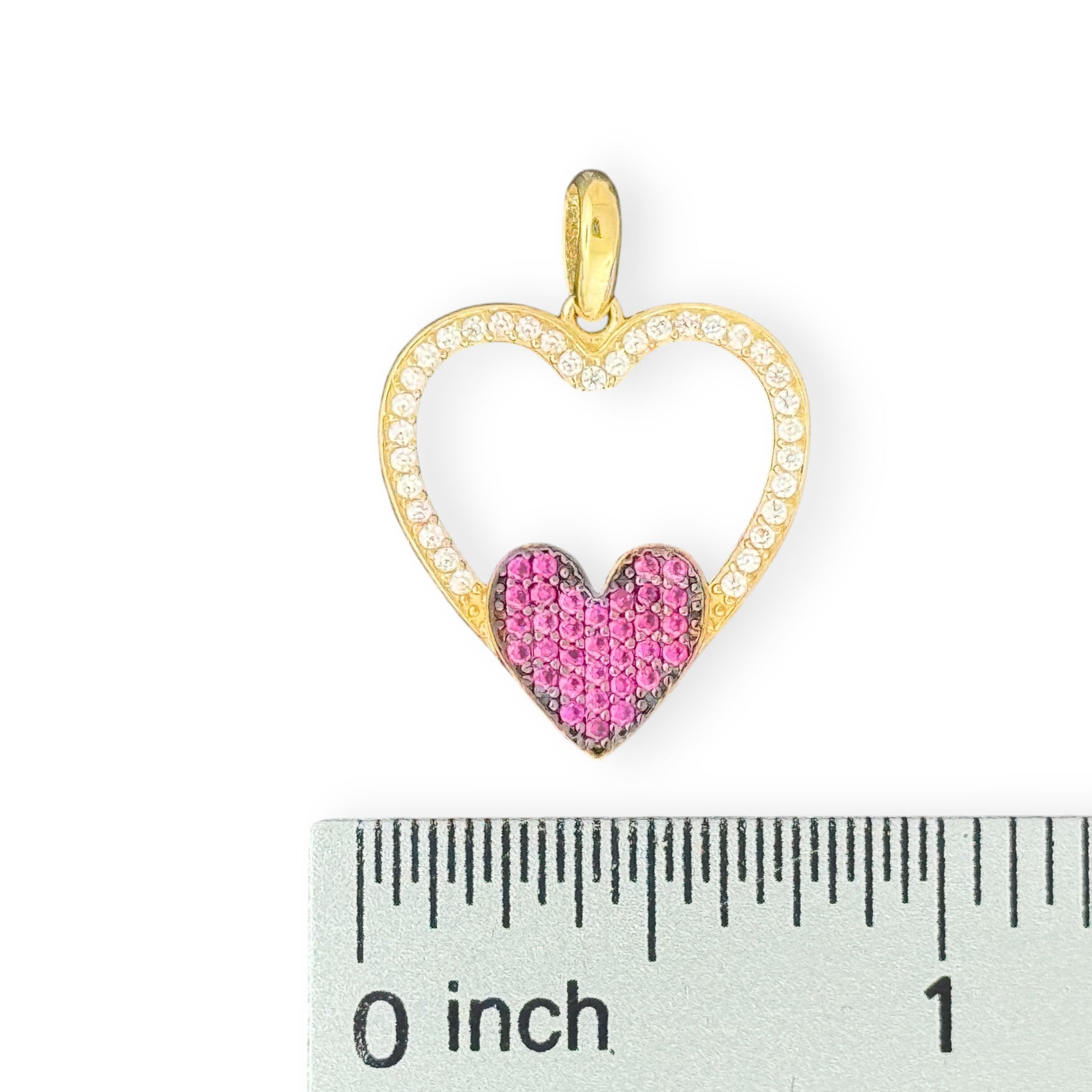 10KT Gold Heart Pendant with Pink CZ Stones, 2.17 Grm Login to see pricing
