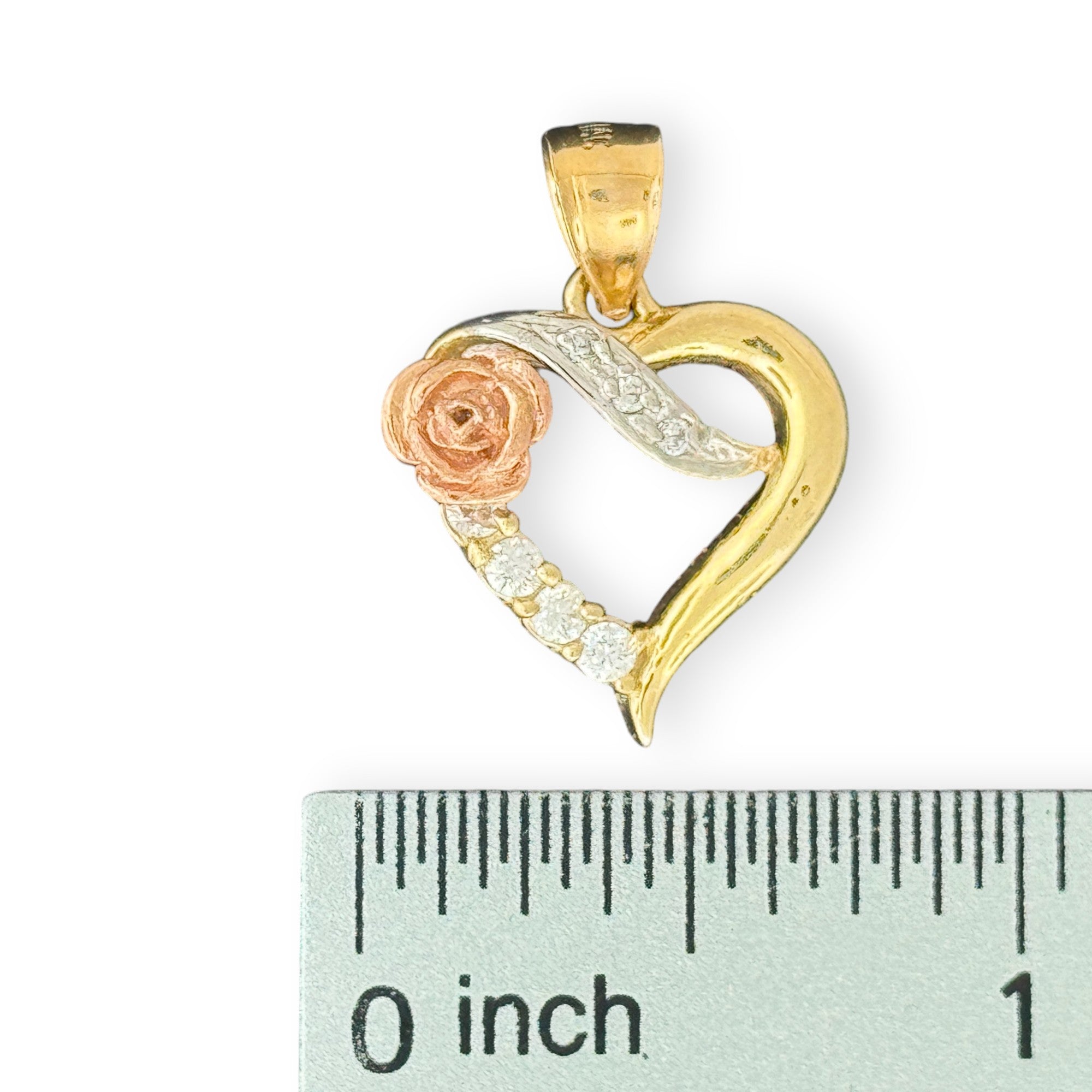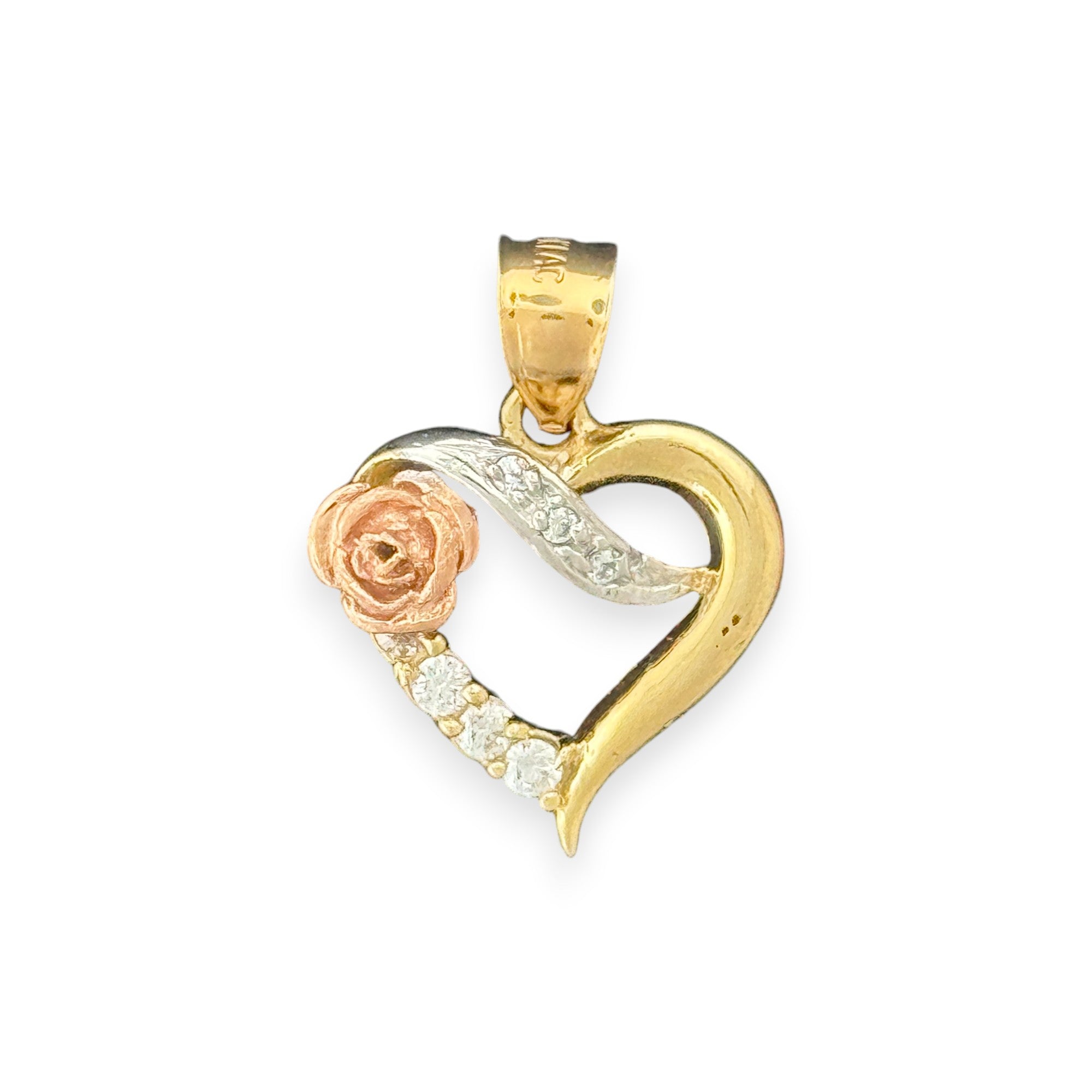 10KT Gold Heart Pendant with Rose Design, 2.67 Grm Login to see pricing