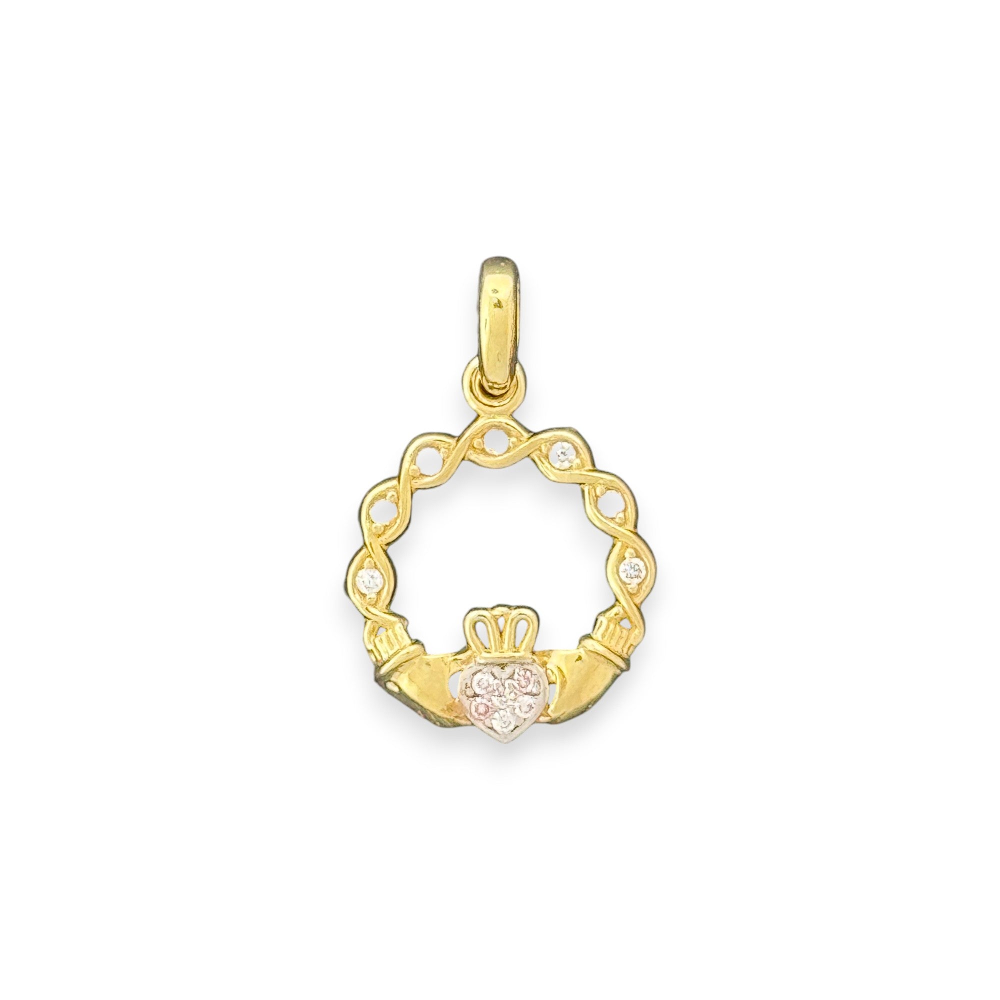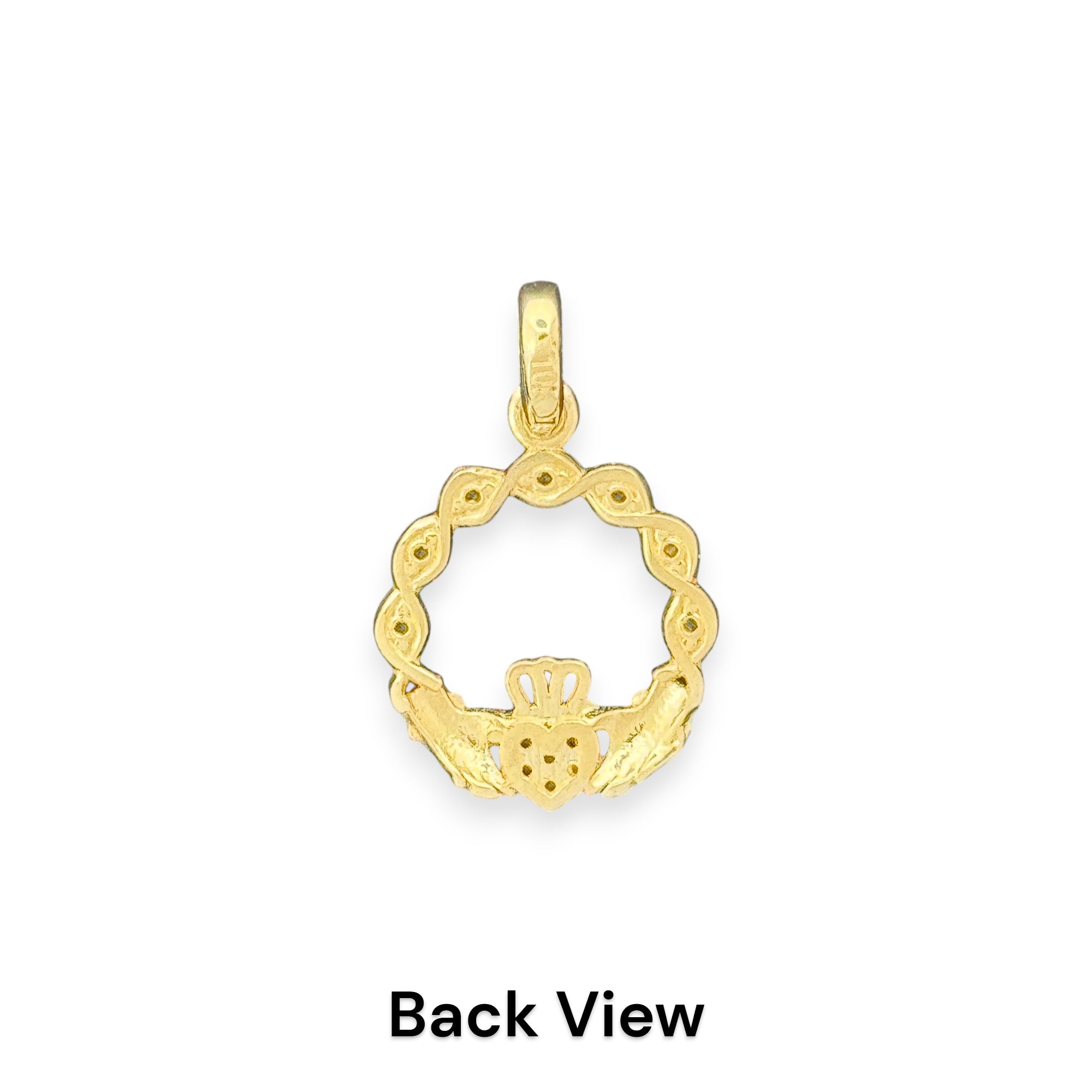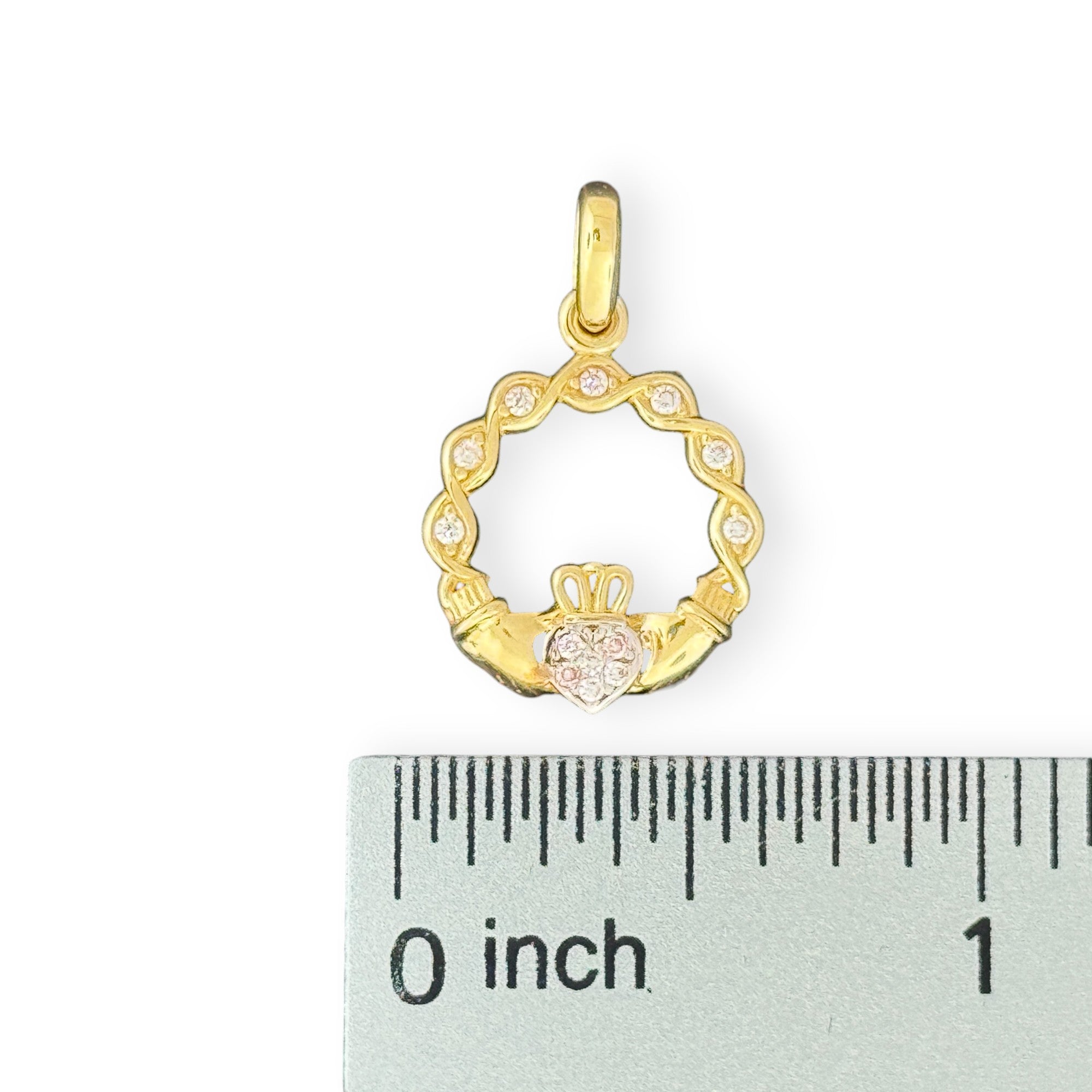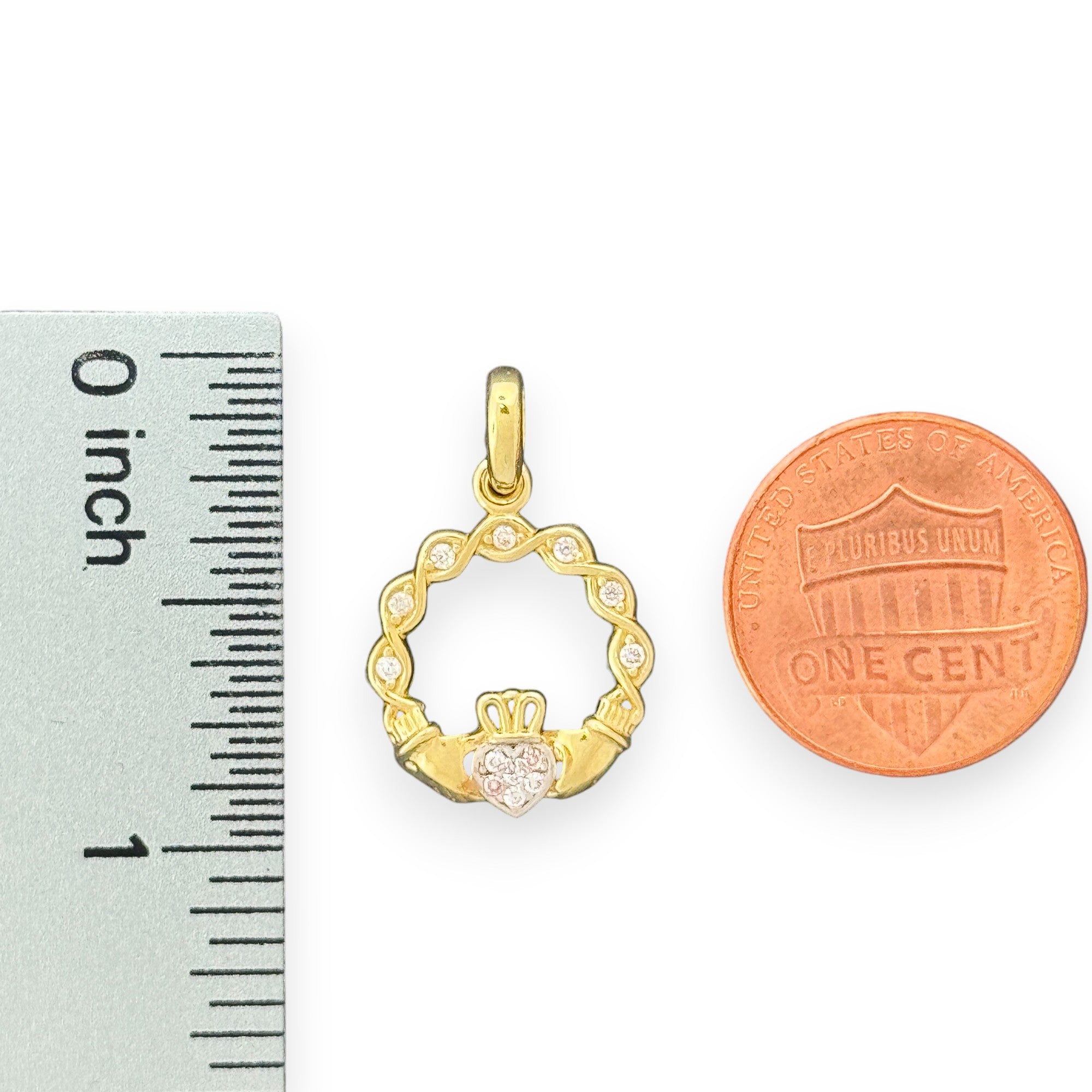 10KT Gold Claddagh Pendant with CZ Accents, 1.45 Grm Login to see pricing