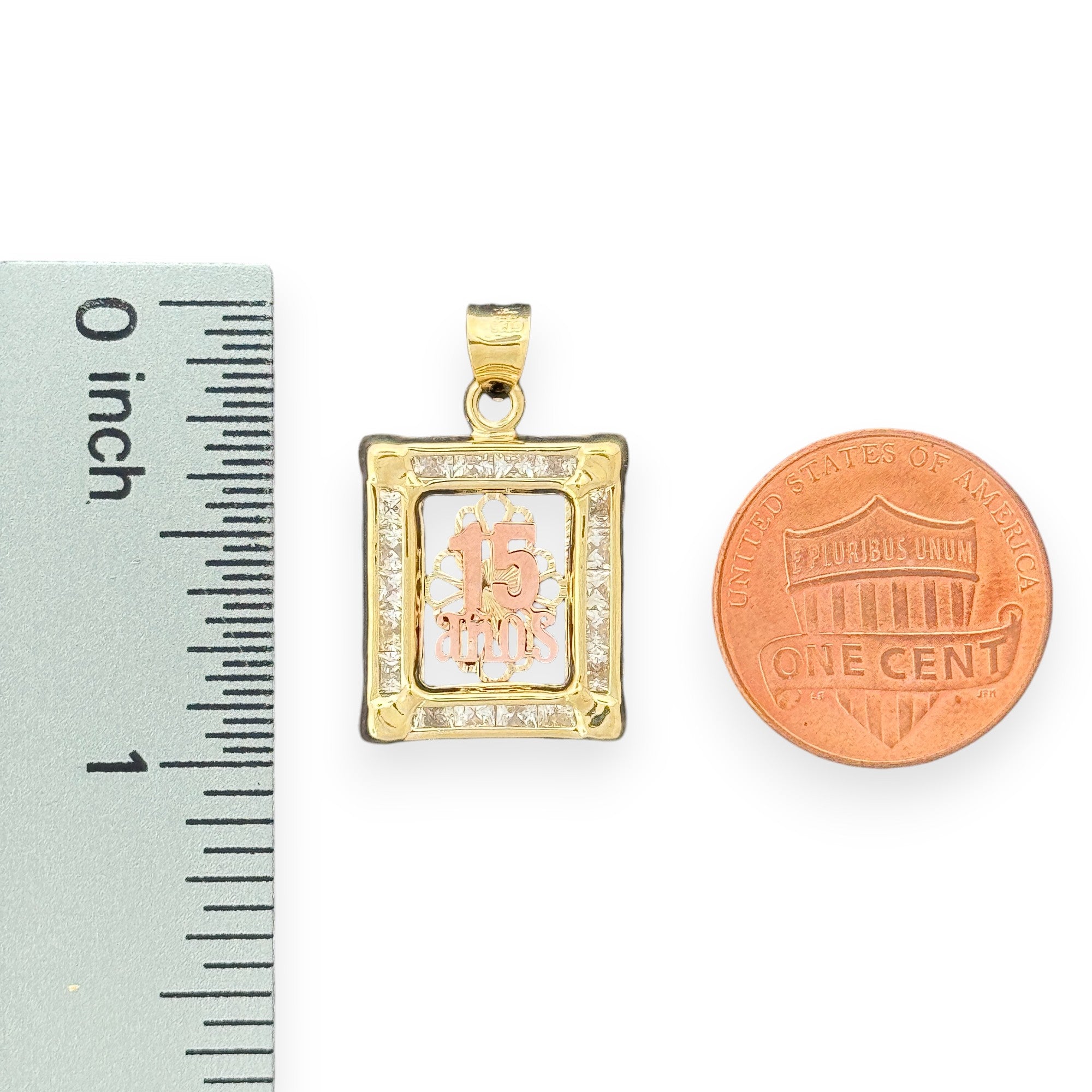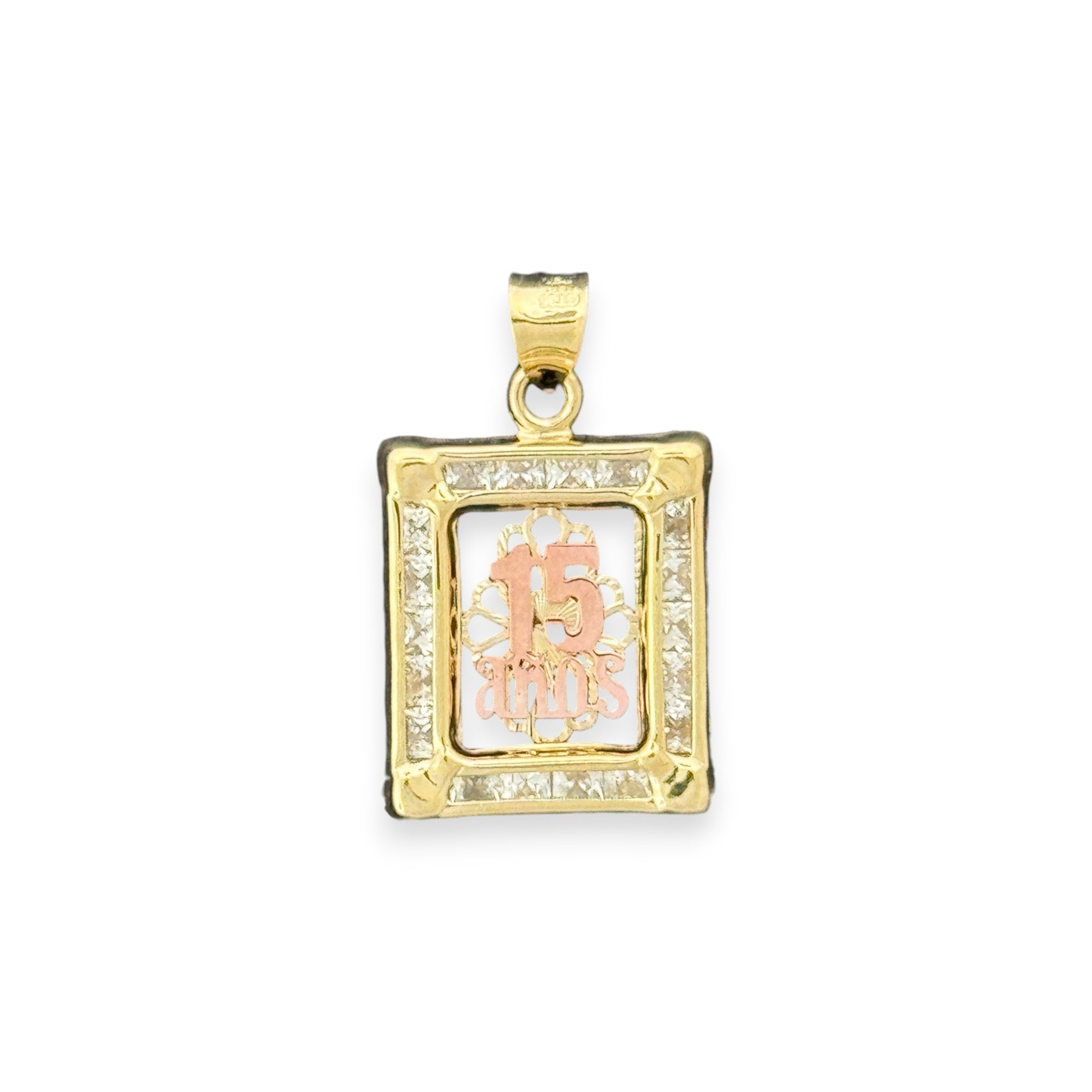 10KT Gold "15 Años" Square Pendant with CZ Border, 1.4 Grm Login to see pricing