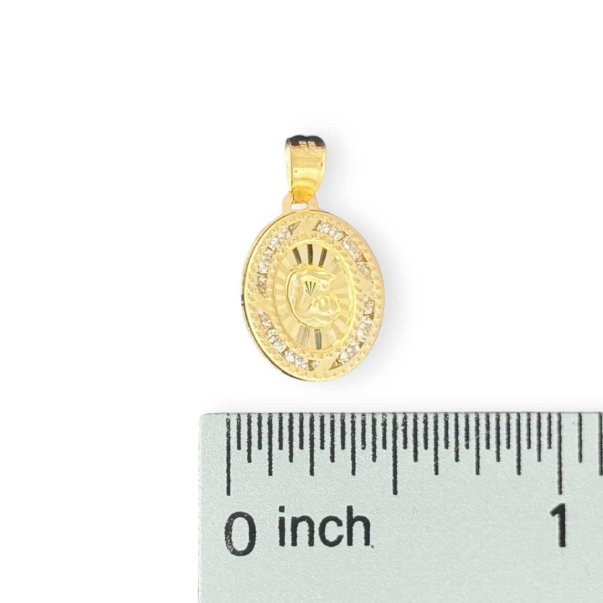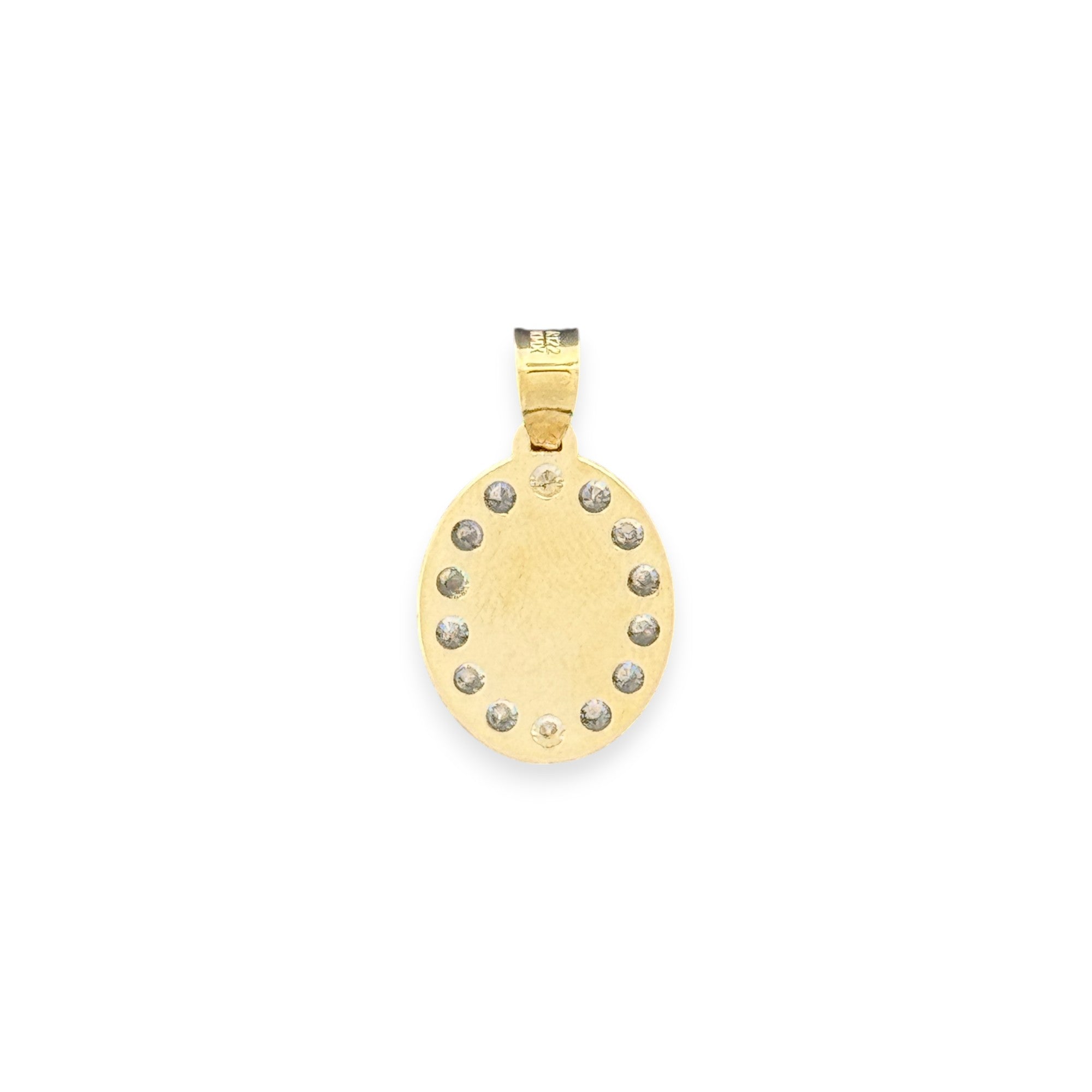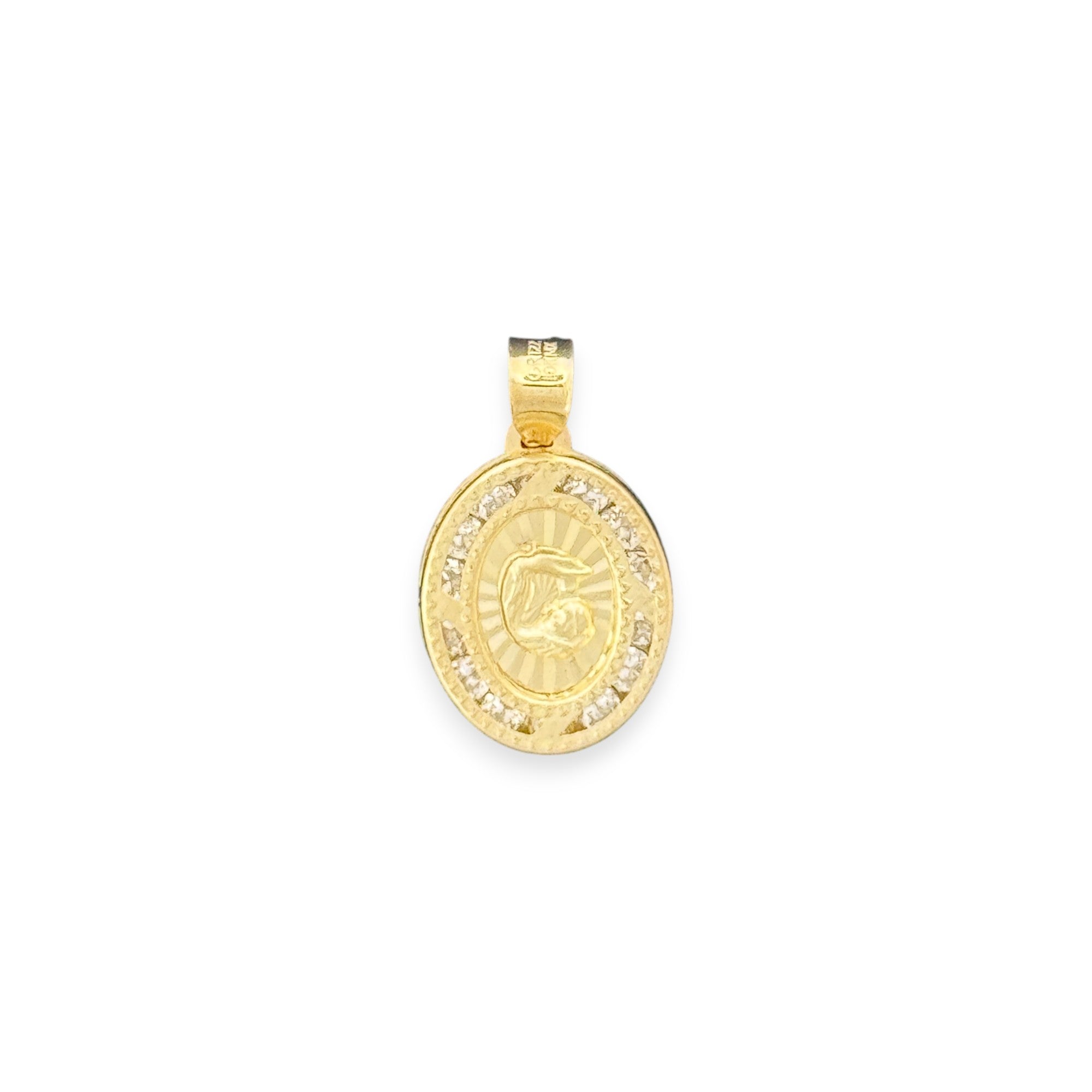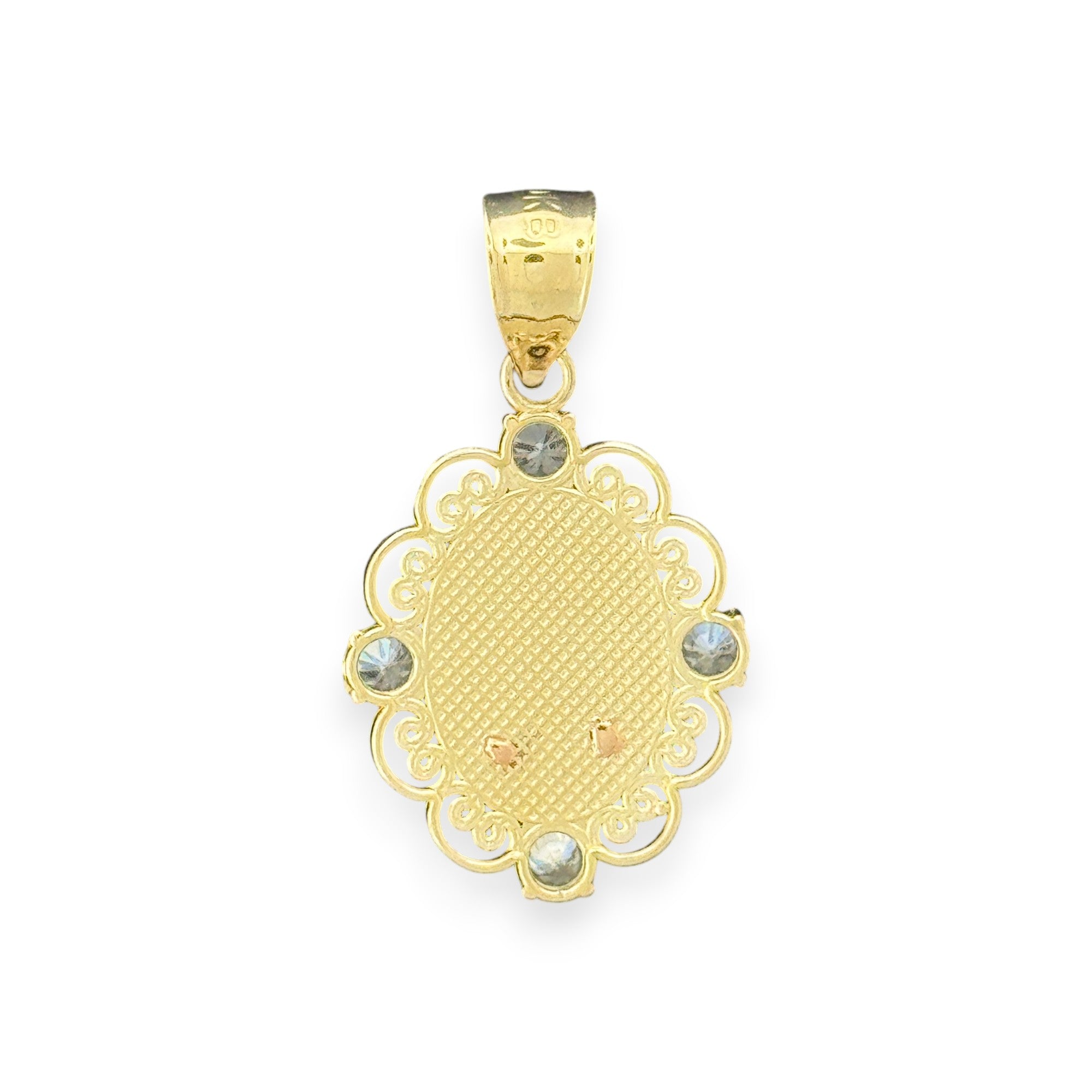 10KT Gold Oval "Mis 15 Años" Pendant with Virgin Mary, 1.9 Grm Login to see pricing