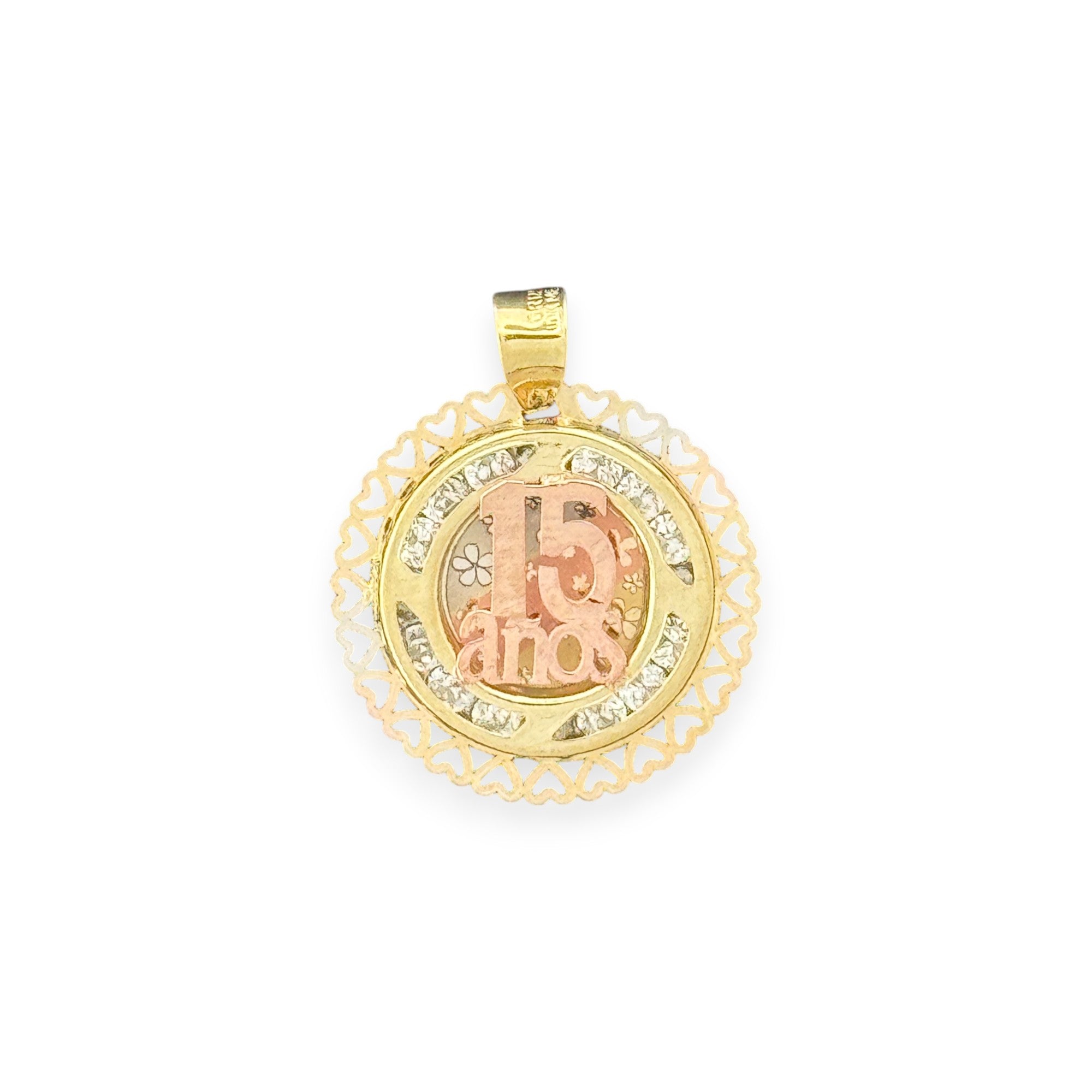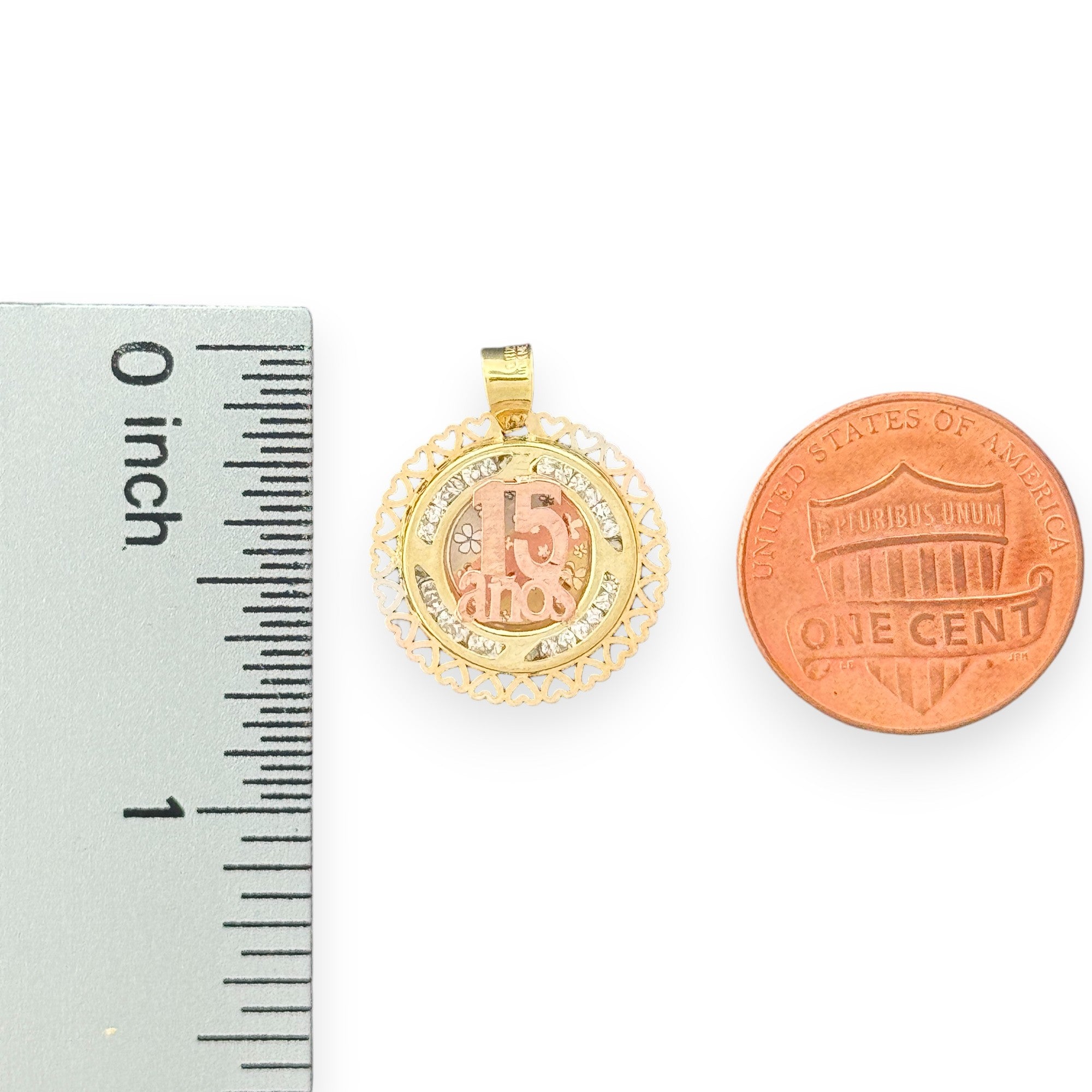 10KT Gold Round "15 Años" Pendant with Filigree, 0.8 Grm Login to see pricing