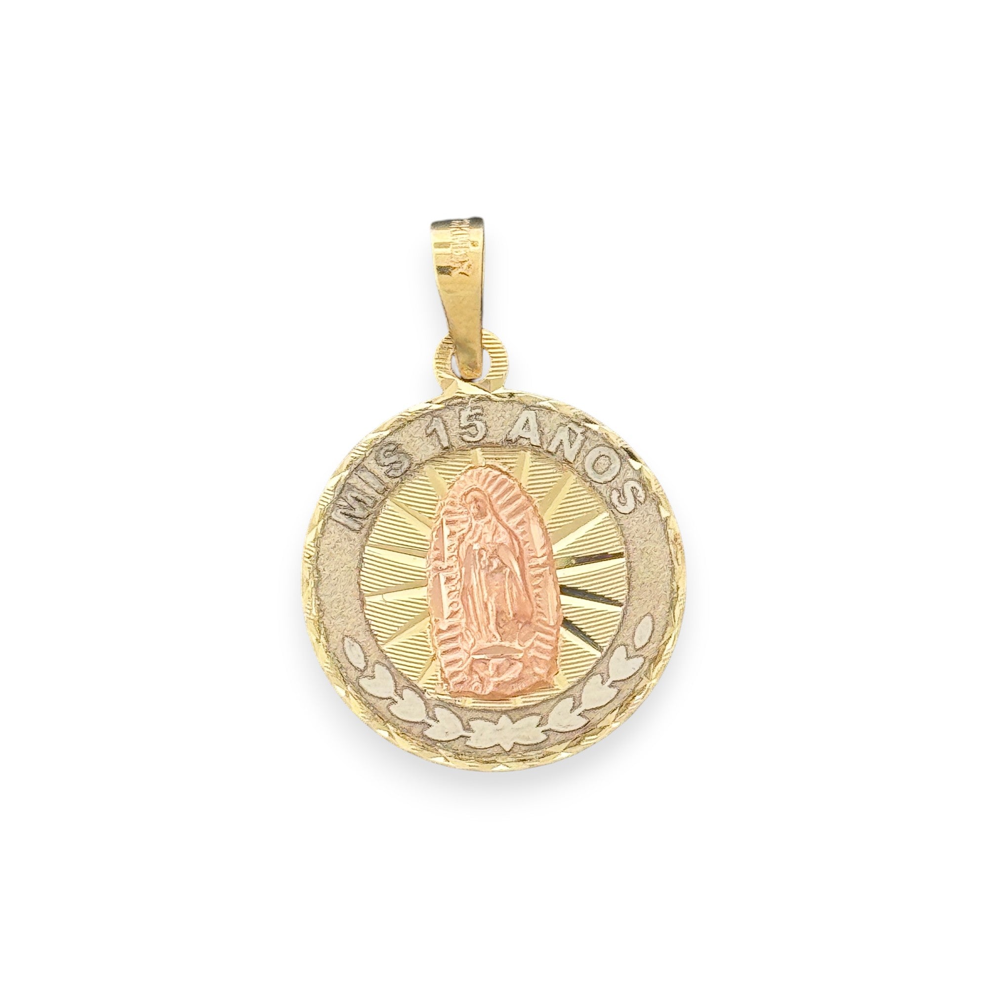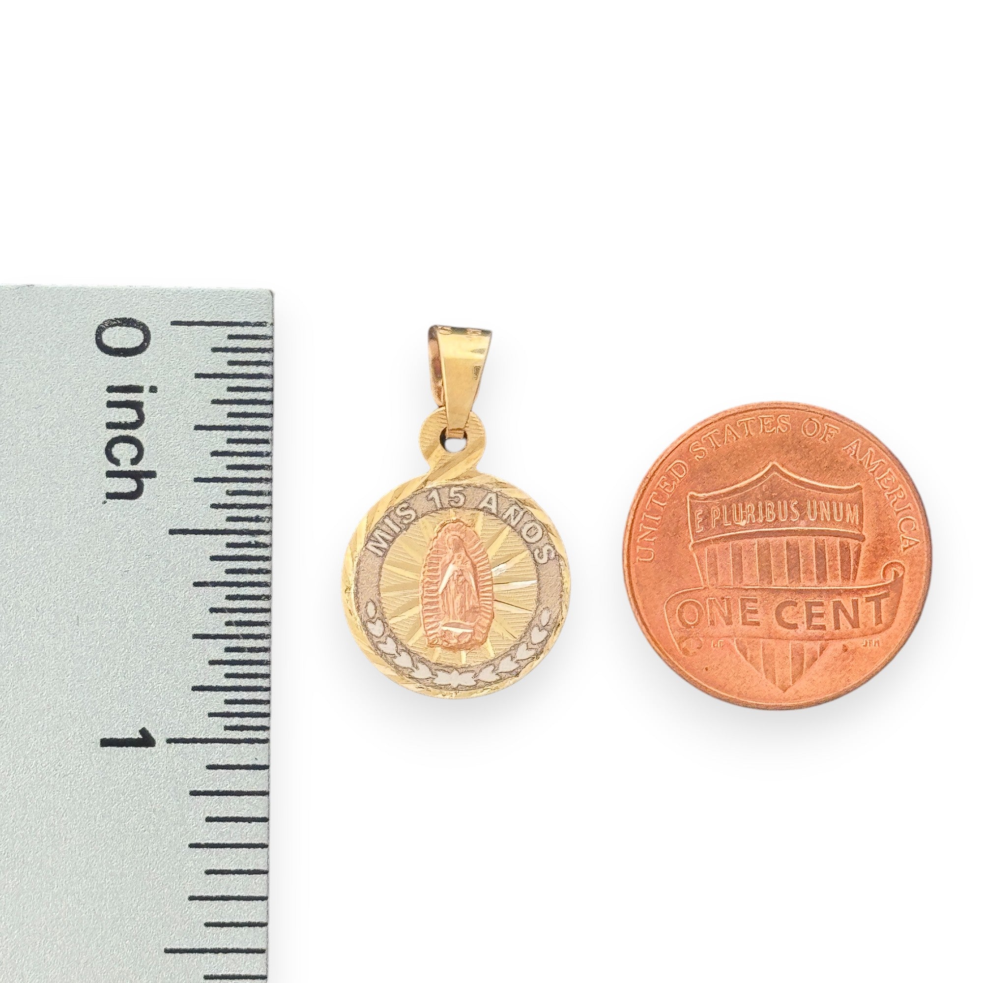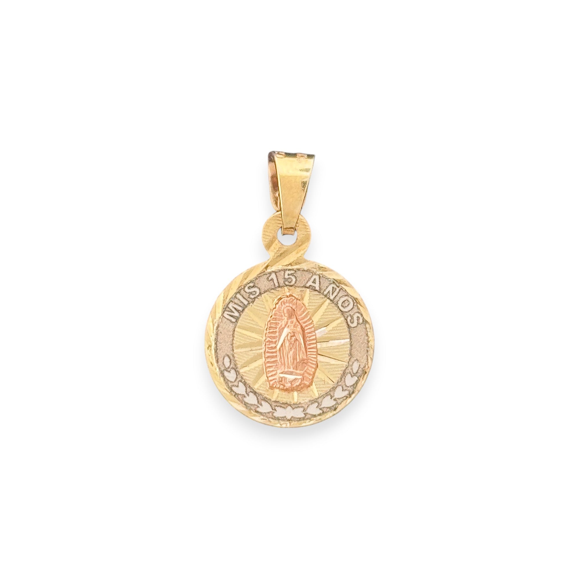 10KT Gold "Mis 15 Años" Pendant with Virgin Mary, 1.4 Grm Login to see pricing