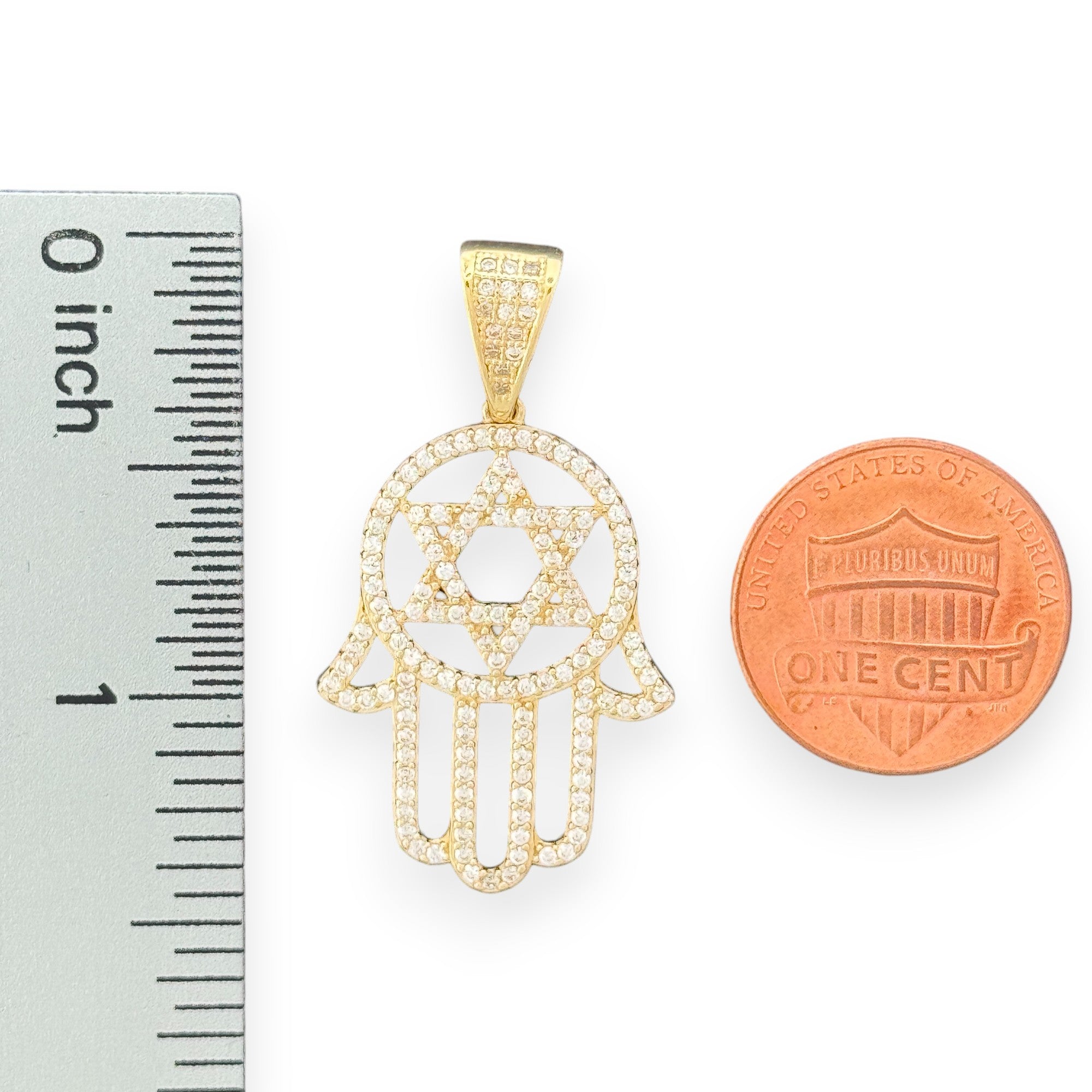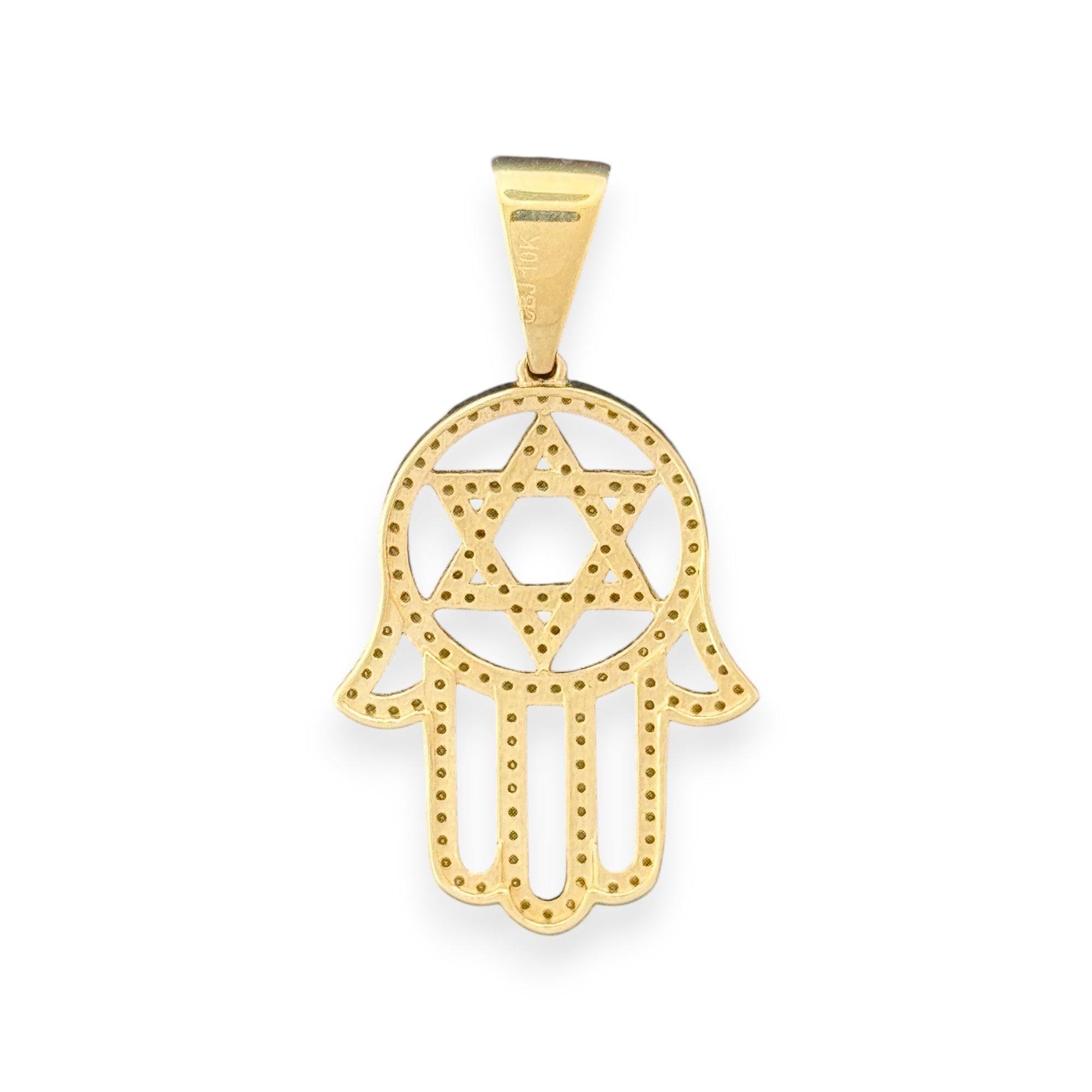 10KT Gold Hamsa Hand Pendant with Star of David, 2.65 Grm Login to see pricing