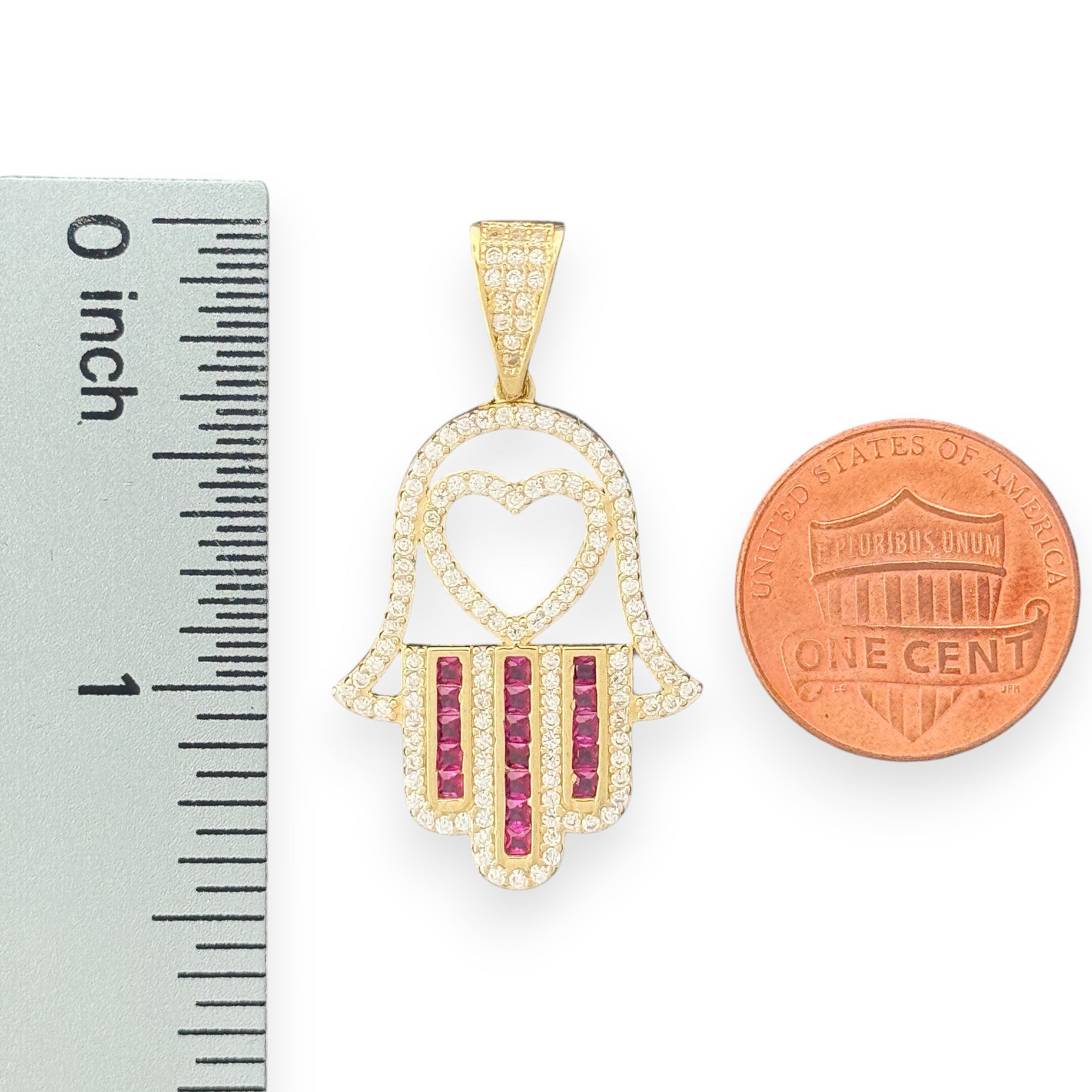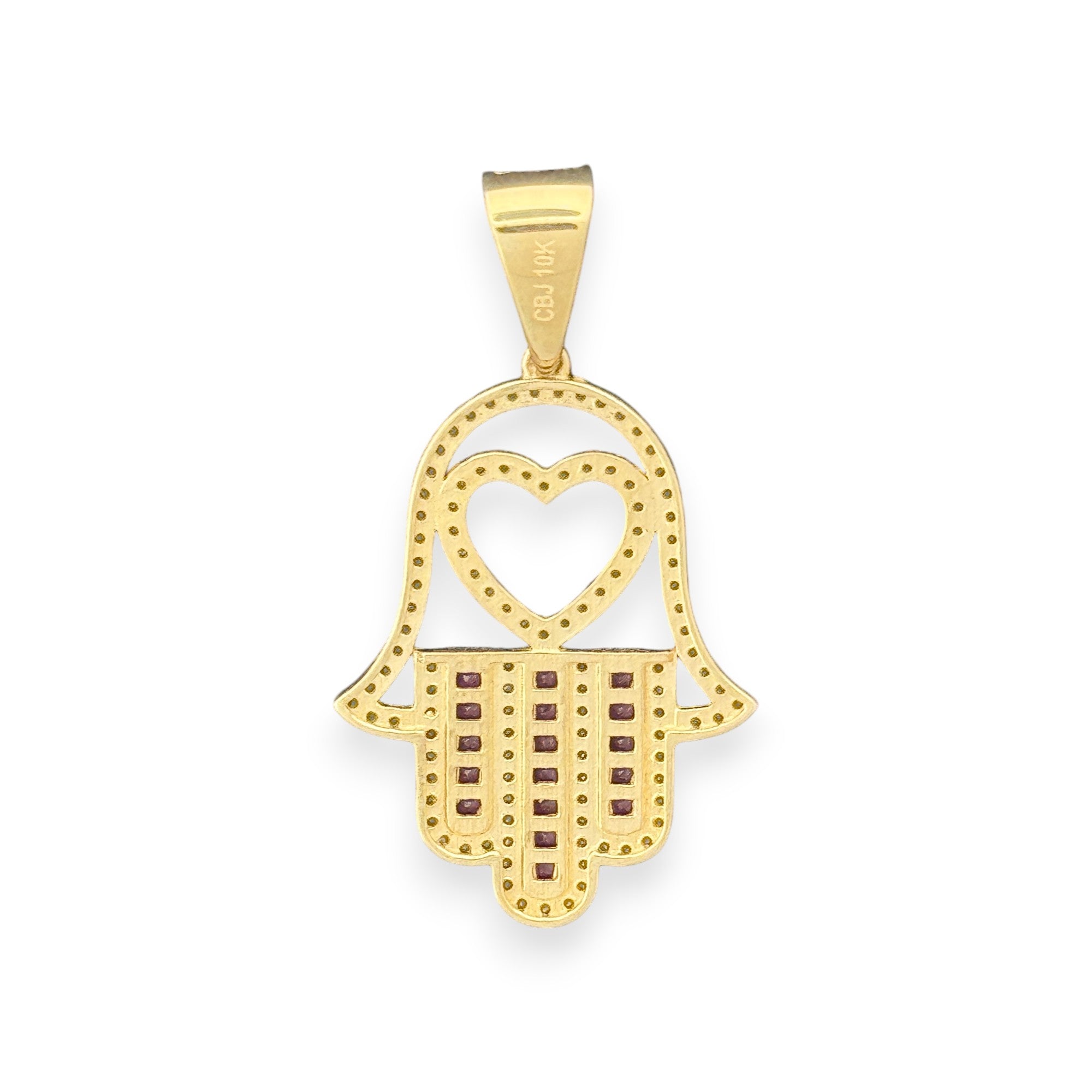 10KT Gold Hamsa Hand Pendant with Heart Design, 2.96 Grm Login to see pricing