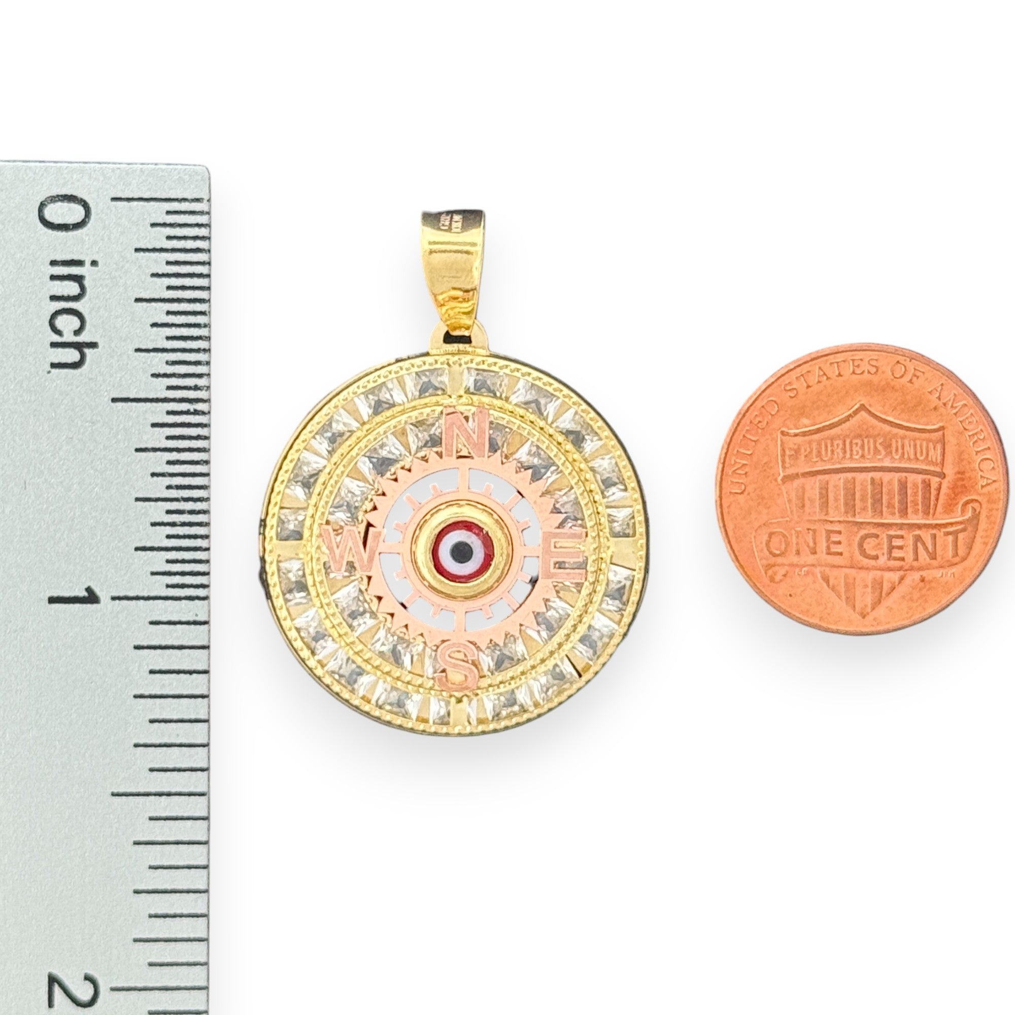 10KT Gold Compass Pendant with Evil Eye, 3 Grm Login to see pricing
