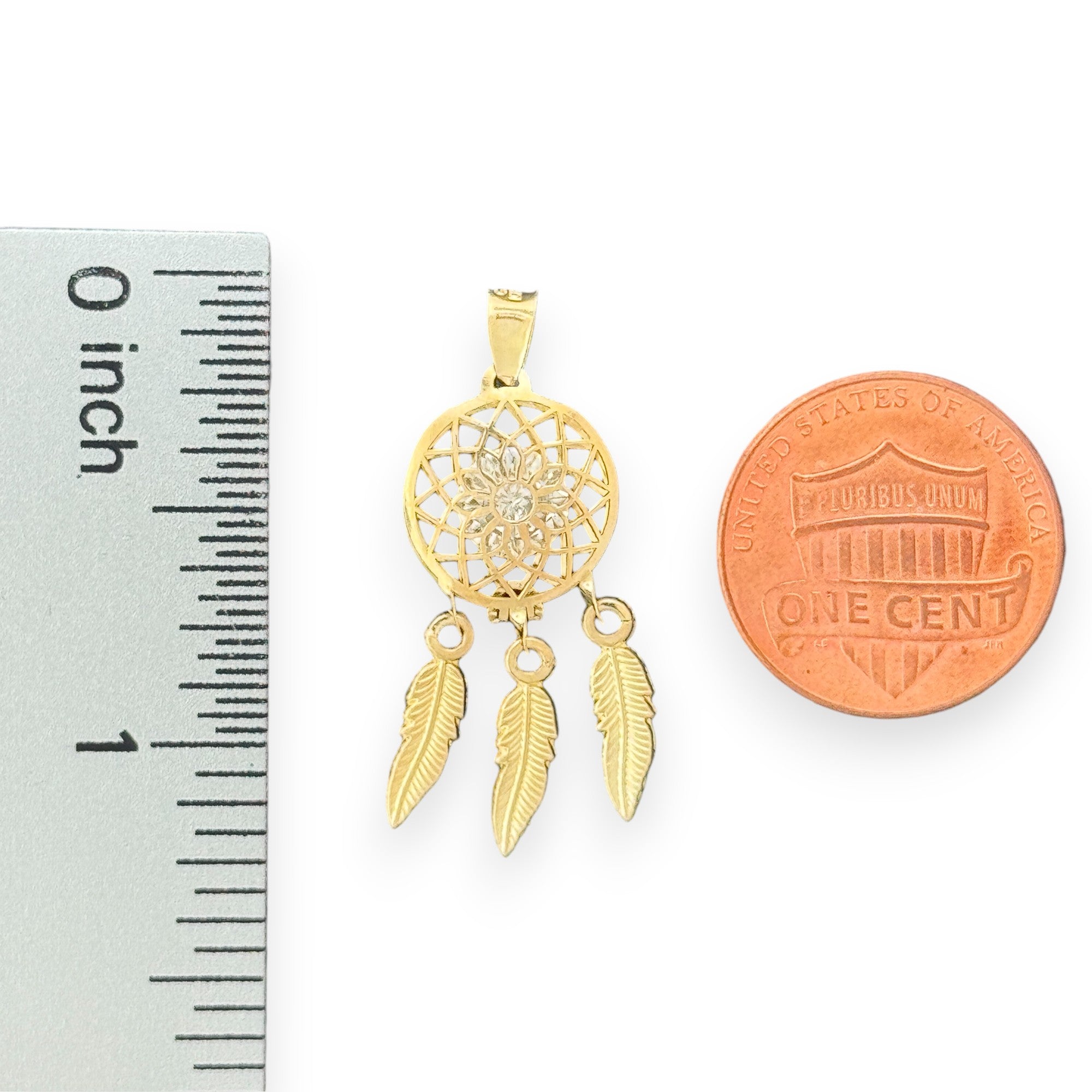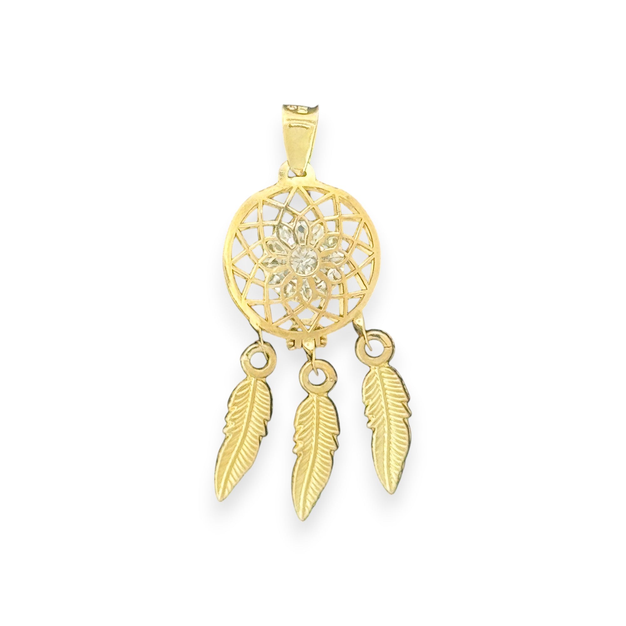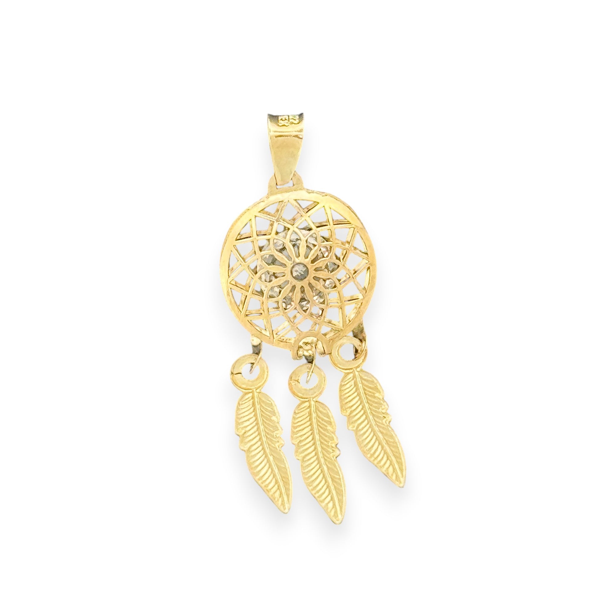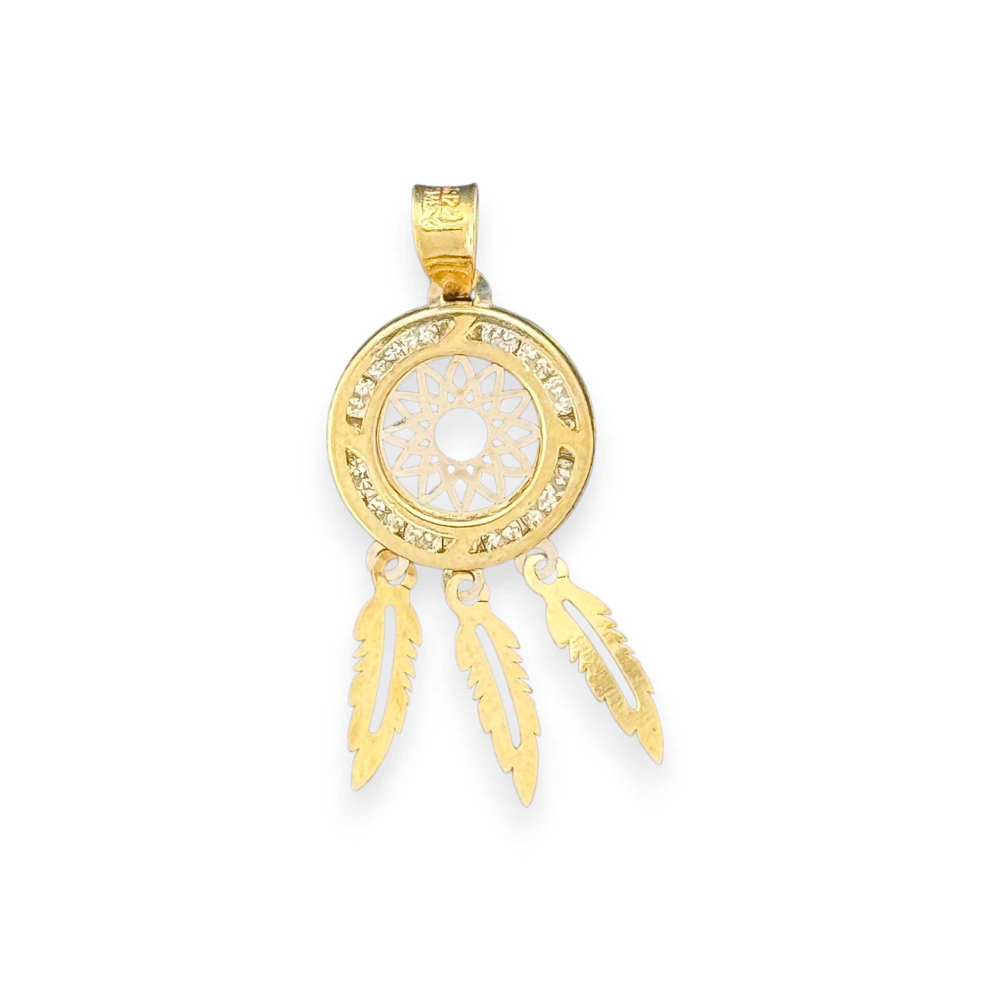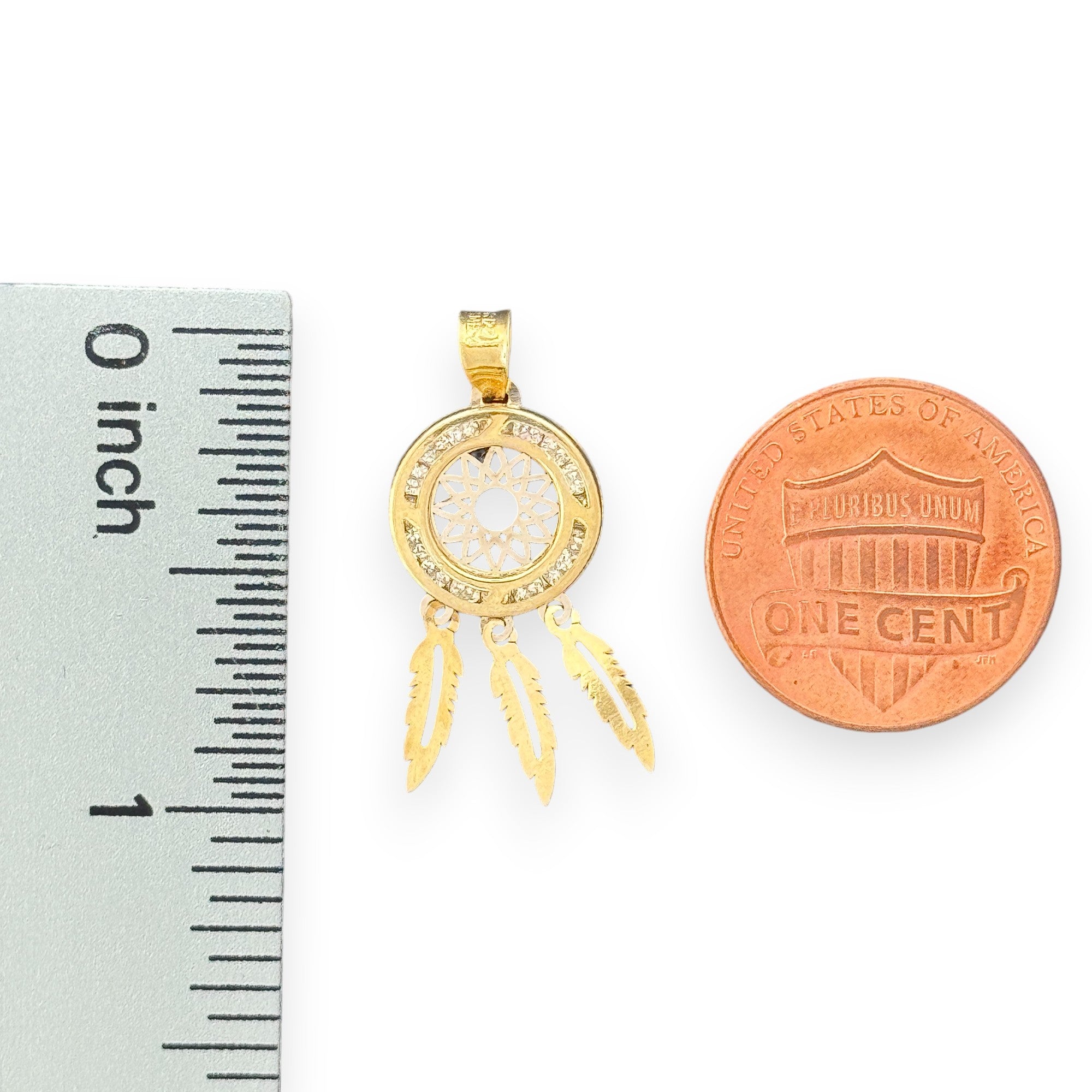 10KT Gold Dreamcatcher Pendant with Feathers, 0.58 Grm Login to see pricing