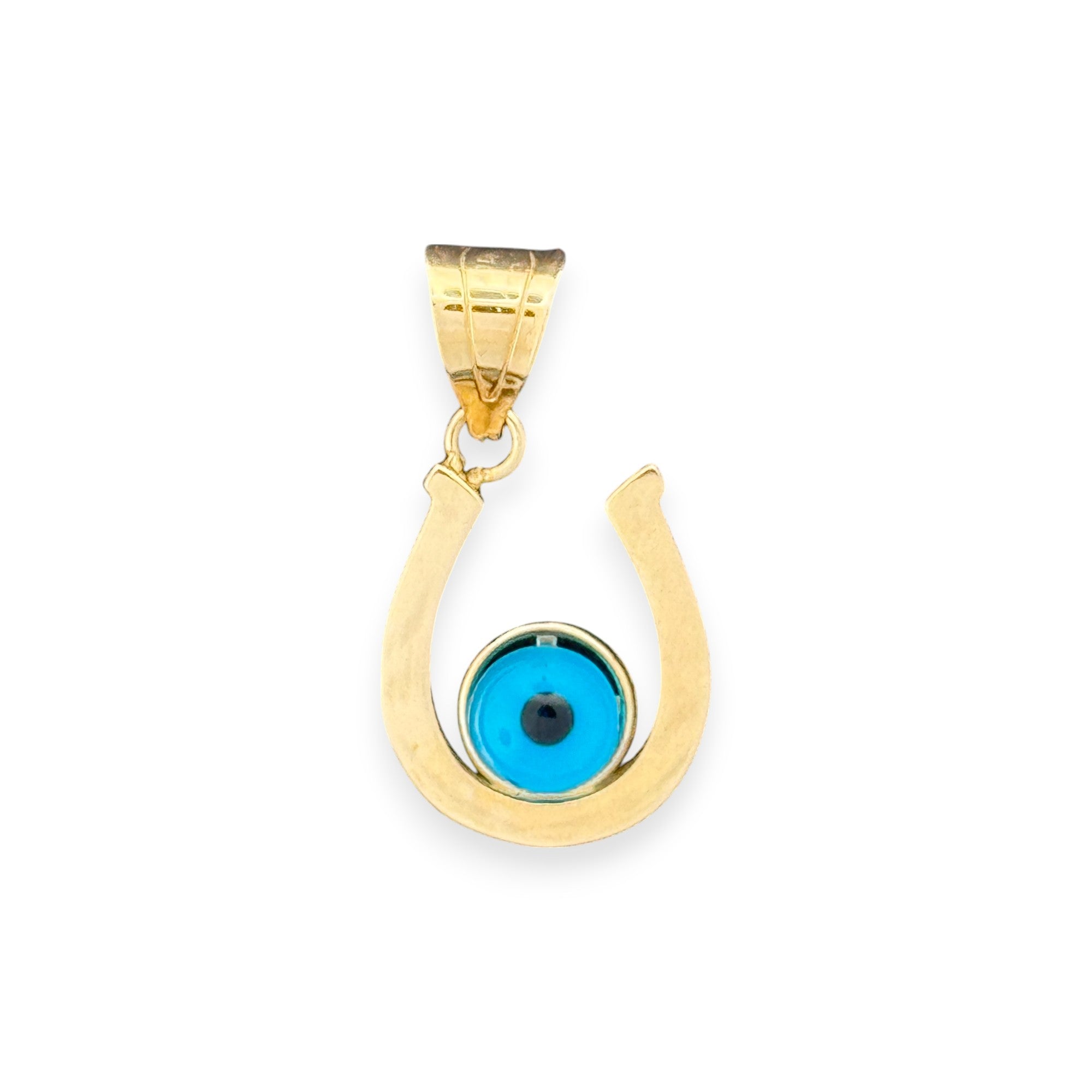 10KT Gold Horseshoe Evil Eye Pendant, 1.45 Grm Login to see pricing