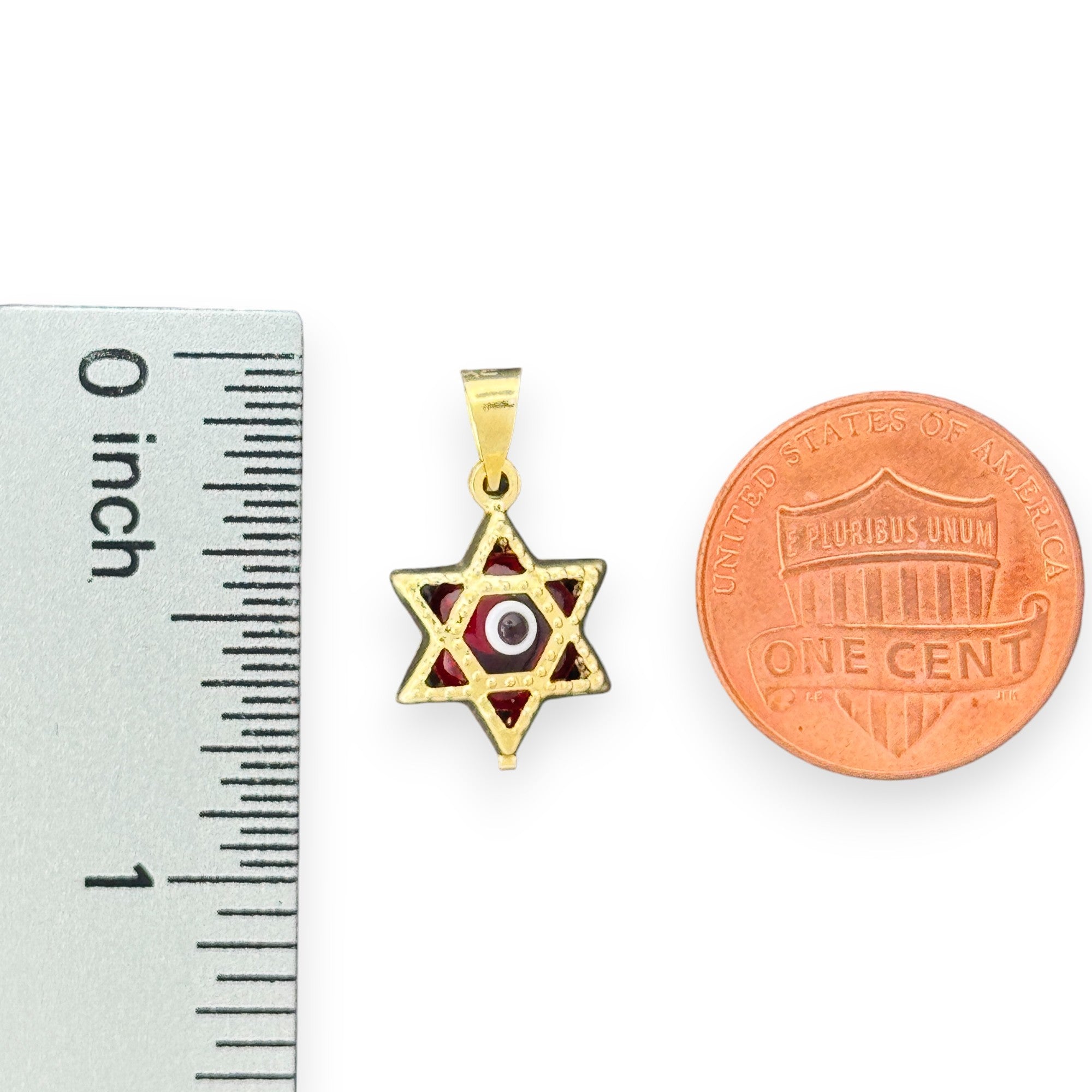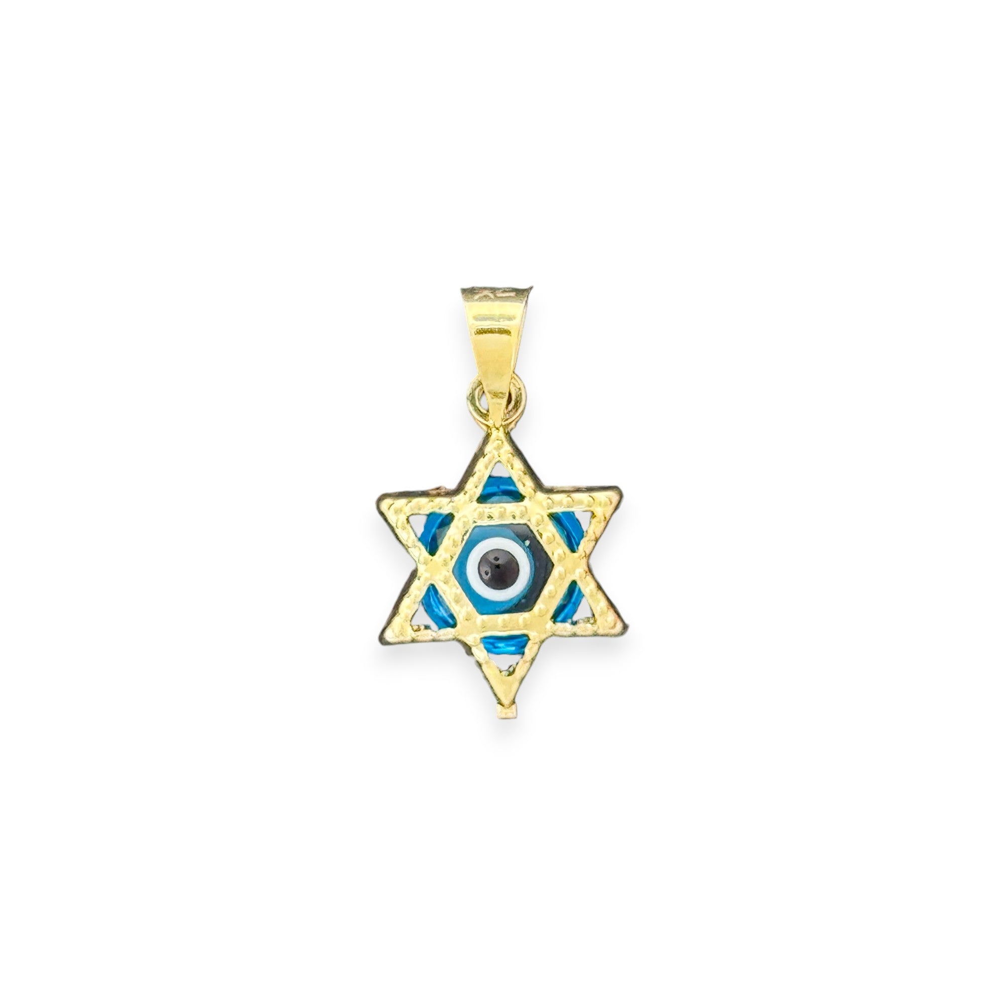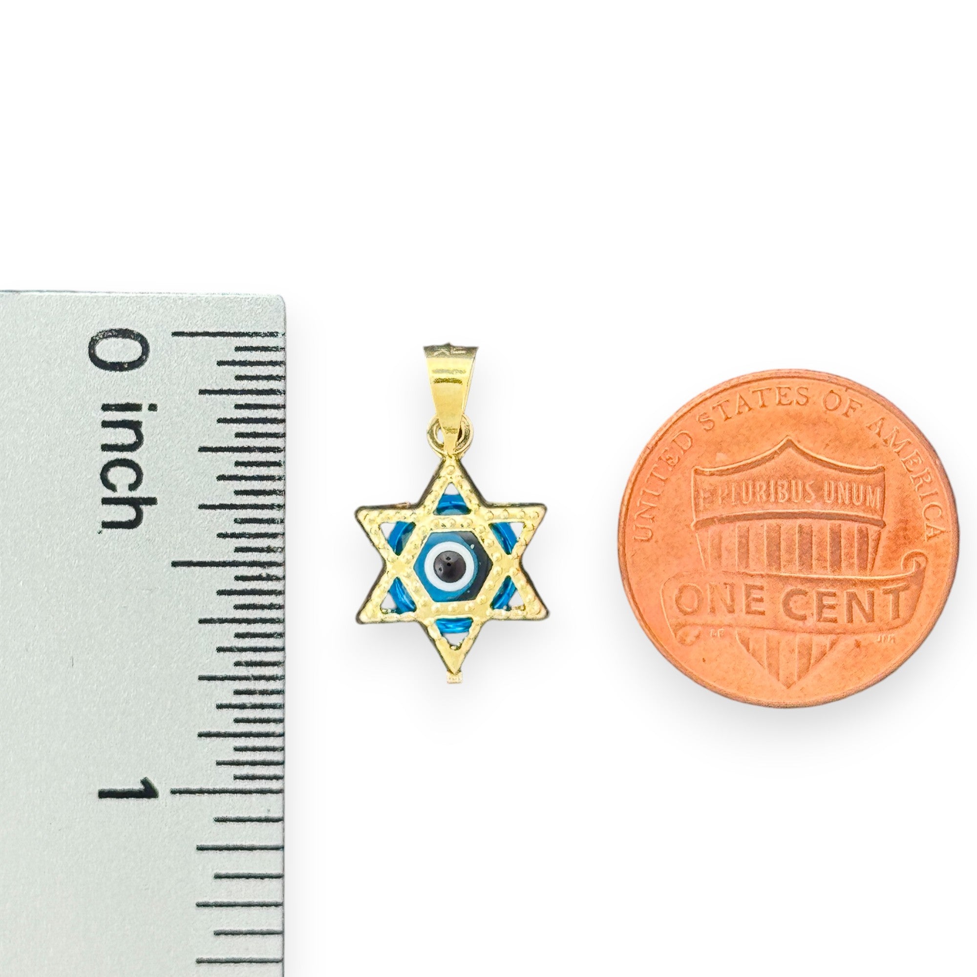 10KT Gold Star of David Pendant with Evil Eye, 0.6 Grm Login to see pricing