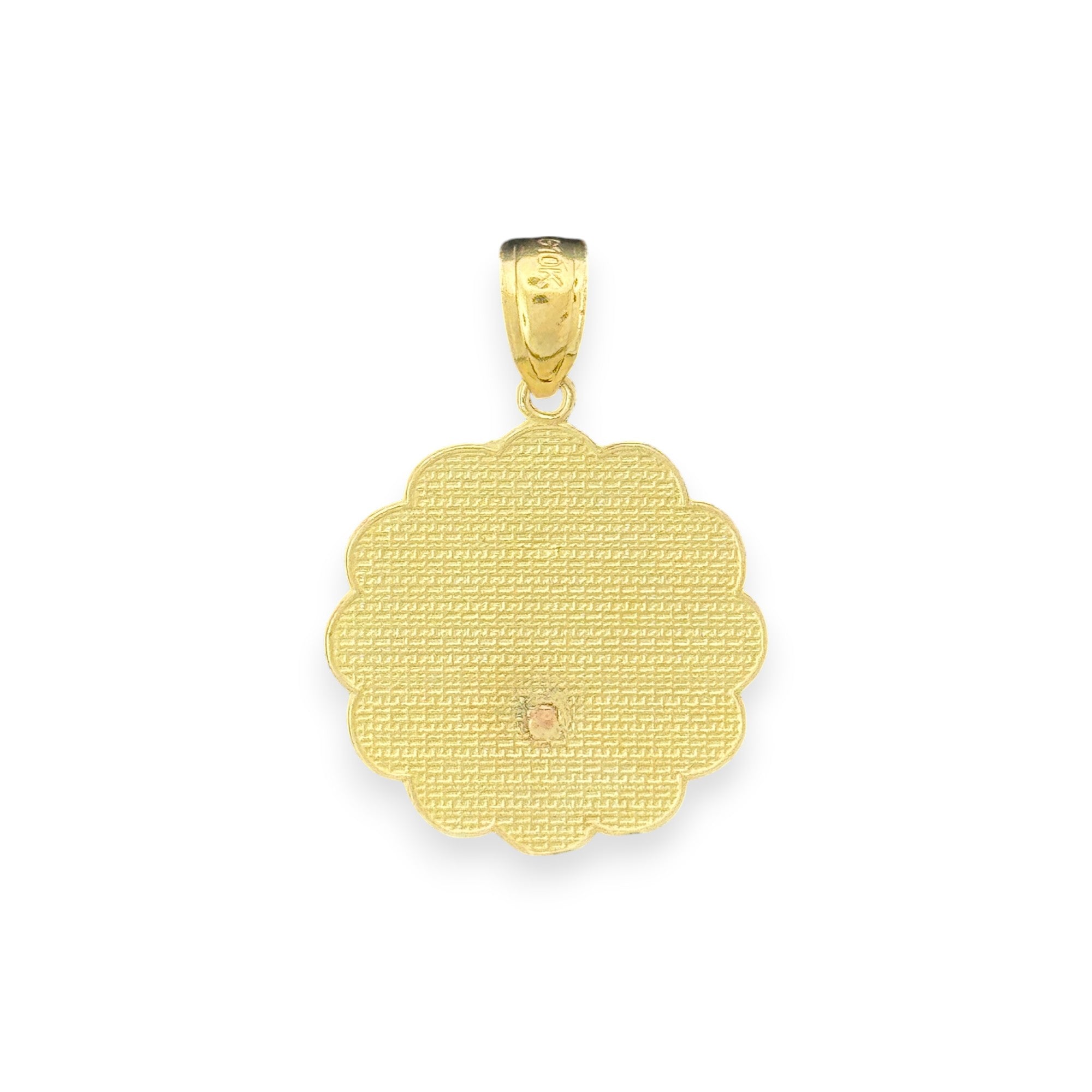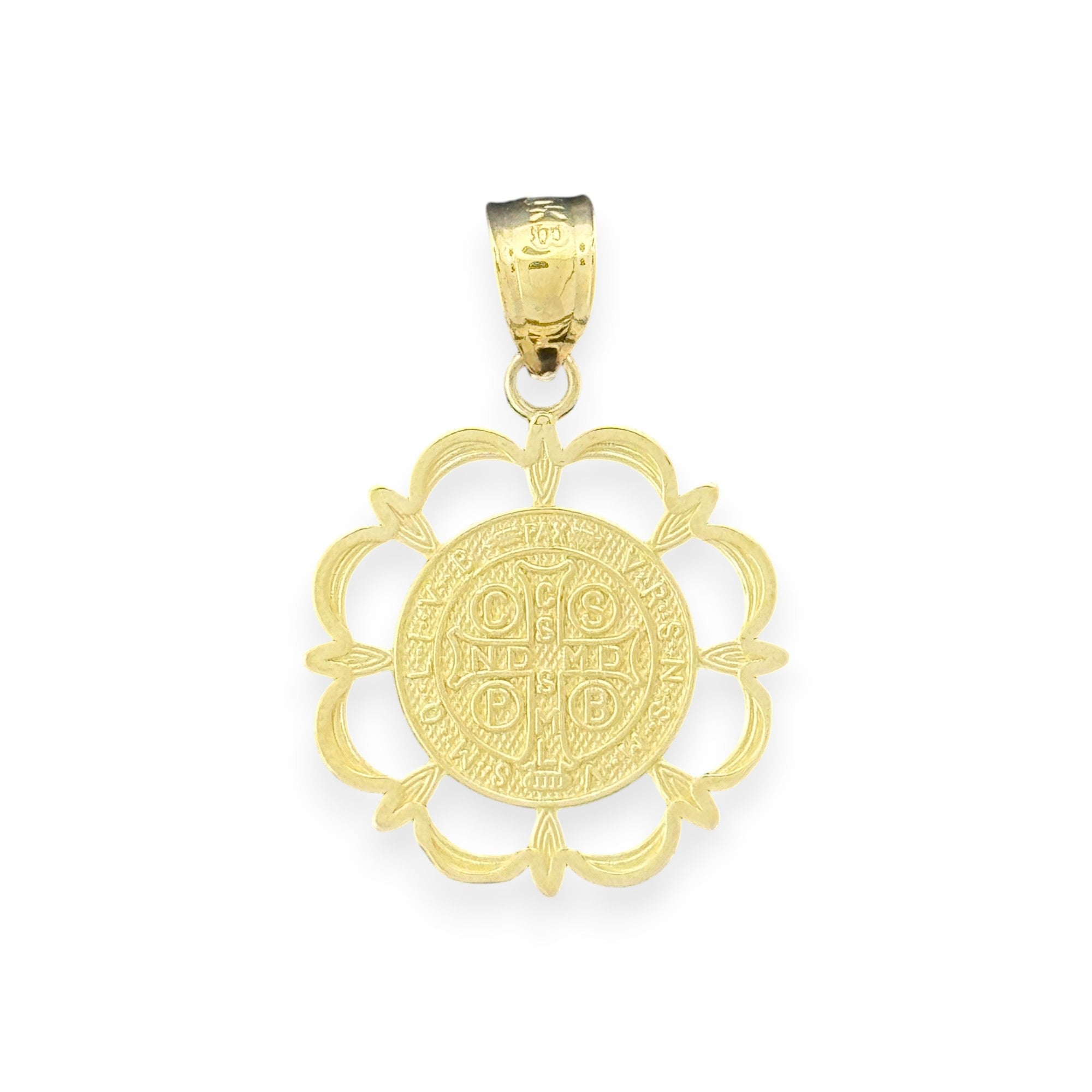 10KT Gold Saint Benedict Pendant with Floral Frame, 2.1 Grm Login to see pricing