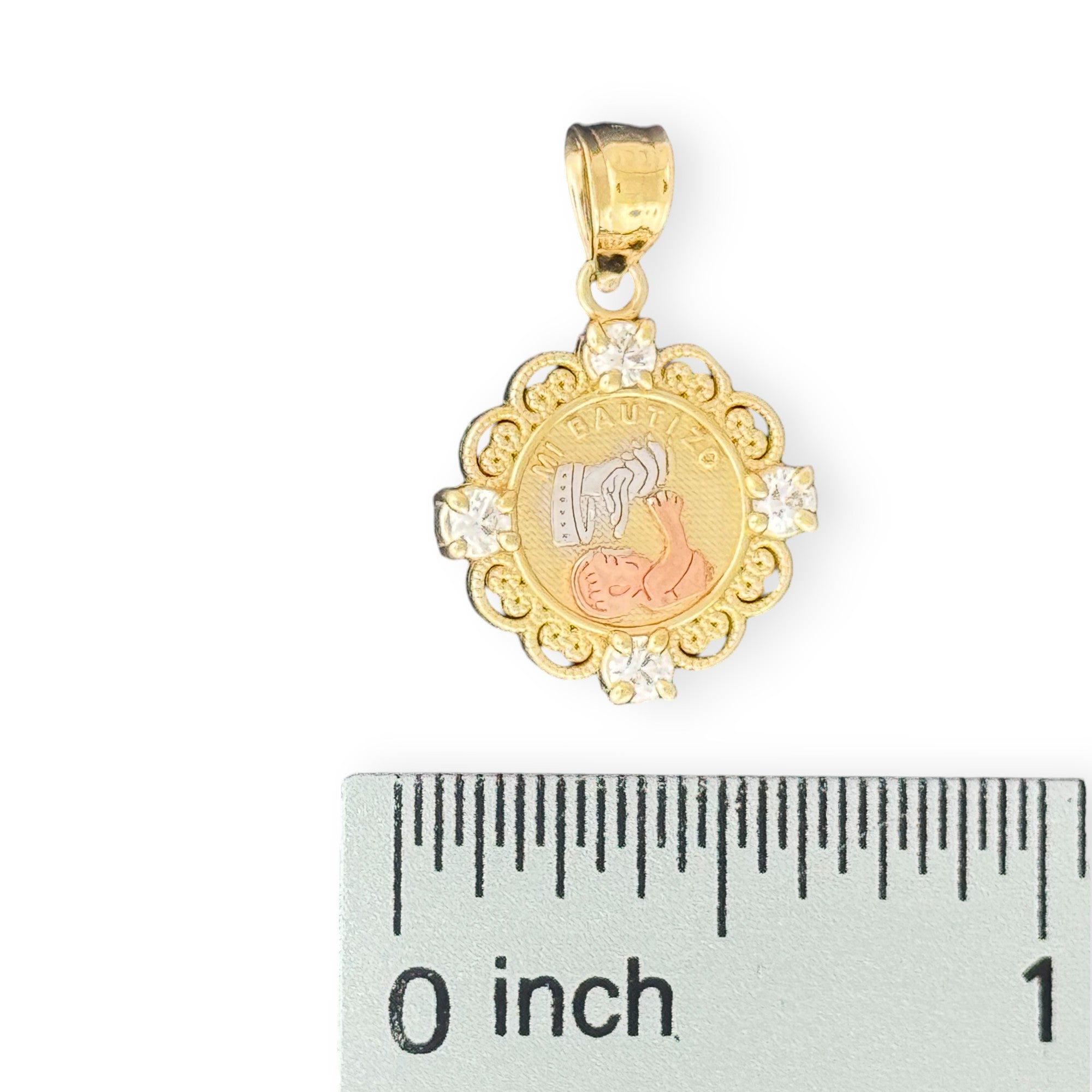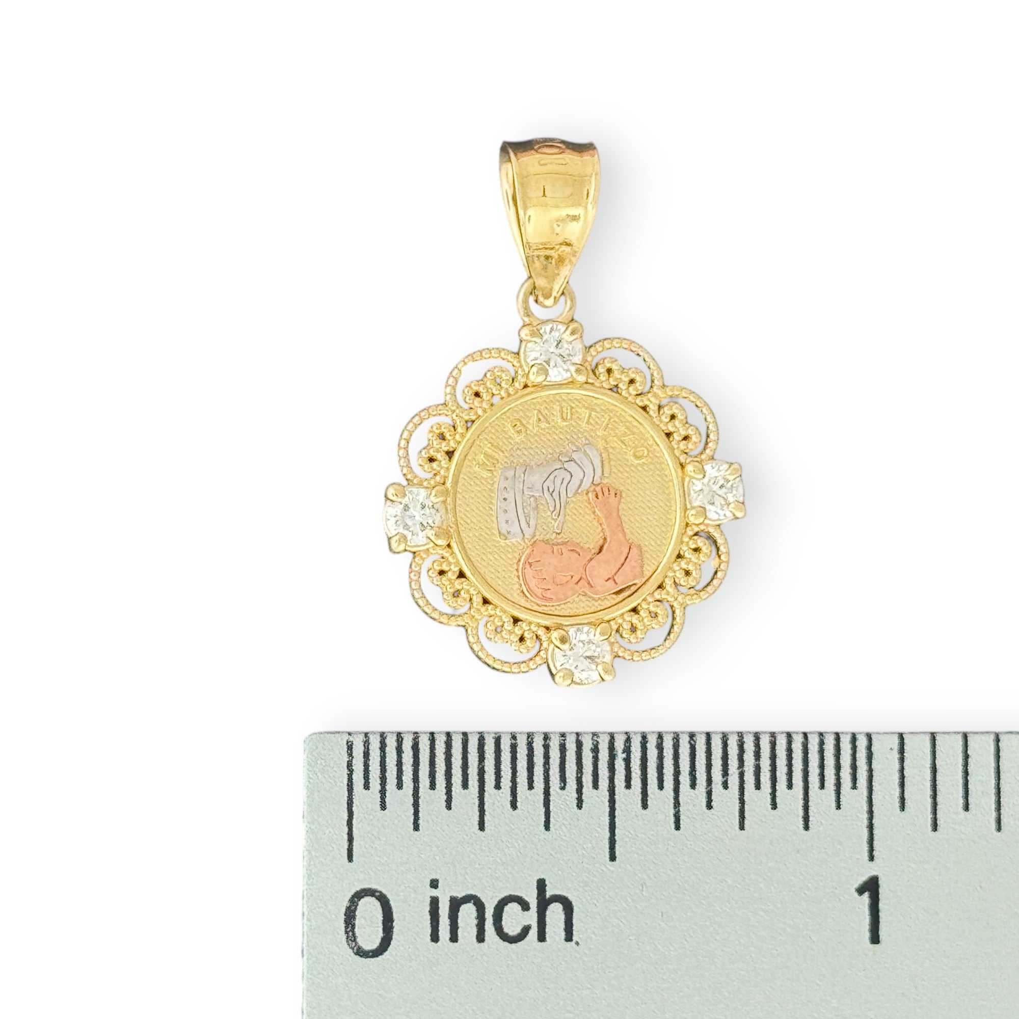 10KT Tri-Tone Gold Round Baptism Pendant, 1.3 Grm Login to see pricing