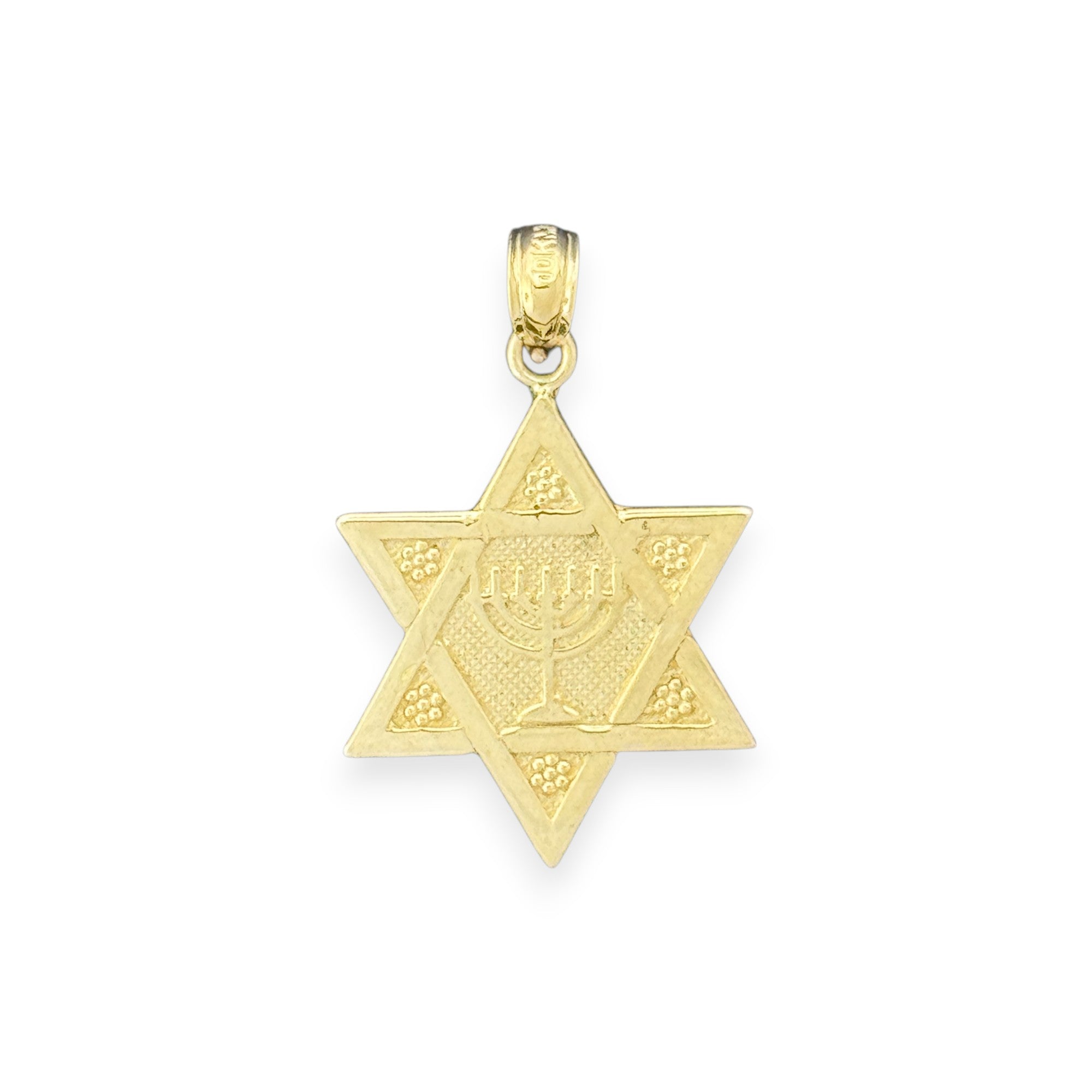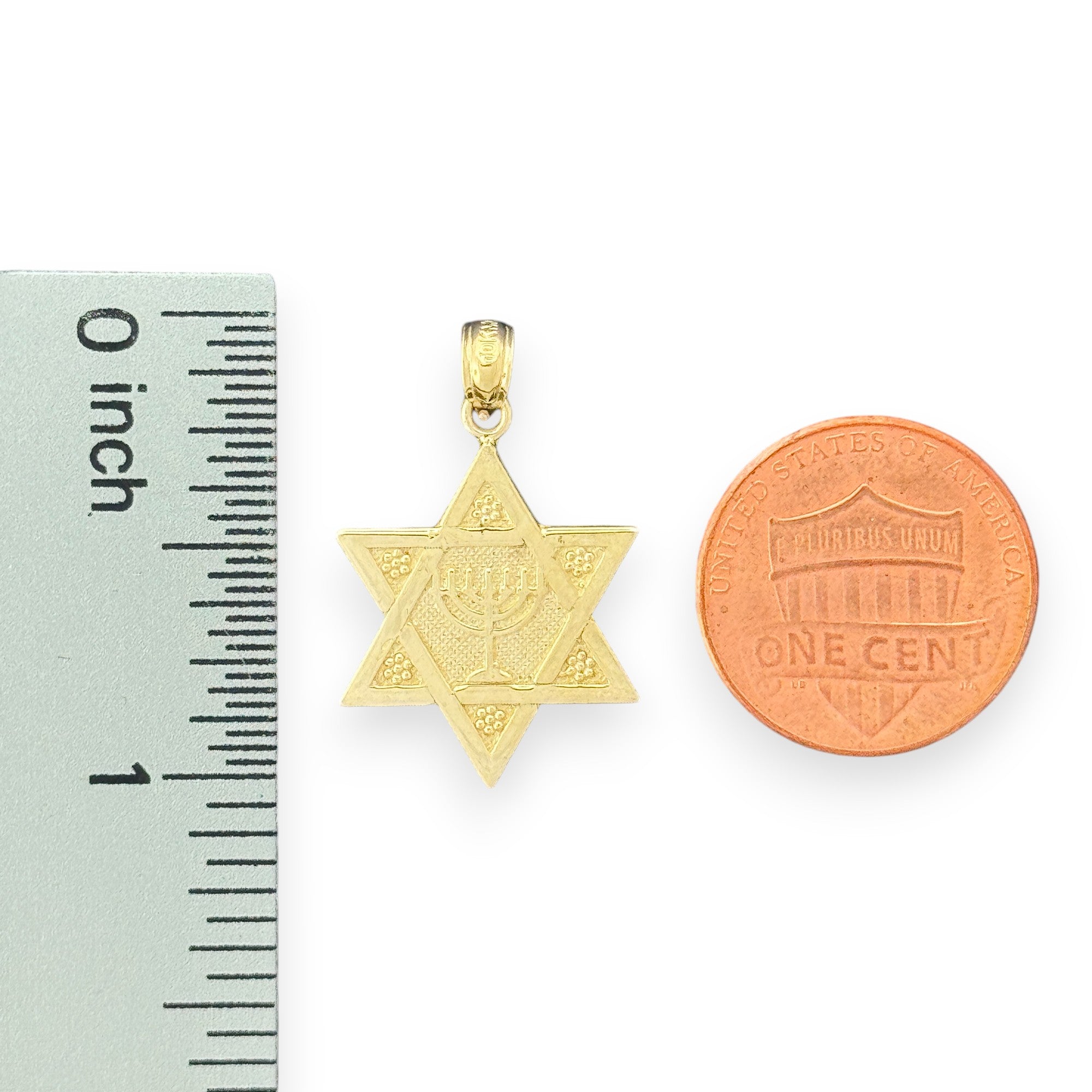 10KT Gold Star of David Pendant with Menorah Engraving, 1.5 Grm Login to see pricing