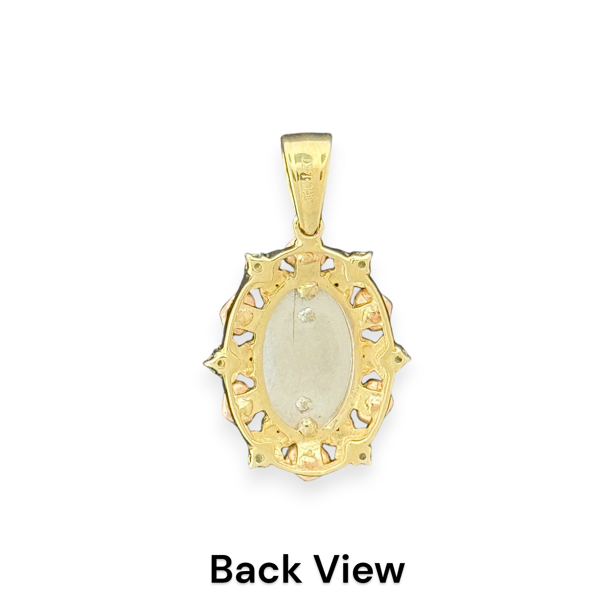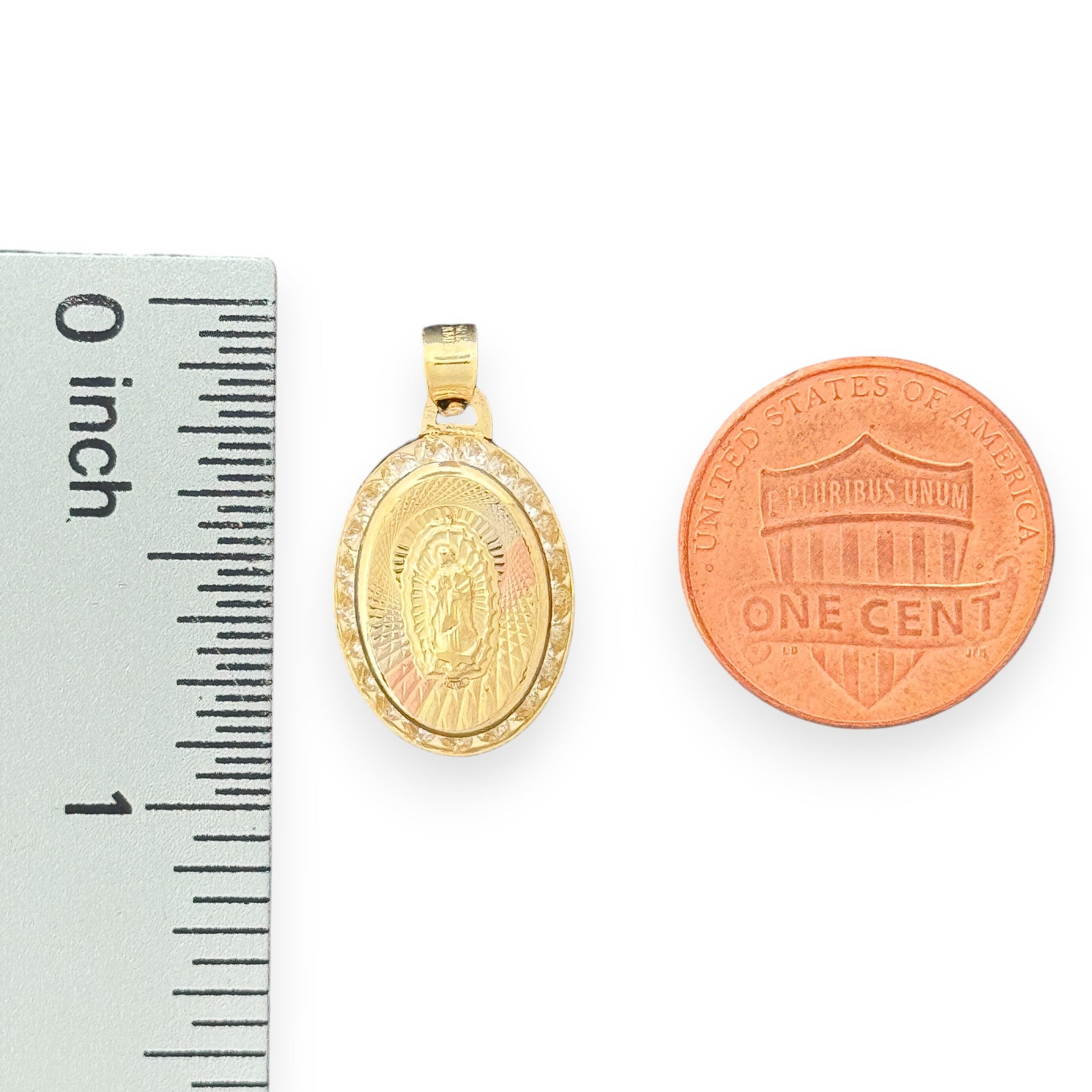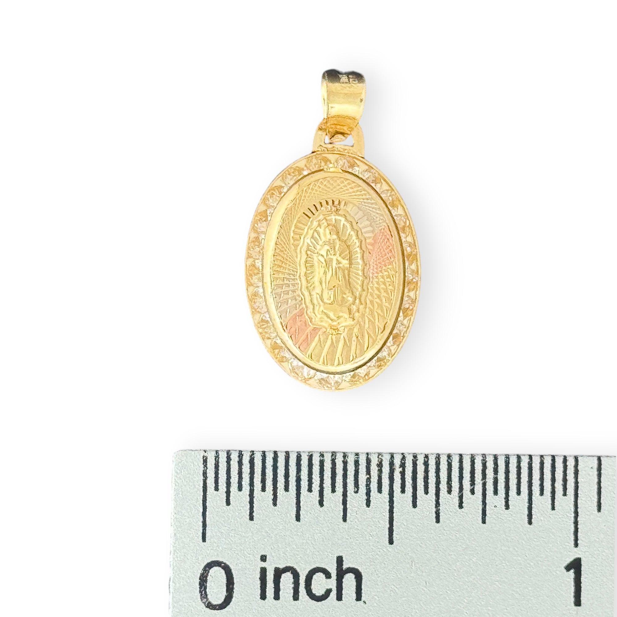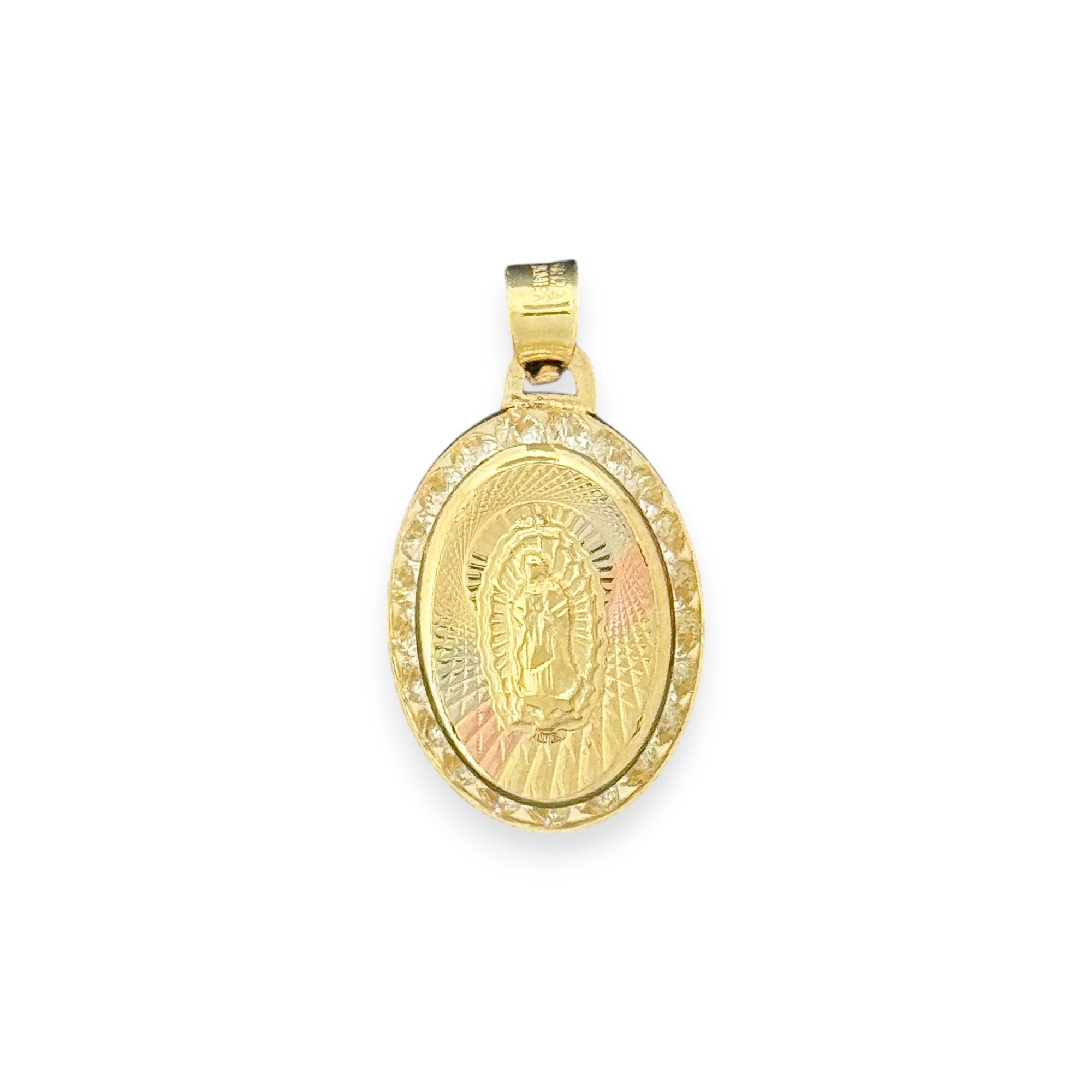 14KT Tri-Color Gold Virgin Mary Oval Pendant with CZ Accents Login to see pricing