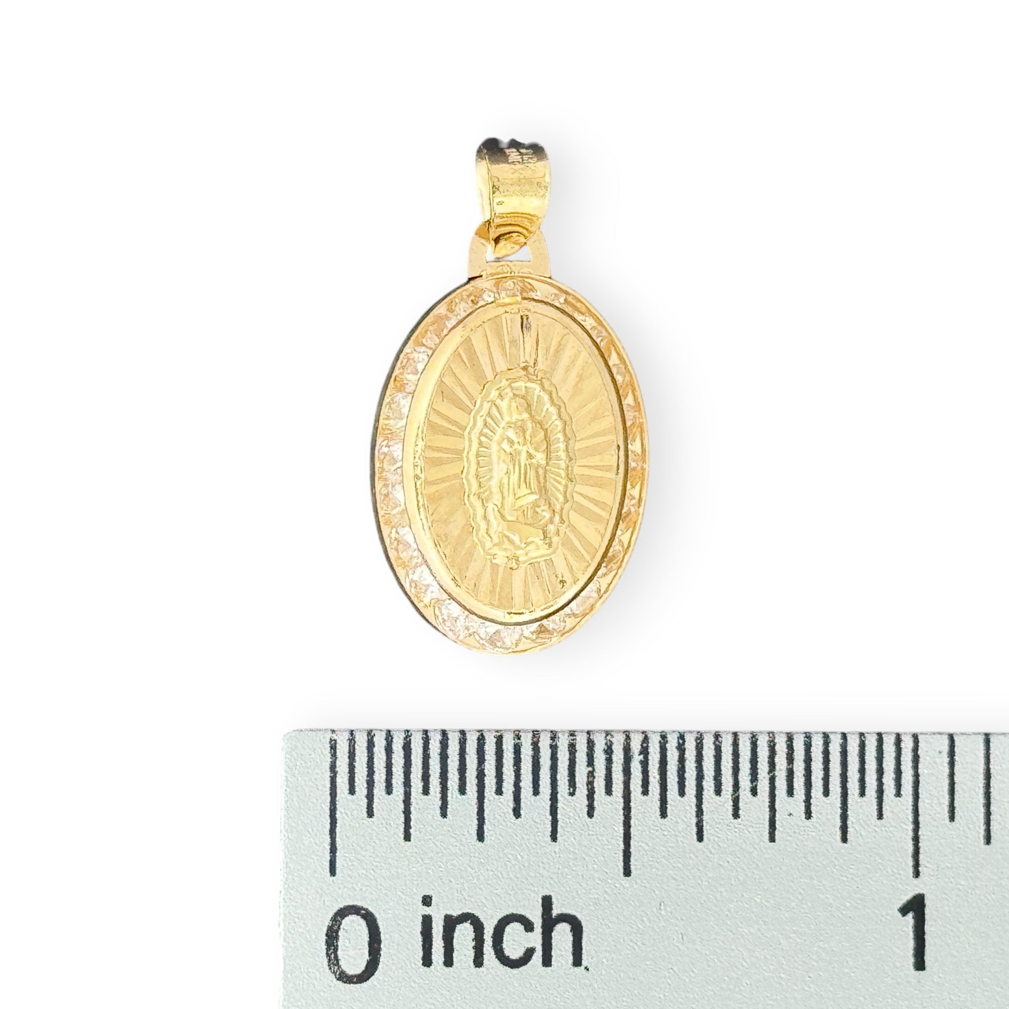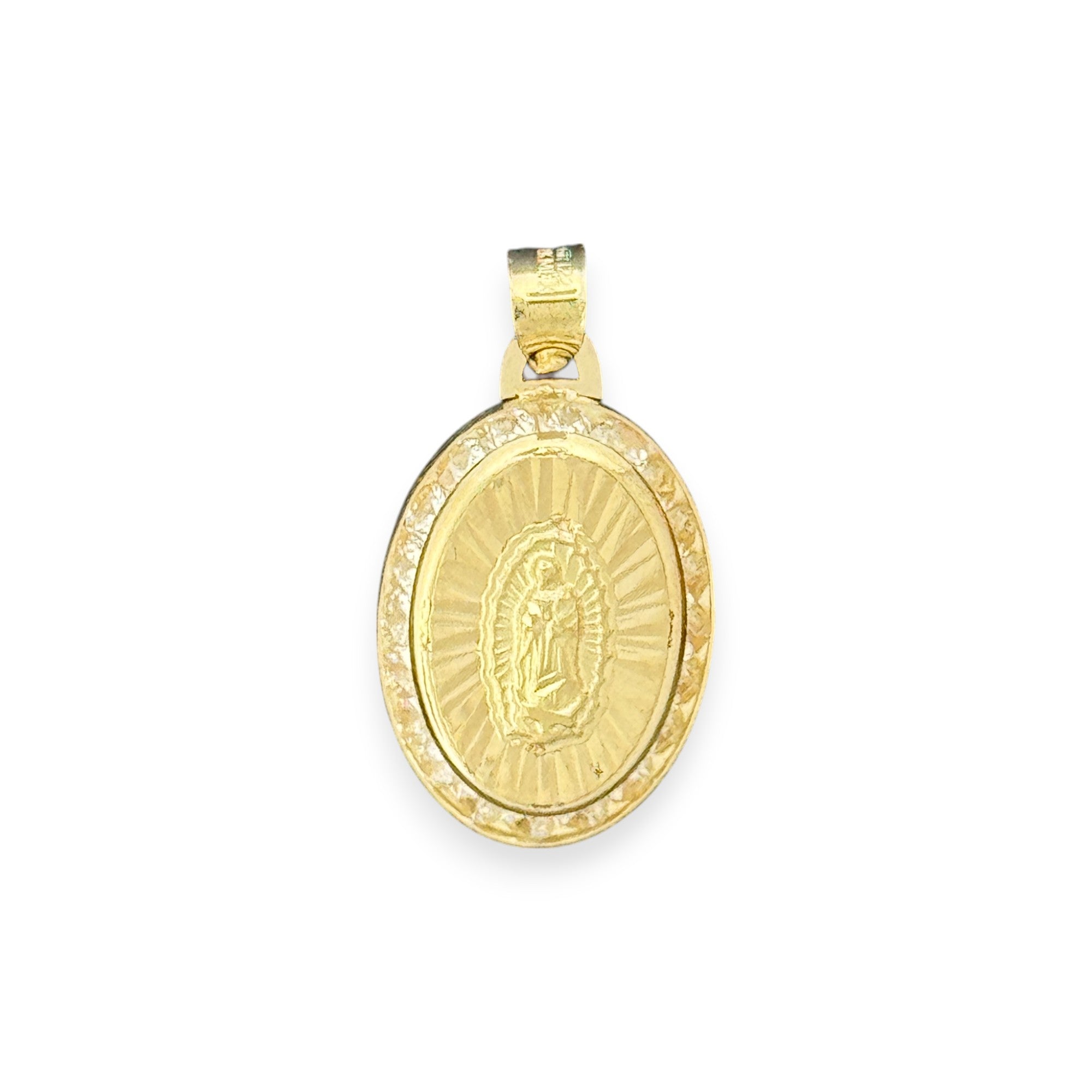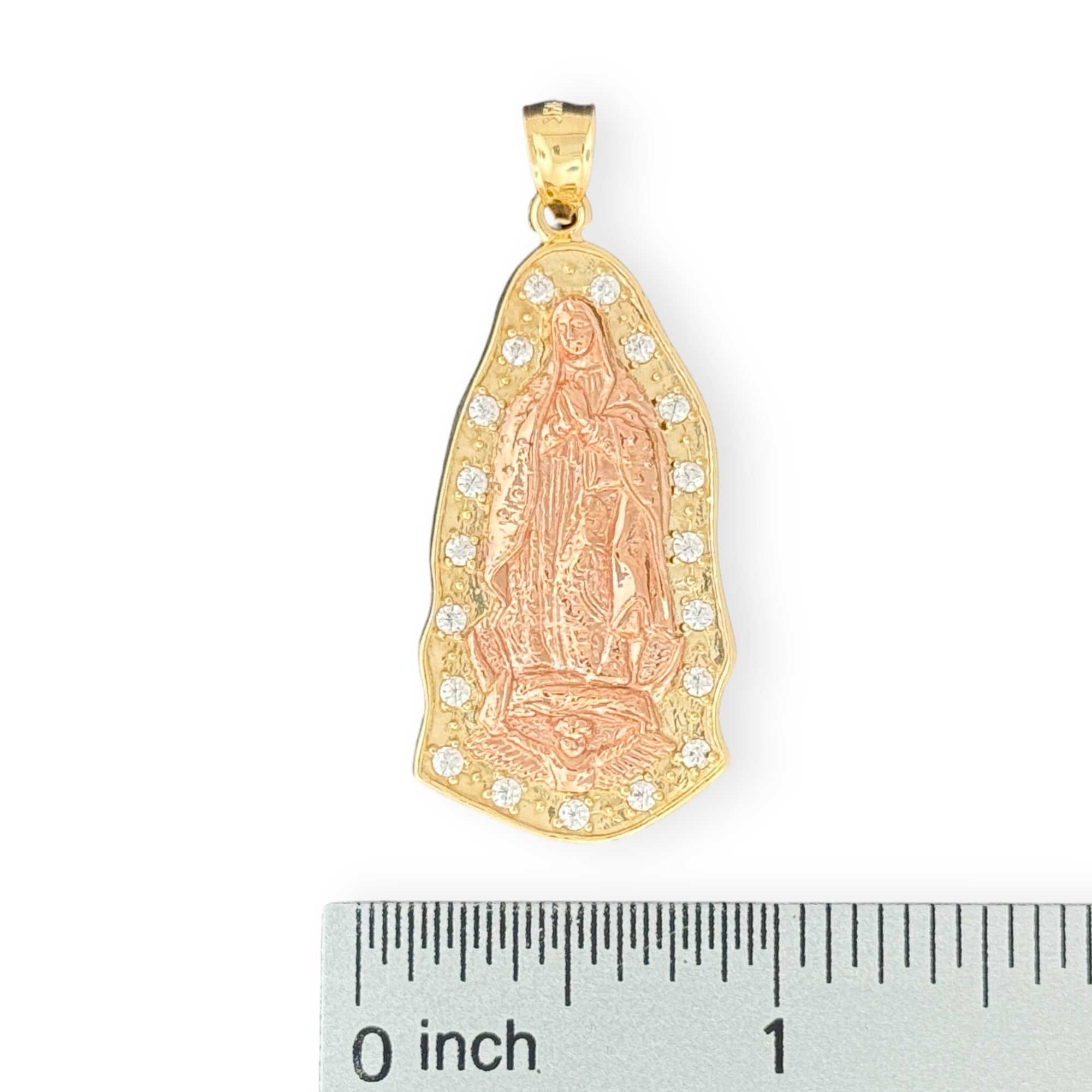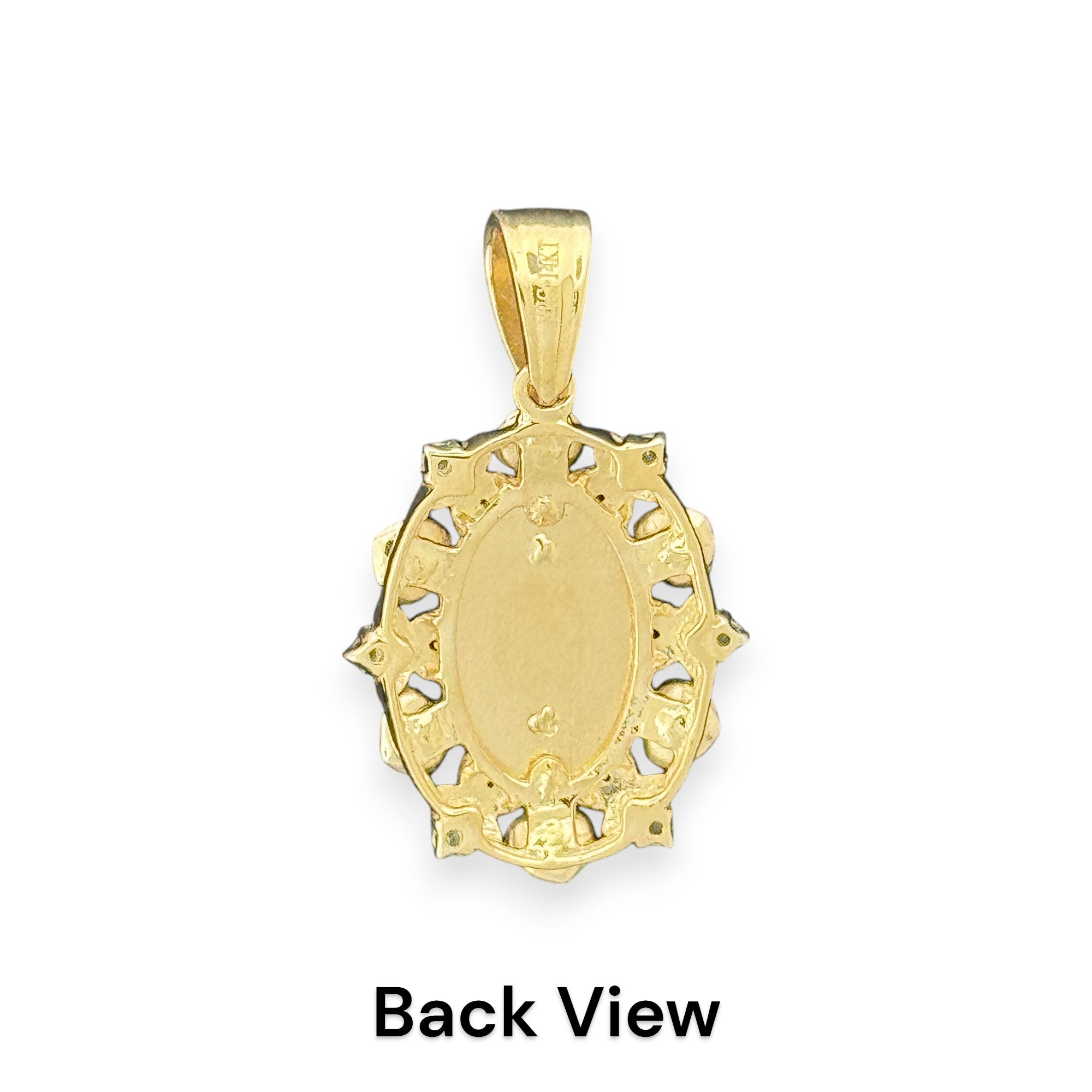 14KT Tri-Color Gold Virgin Mary Oval Pendant with CZ Accents Login to see pricing