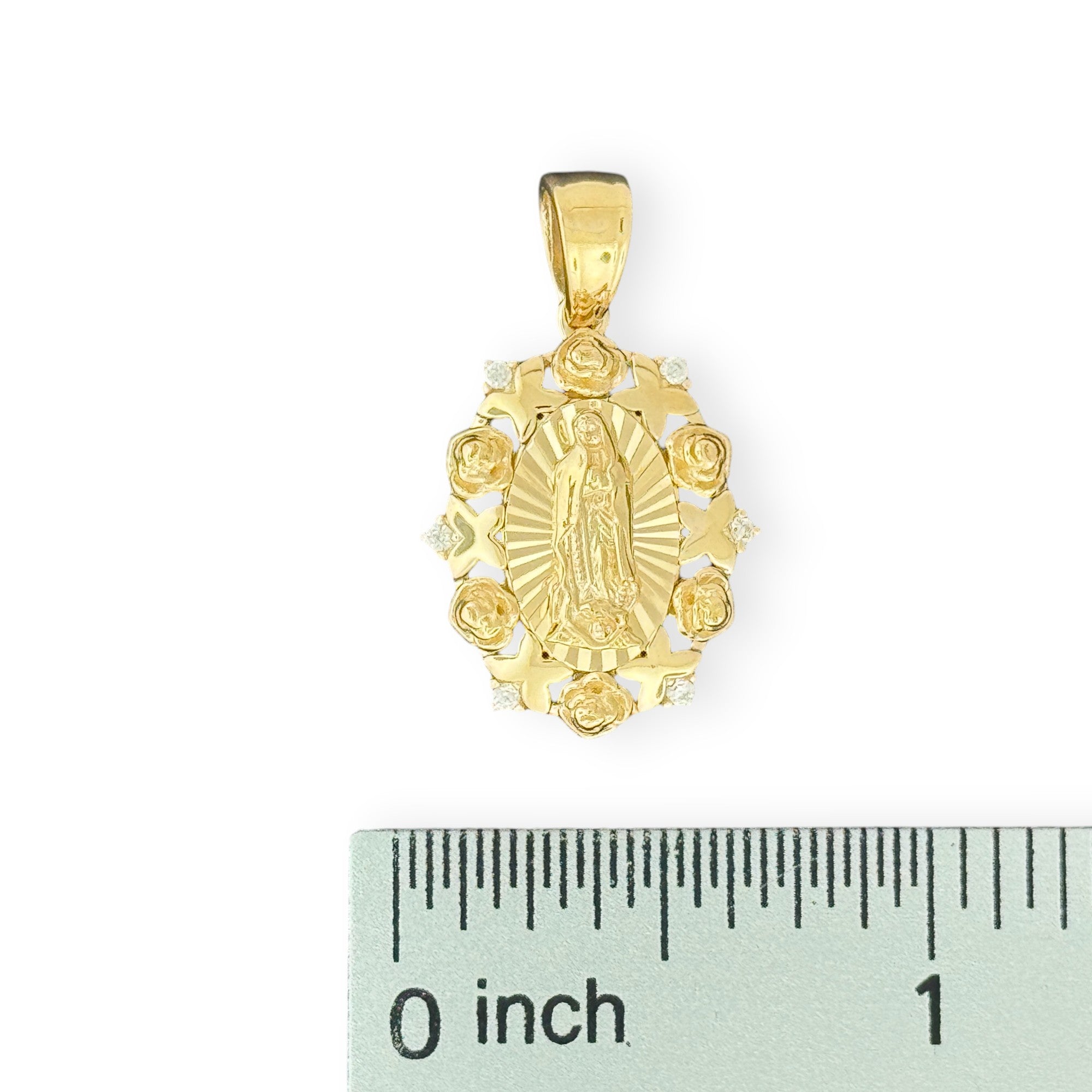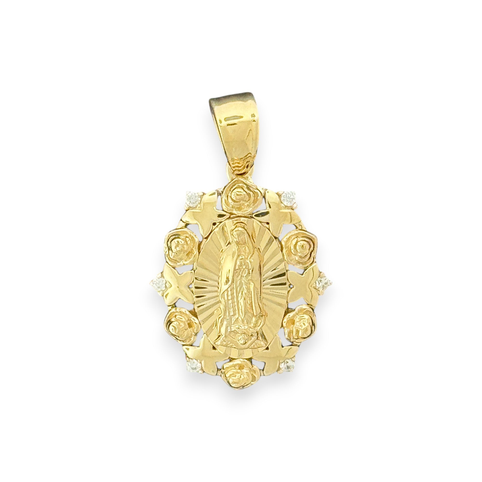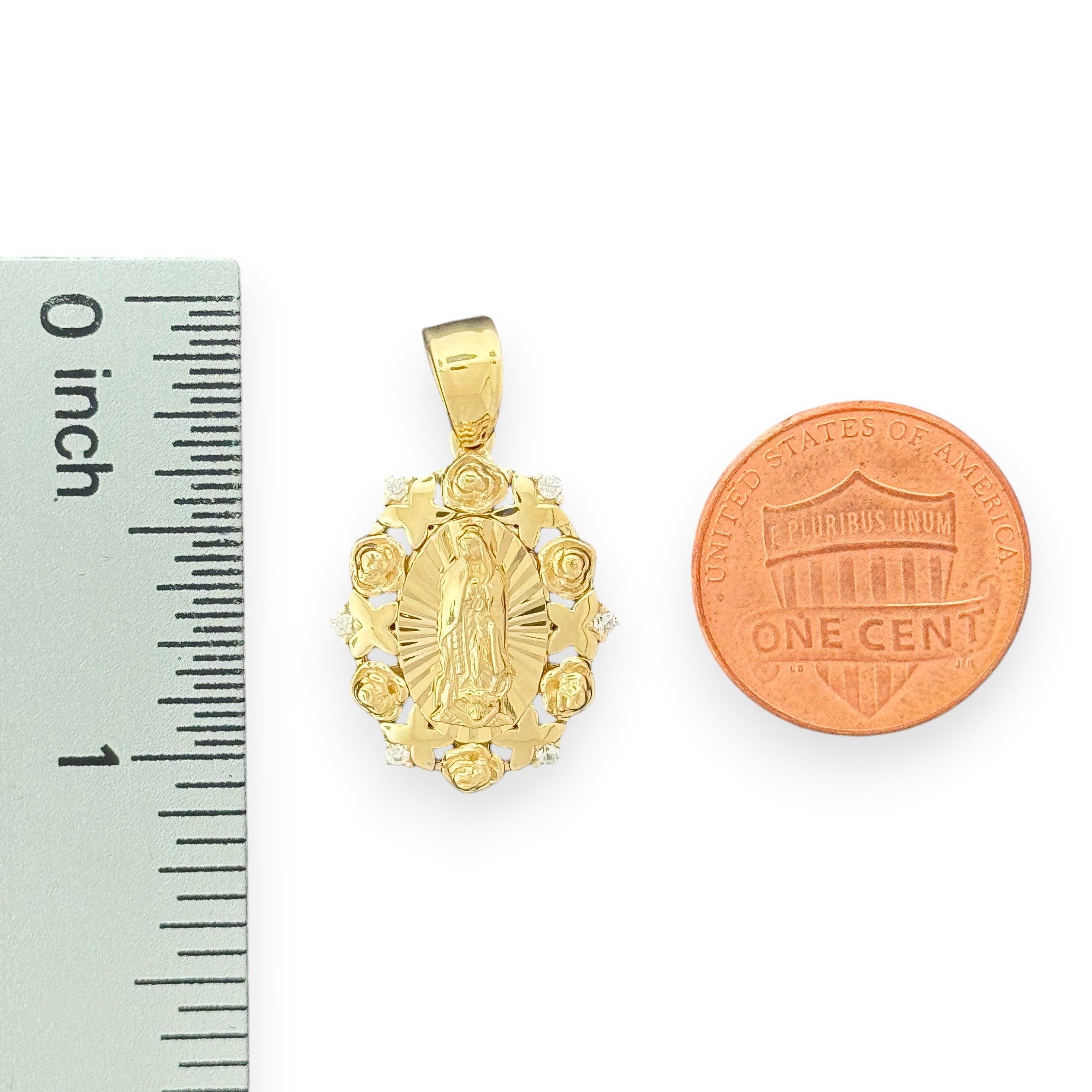 14KT Yellow Gold Virgin Mary Pendant with Roses, 3.20 Grm Login to see pricing