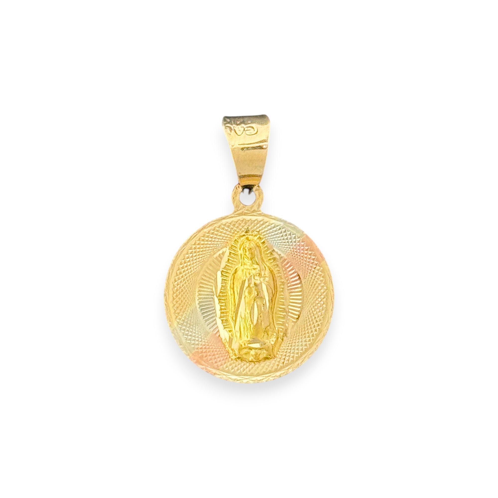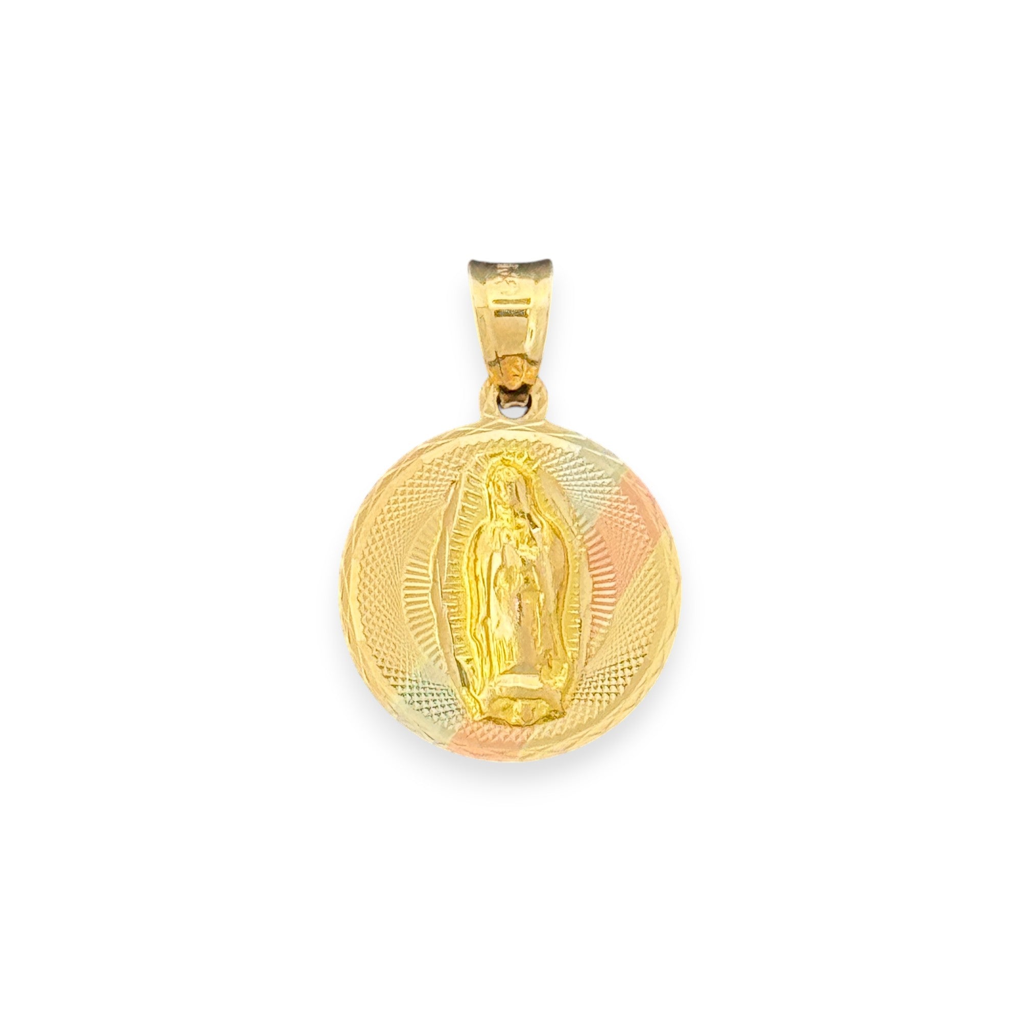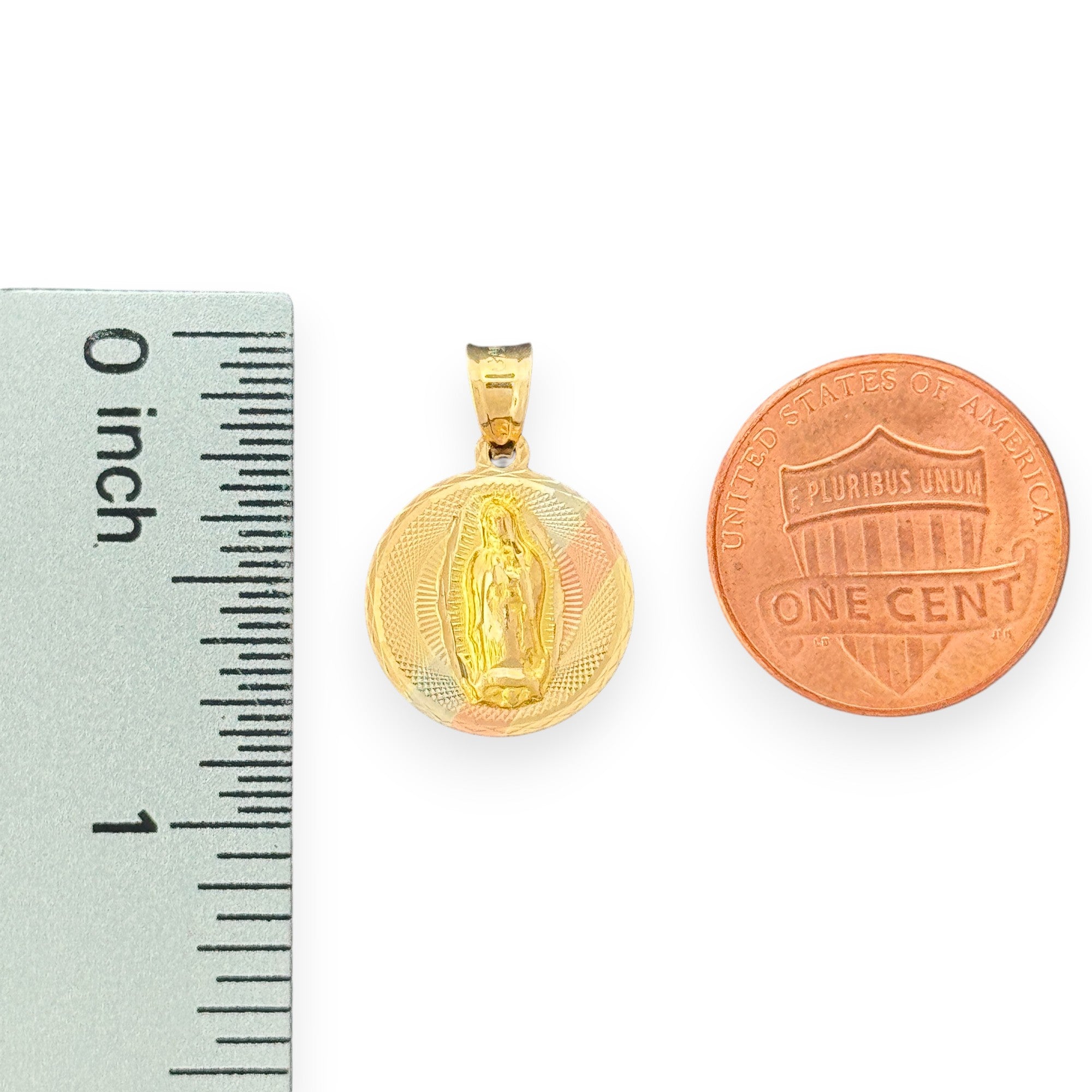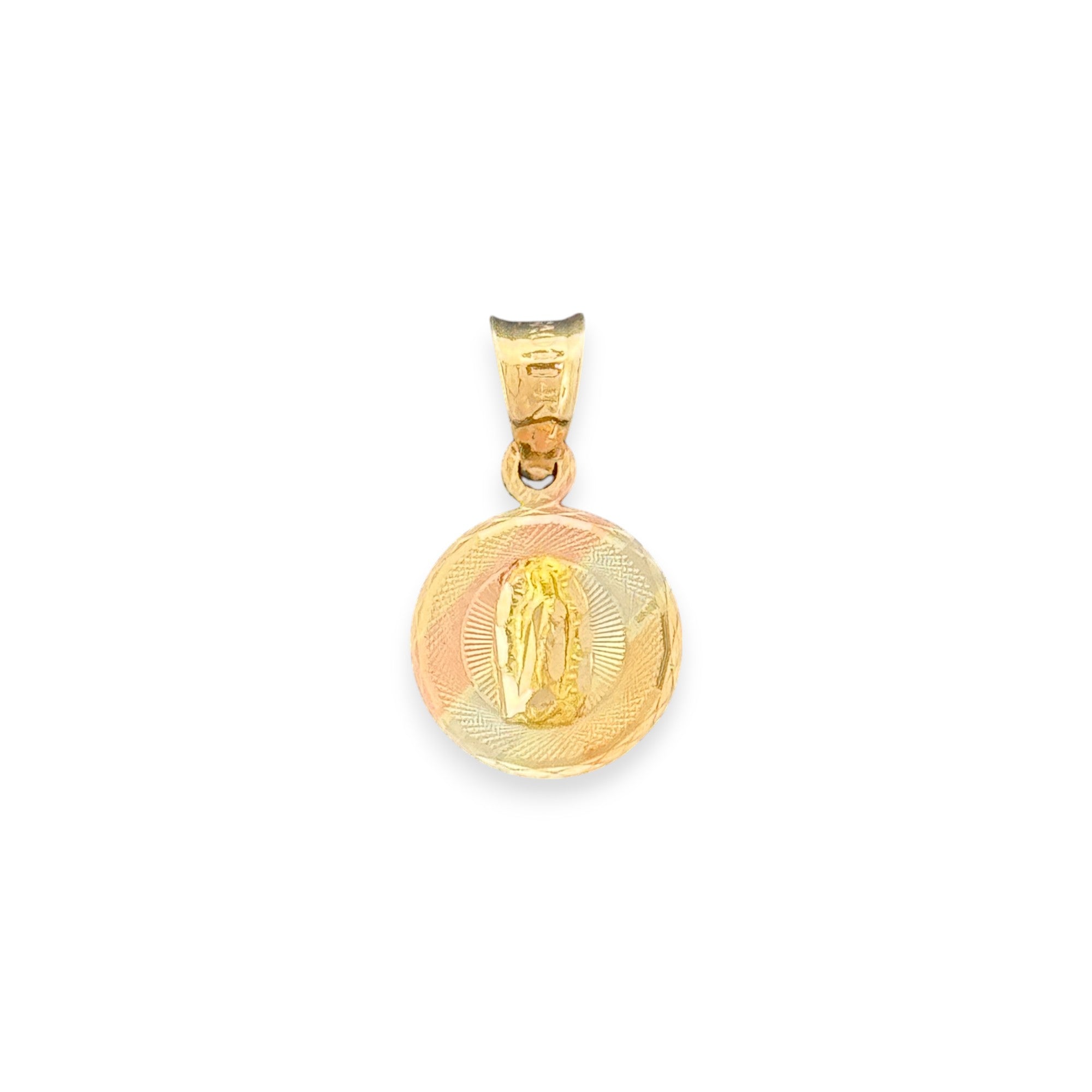 14KT Tri-Color Gold Small Round Virgin Mary Pendant, 0.62 Grm Login to see pricing