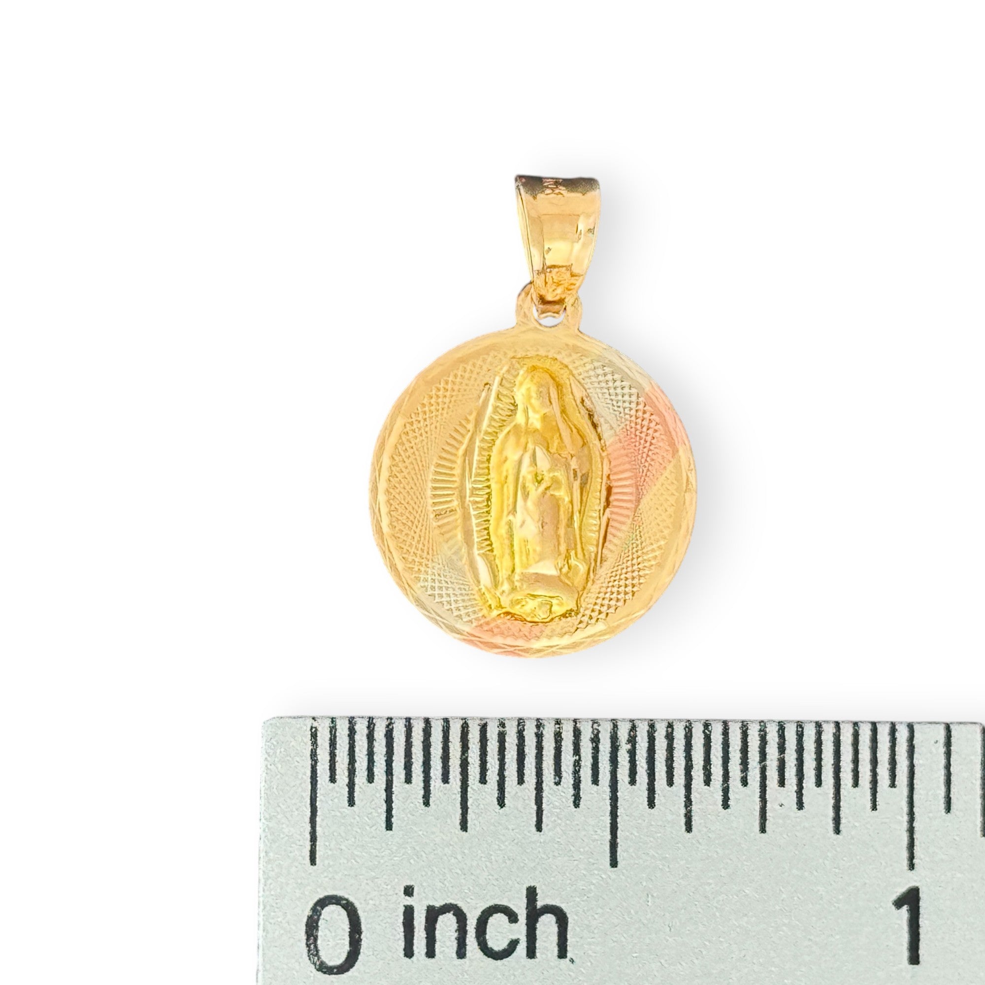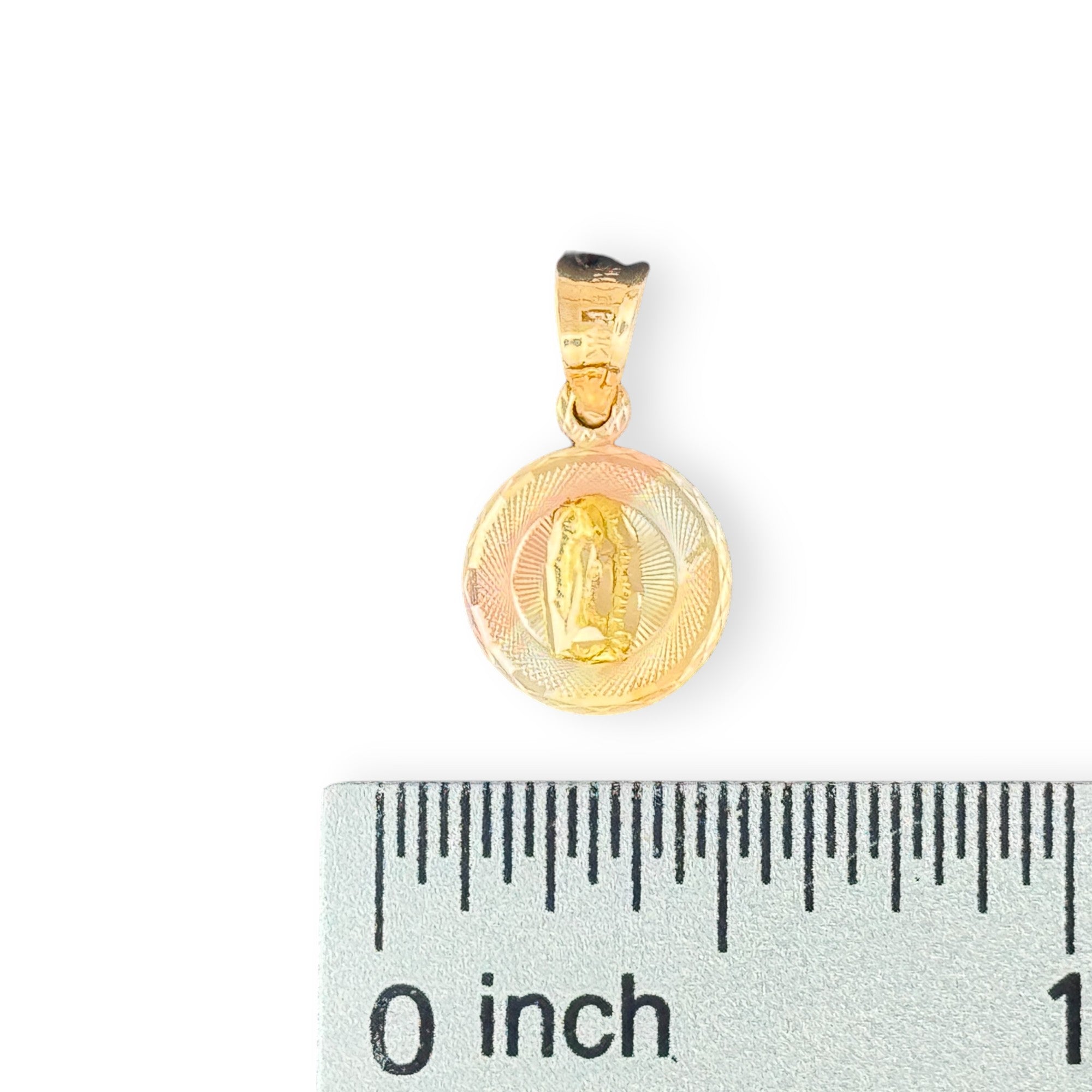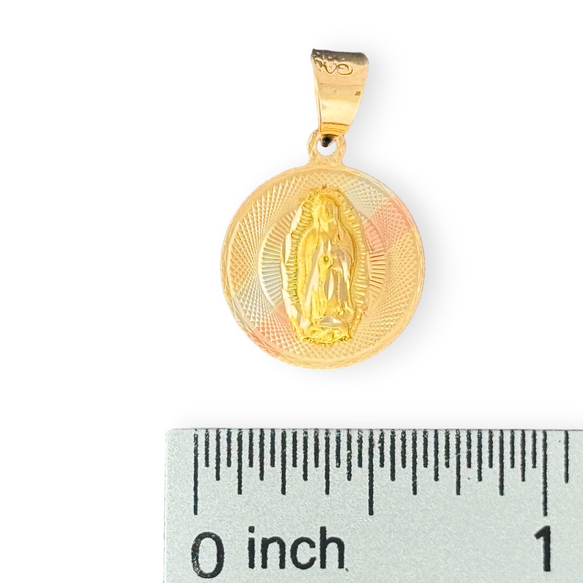 14KT Tri-Color Gold Small Round Virgin Mary Pendant, 0.62 Grm Login to see pricing