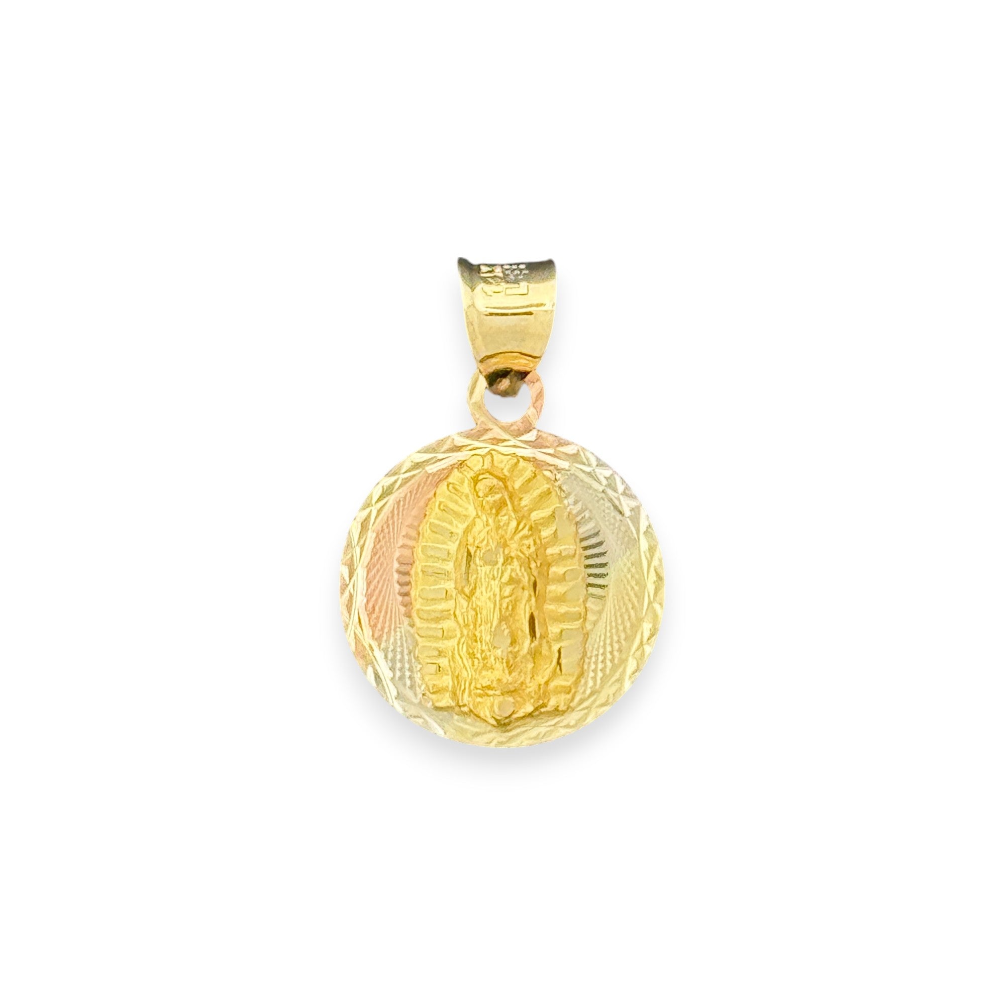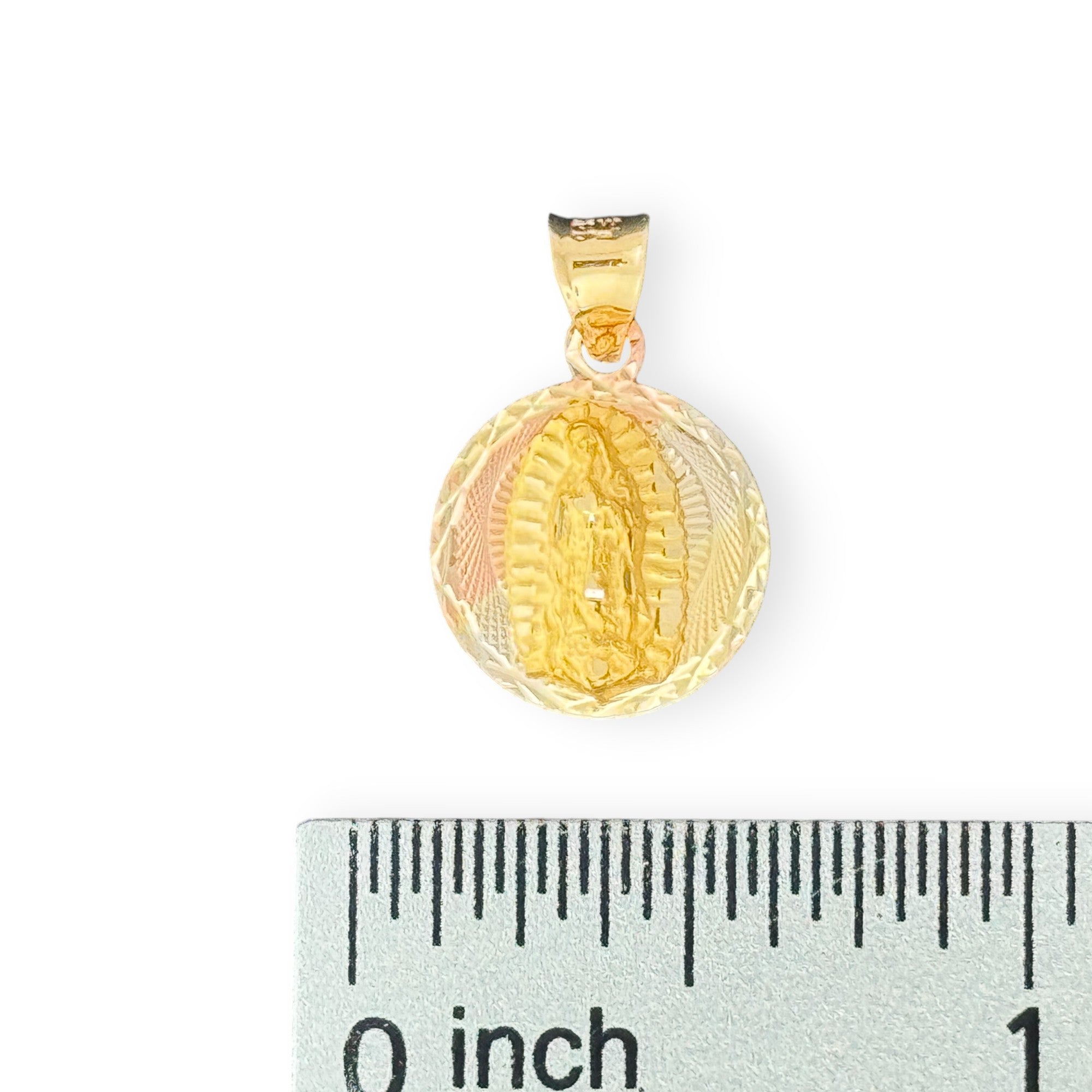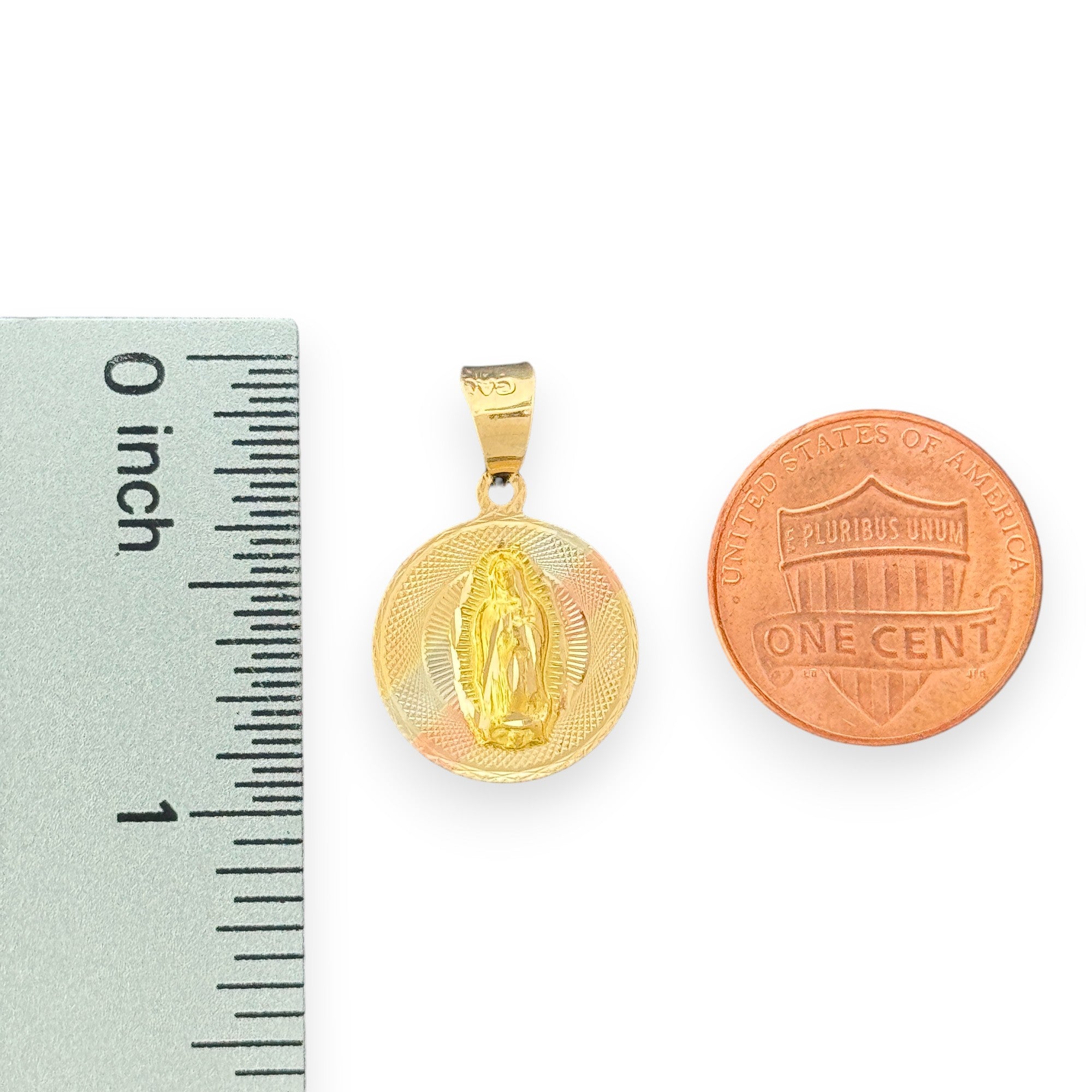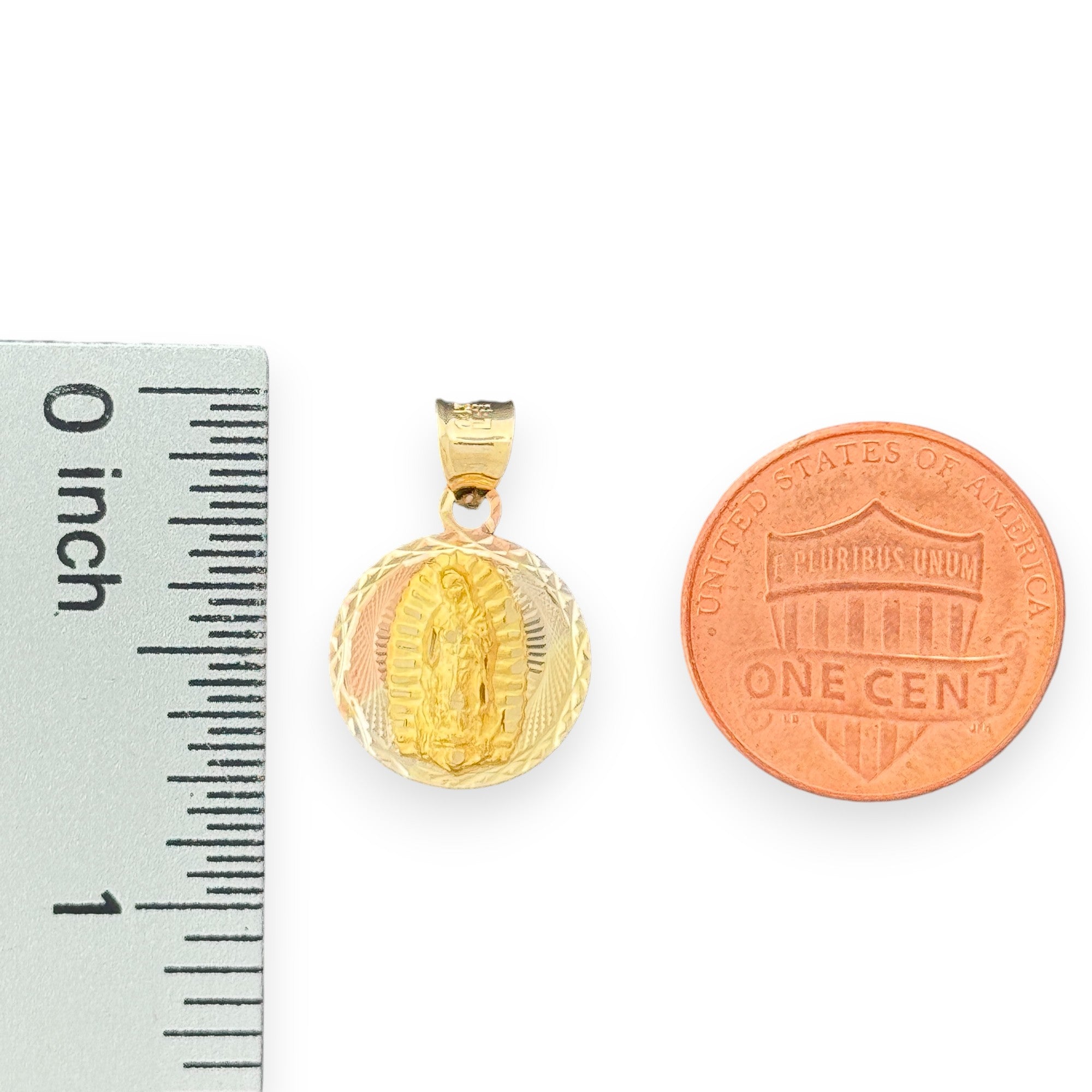 14KT Tri-Color Gold Small Round Virgin Mary Pendant, 0.62 Grm Login to see pricing