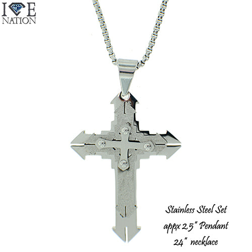 Stainless Steel Cross Pendant Set STSET3190 Login to see pricing