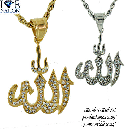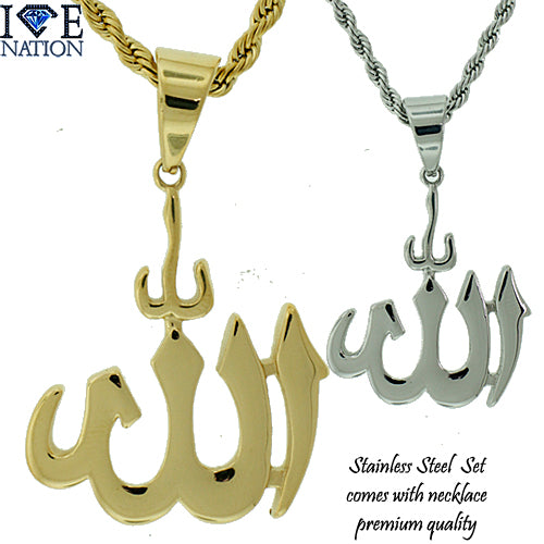 Stainless Steel Gold and Silver Allah Pendant Set STSET294 Login to see pricing