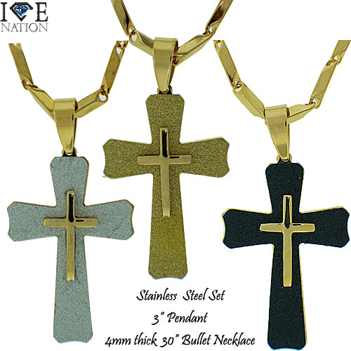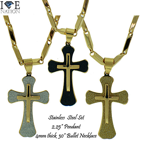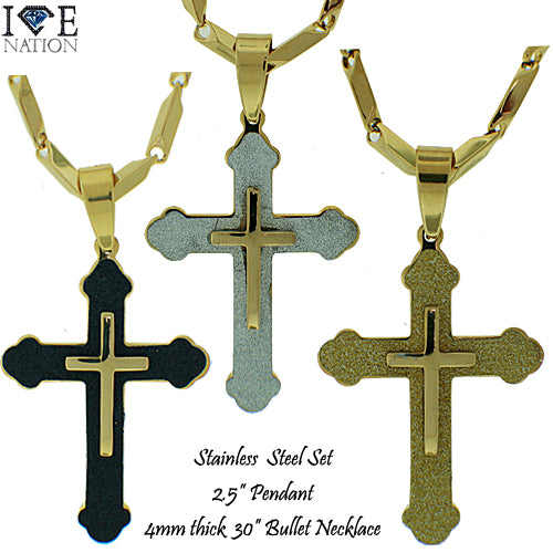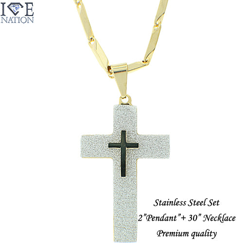 Stainless Steel Gold & Silver Cross Pendant Set STSET2014 Login to see pricing