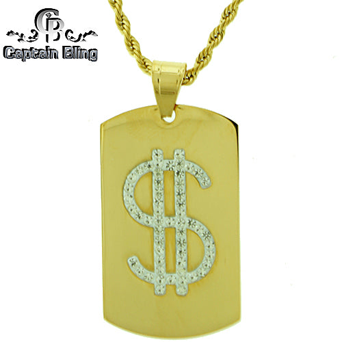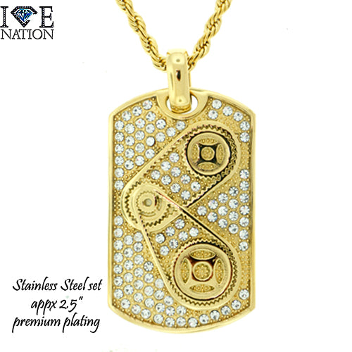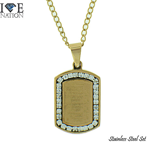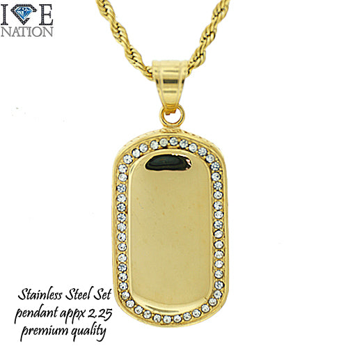Stainless Steel Gold Tone Dog Tag Pendant Set STSET898 Login to see pricing