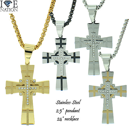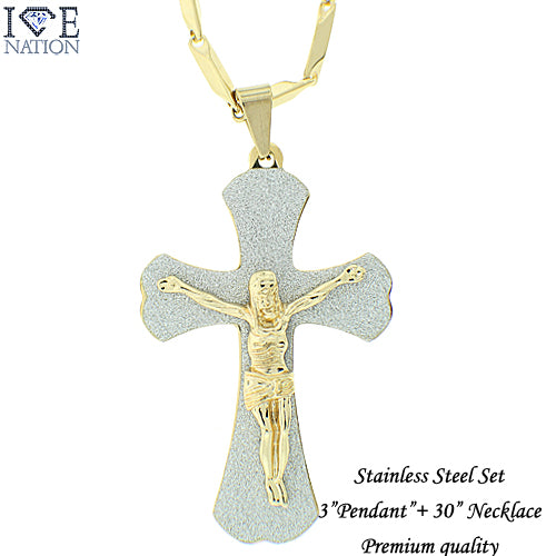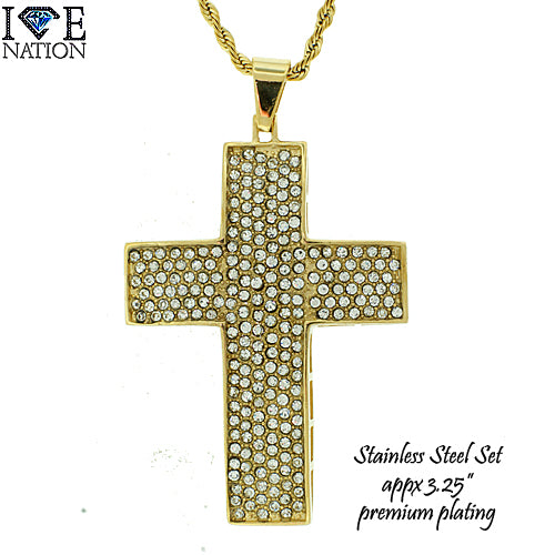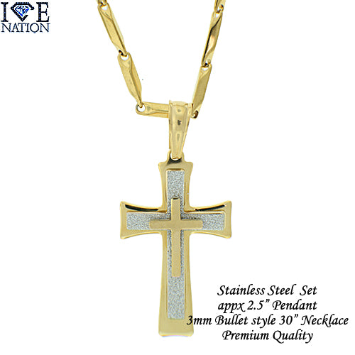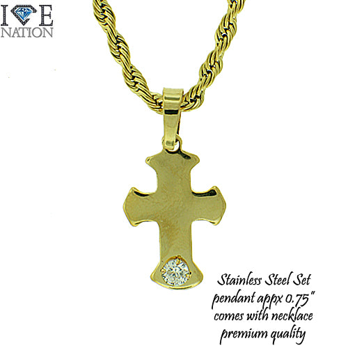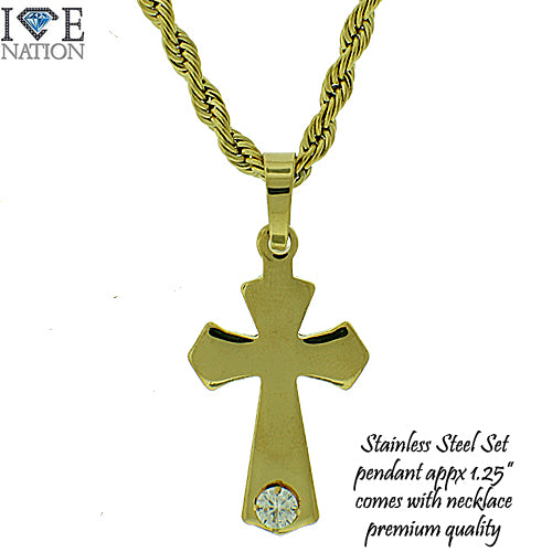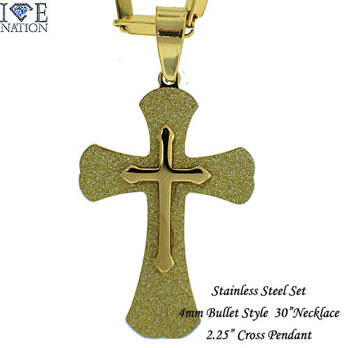 Stainless Steel Gold Tone Cross Pendant Set STSET1286 Login to see pricing