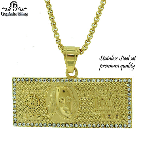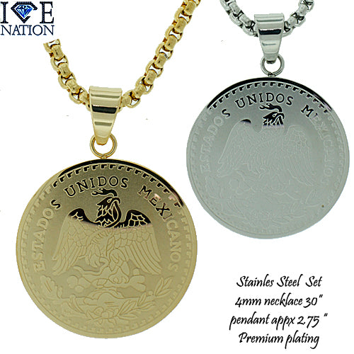 Stainless Steel Gold Tone Cash Pendant Set STSET1268 Login to see pricing
