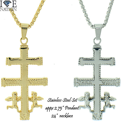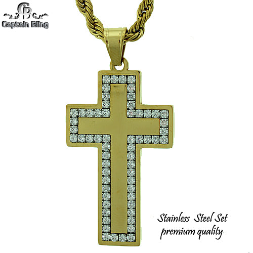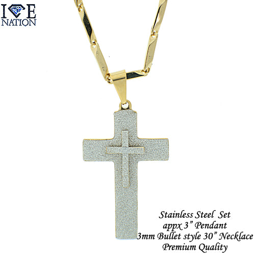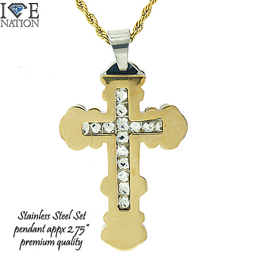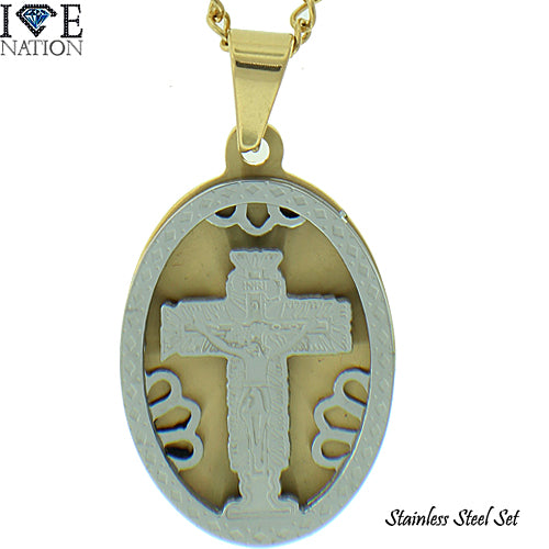 Stainless Steel Gold Tone Cross Pendant Set STSET1034 Login to see pricing