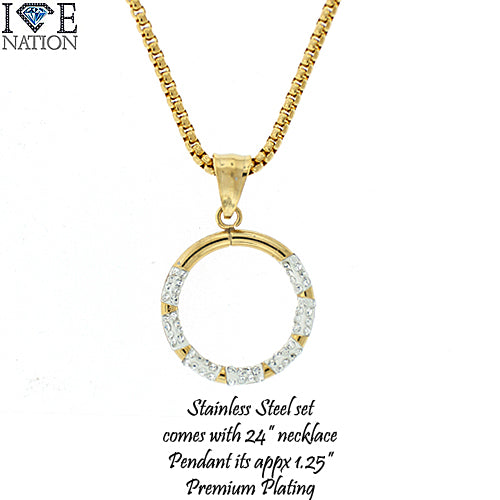 Stainless Steel Gold Tone Circle Pendant Set STSET207 Login to see pricing