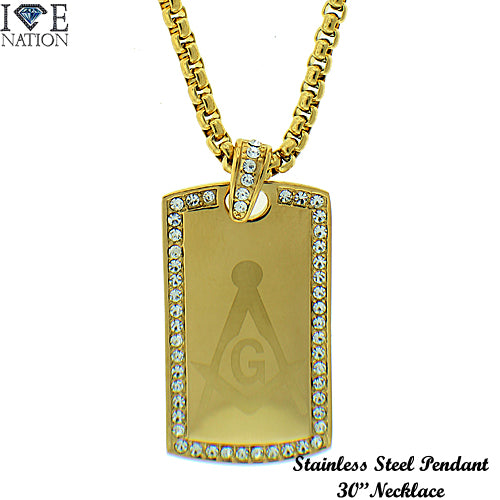 Stainless Steel Gold Tone Dog Tag Set STSET117-MASONIC Login to see pricing