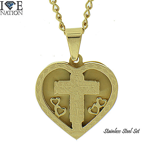 Stainless Steel Gold Tone Cross Heart Set STSET96 Login to see pricing