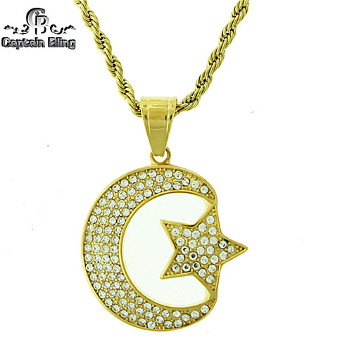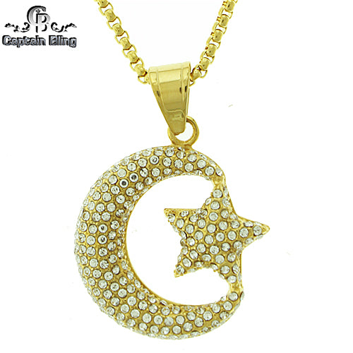 Stainless Steel Gold Tone Crescent Moon & Star Set STSET1120 Login to see pricing