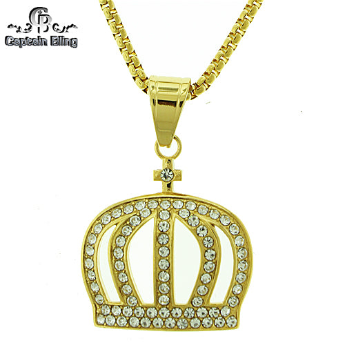 Stainless Steel Gold Tone Crown Pendant Set STSET1132 Login to see pricing
