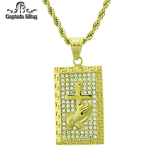 Stainless Steel Gold Tone Cross with Praying Hands Set STSET1171 Login to see pricing