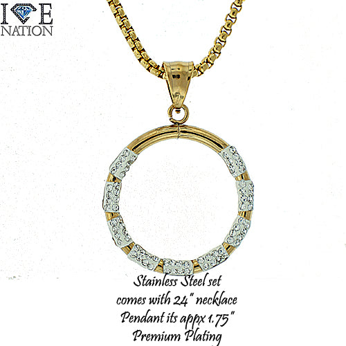 Stainless Steel Gold Tone Circle Pendant Set STSET208 Login to see pricing