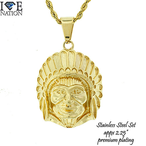 Stainless Steel Gold Tone Chief Pendant Set STSET504 Login to see pricing