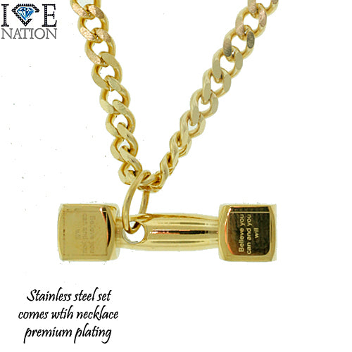 Stainless Steel Gold Tone Dumbbell Pendant Set STSET513 Login to see pricing