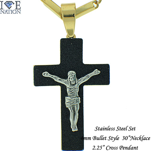Stainless Steel Gold Tone Cross Pendant Set STSET59 Login to see pricing