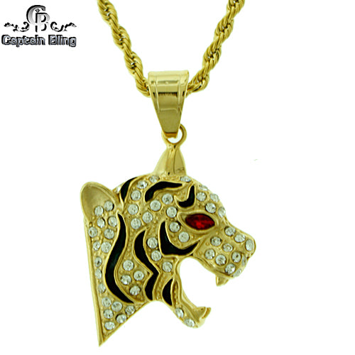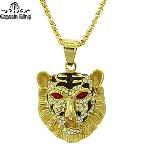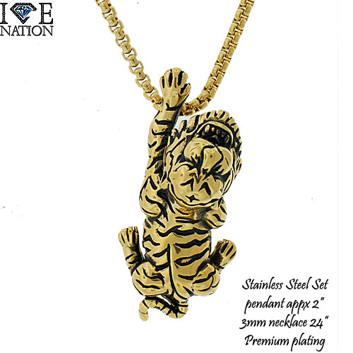 Stainless Steel Gold Tone Tiger Pendant Set STSET1119 Login to see pricing