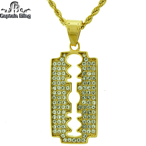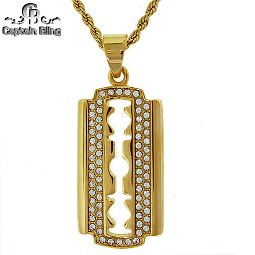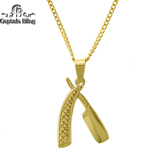 Stainless Steel Gold Tone Razor Pendant Set STSET975 Login to see pricing