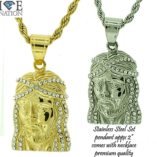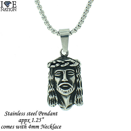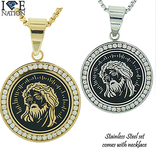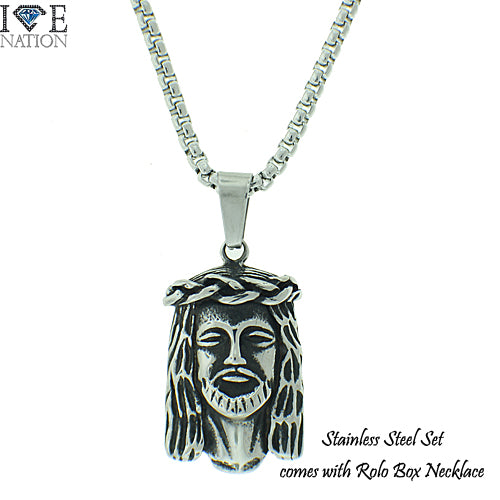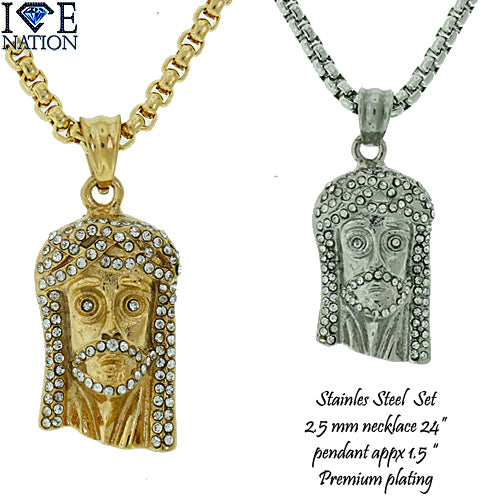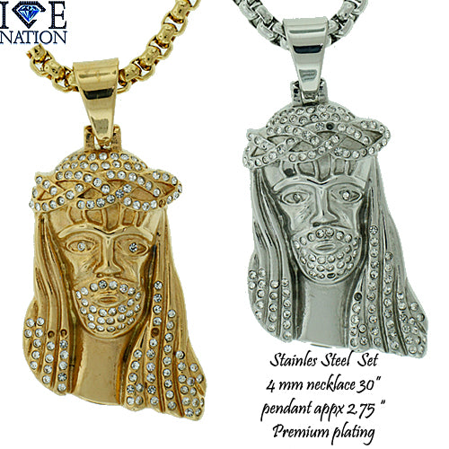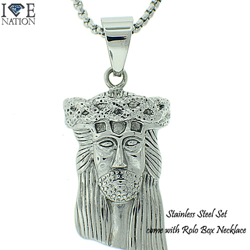 Stainless Steel Jesus Head Pendant Set STSET587 Login to see pricing