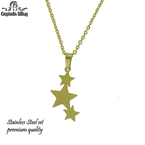 Stainless Steel Gold Tone Star Pendant Set STSET1063 Login to see pricing