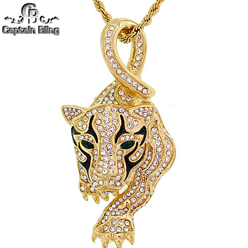 Stainless Steel Gold Tone Tiger Pendant Set STSET839 Login to see pricing