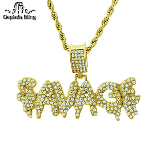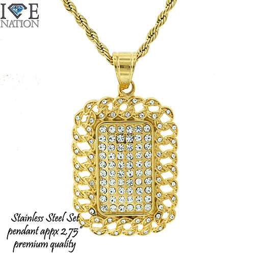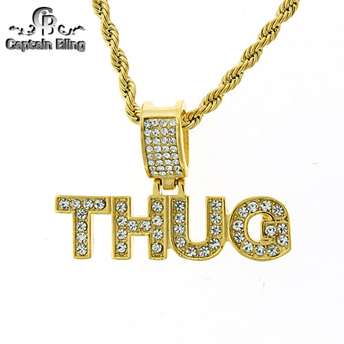 Stainless Steel Gold Tone THUG Pendant Set STSET937 Login to see pricing