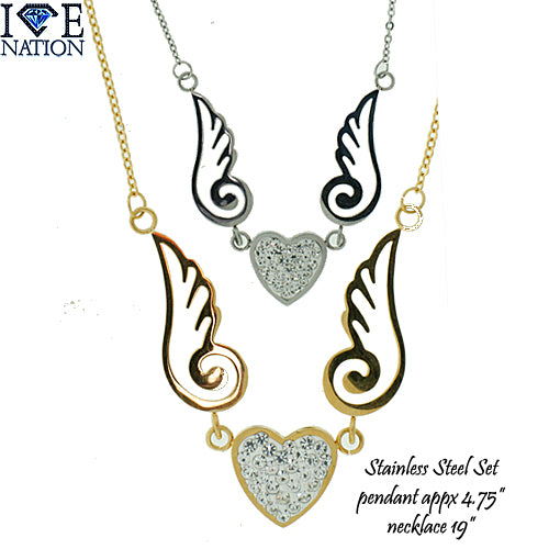 Stainless Steel Heart with Wing Design Set STSET321 Login to see pricing