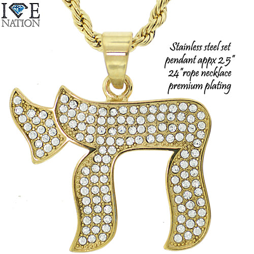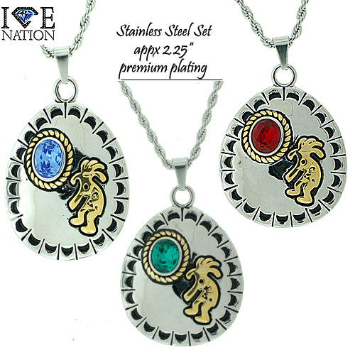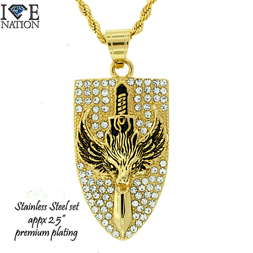 Stainless Steel Gold Tone Symbolic Pendant Set STSET556 Login to see pricing