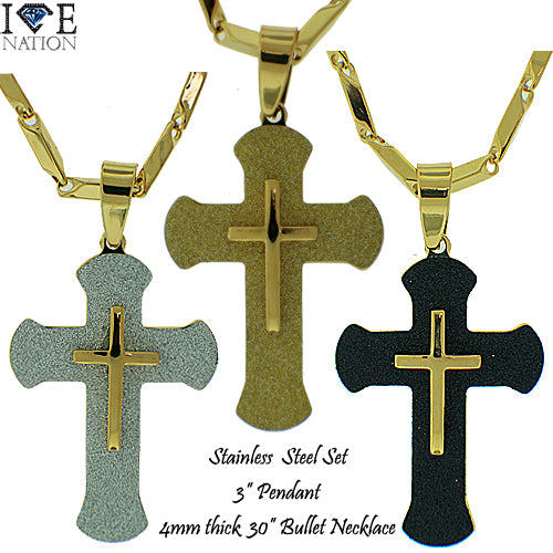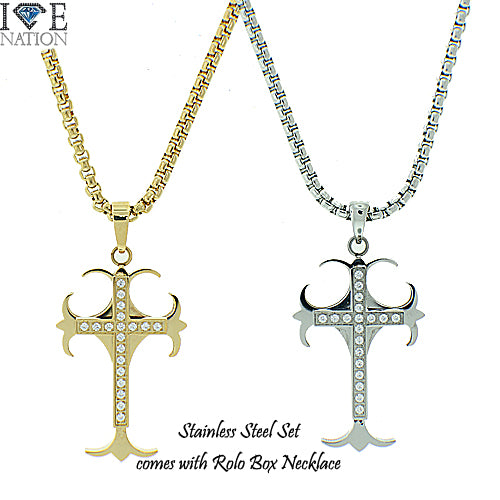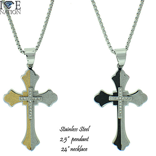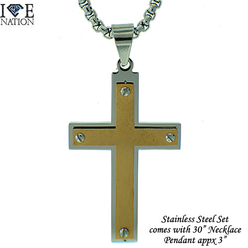 Stainless Steel Two-Tone Cross Pendant Set STSET184 Login to see pricing